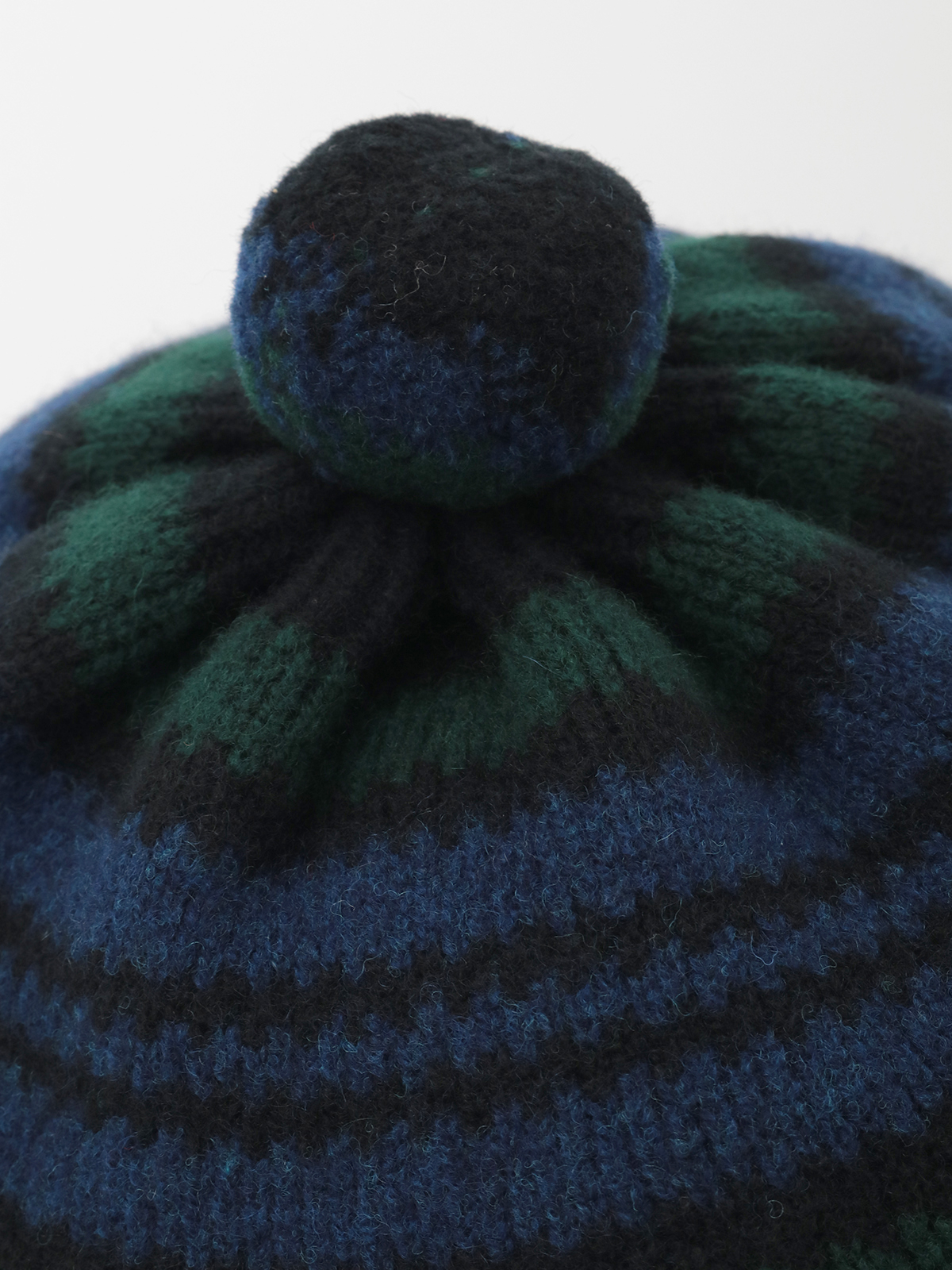 ウォーム感感じるタータンチェックのニットベレー。かぶるだけで季節感を感じさせるアイテムに。
