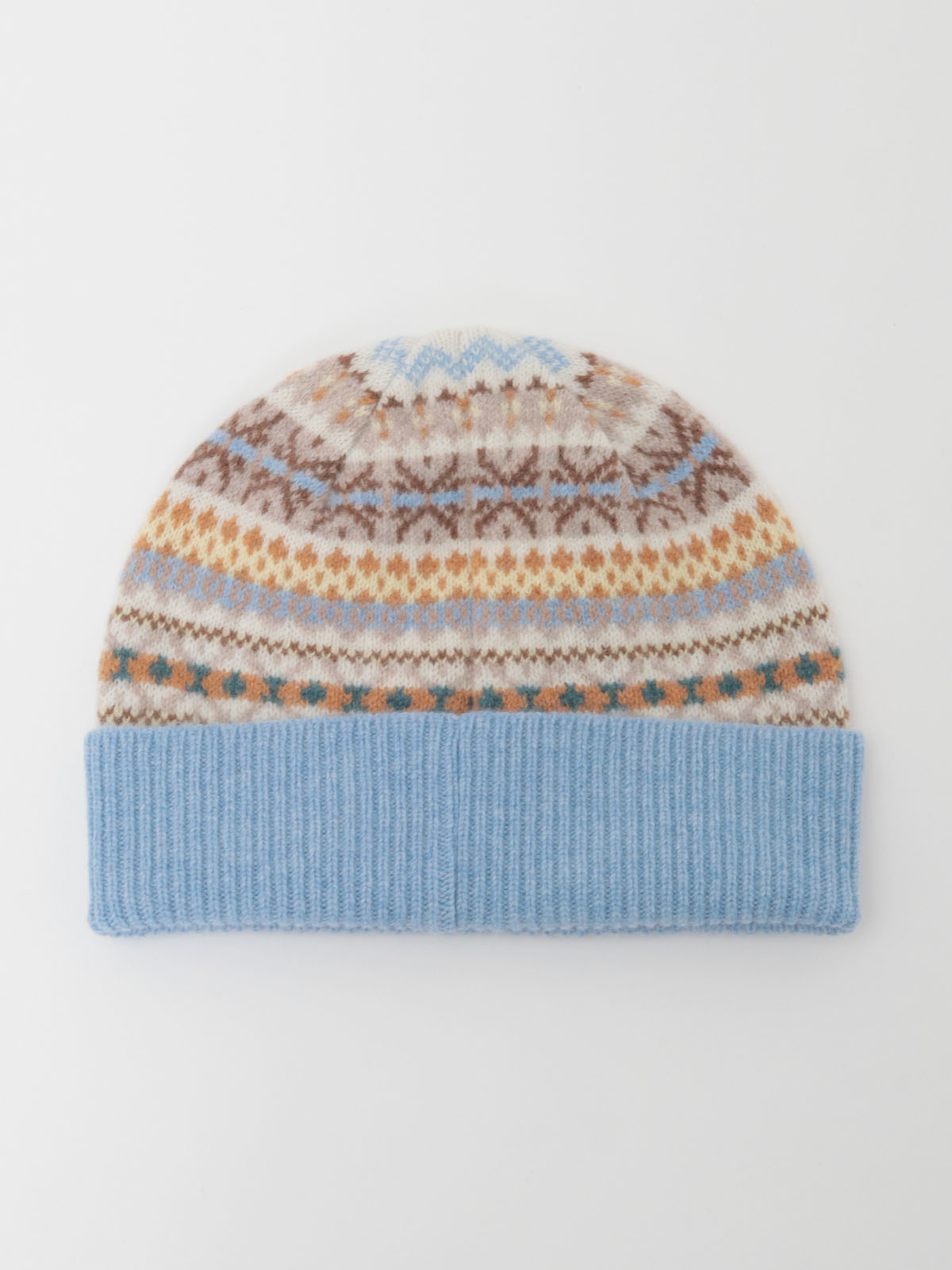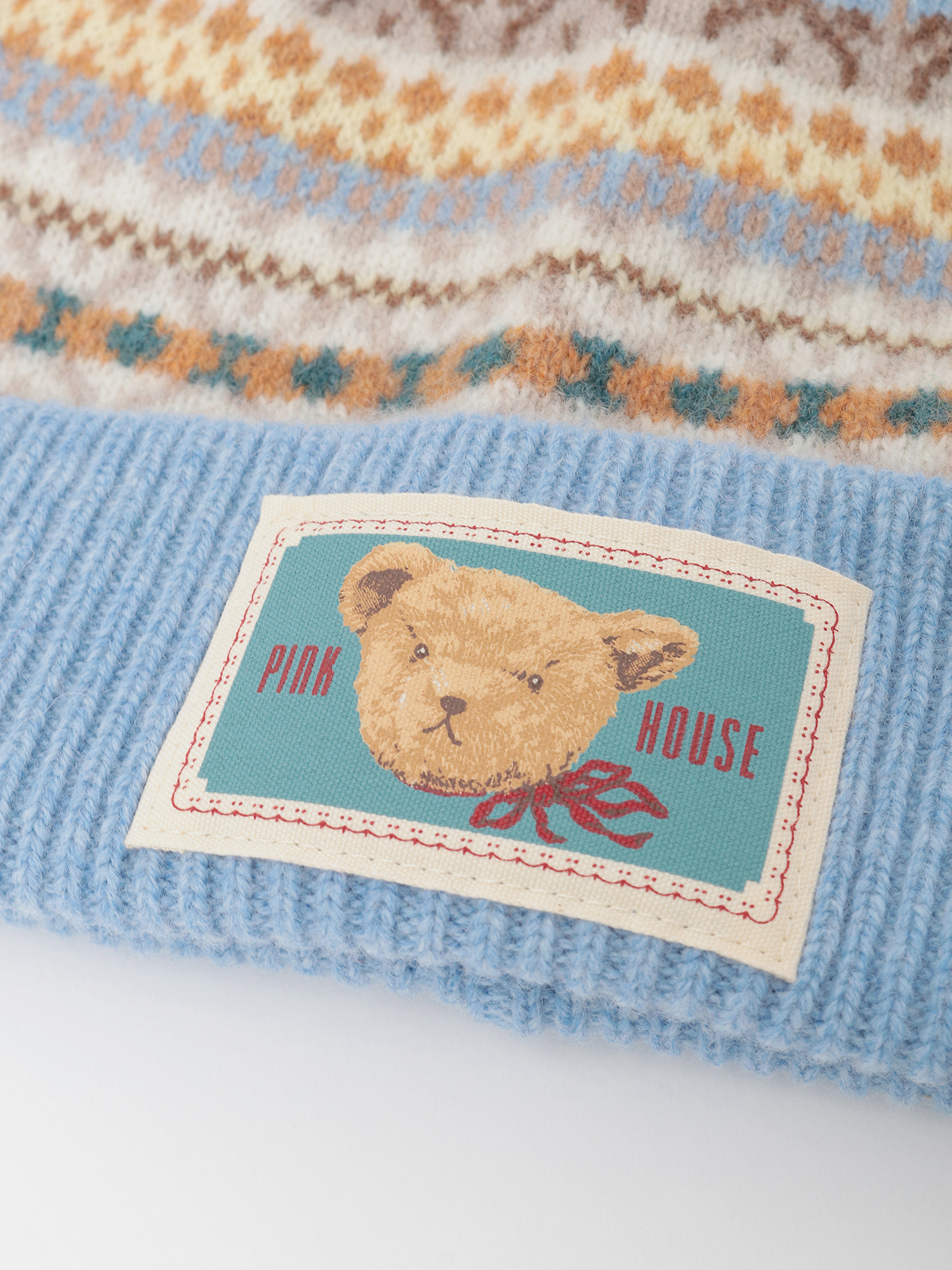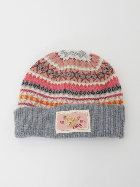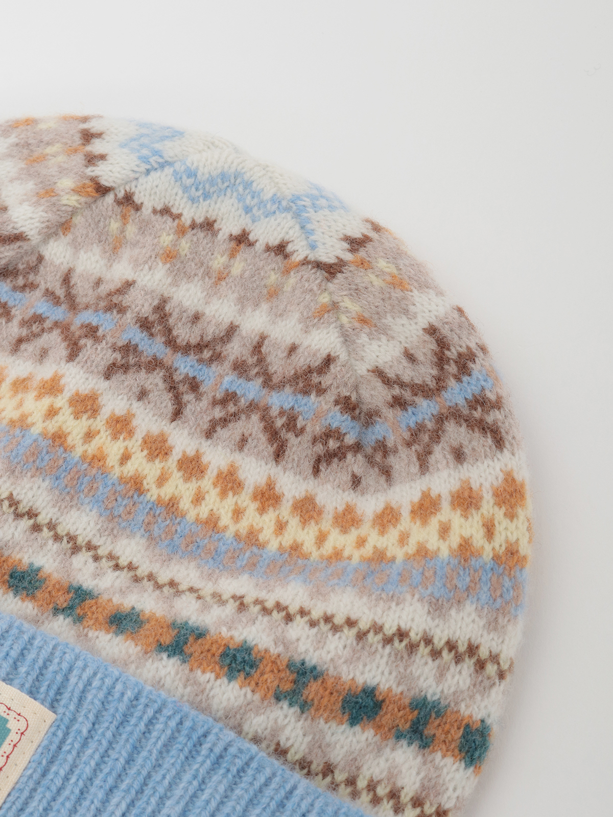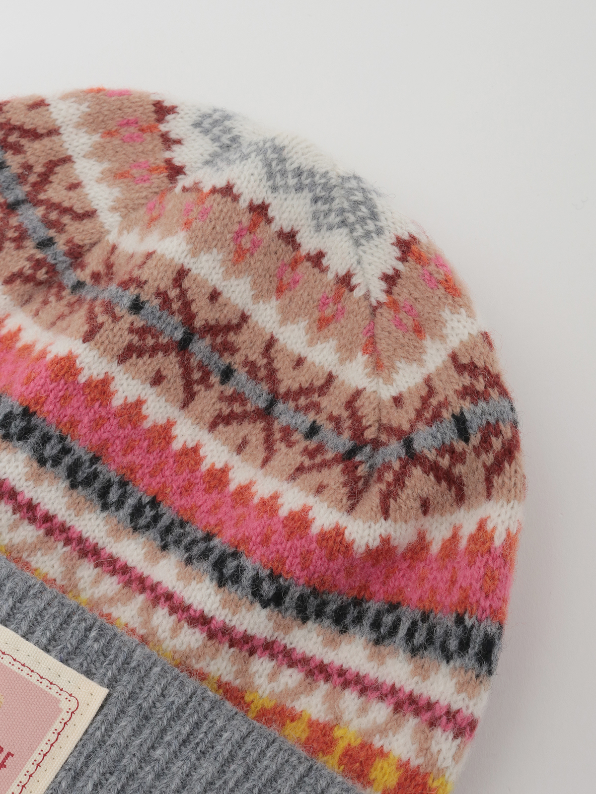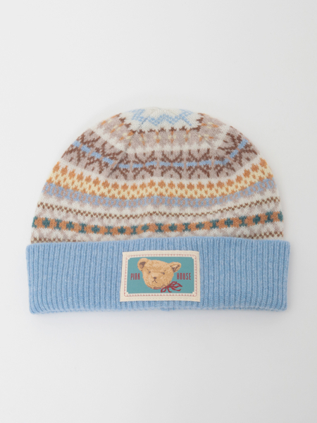ノルディック風の編み込み模様が可愛いニットキャップ。