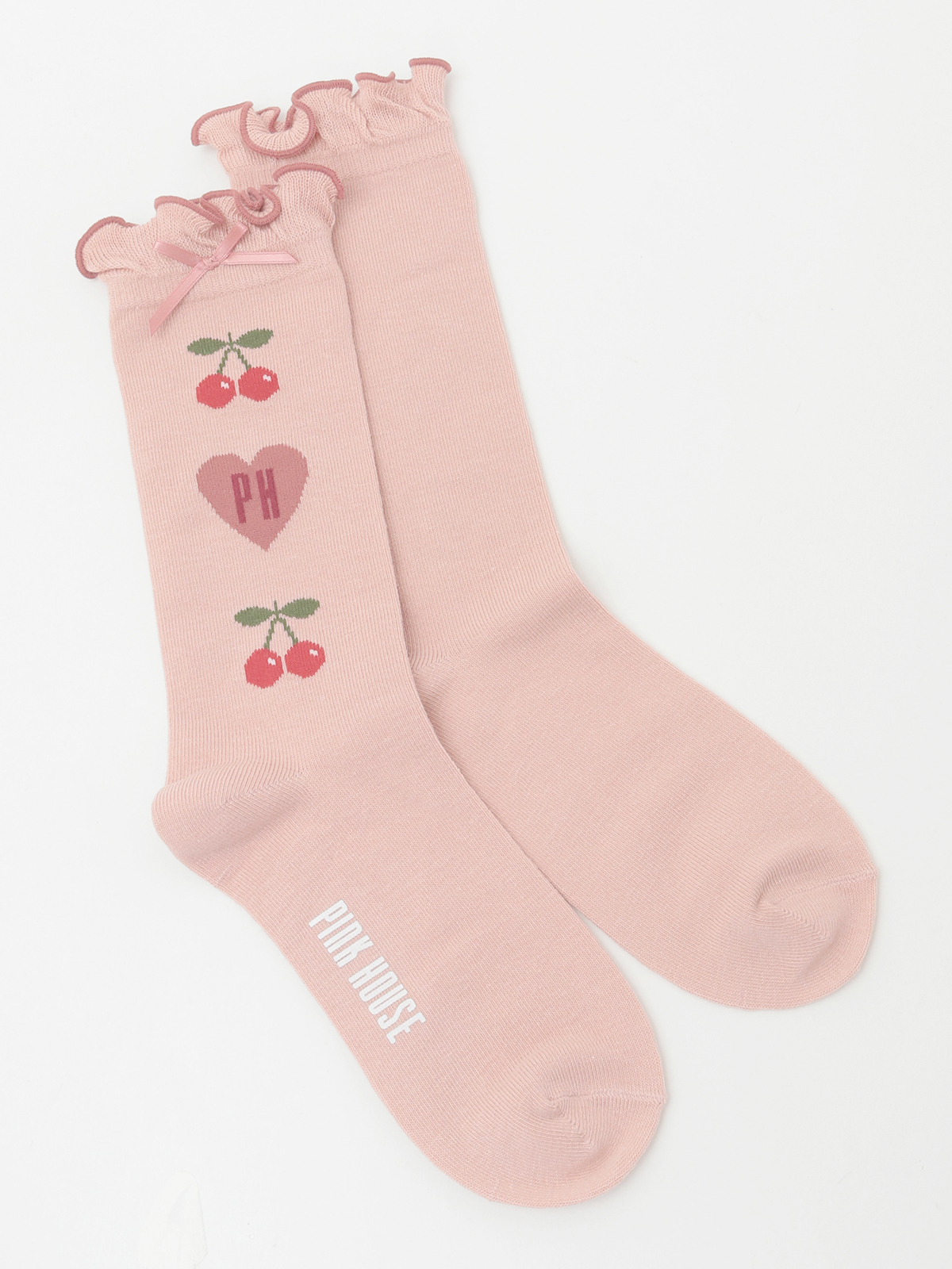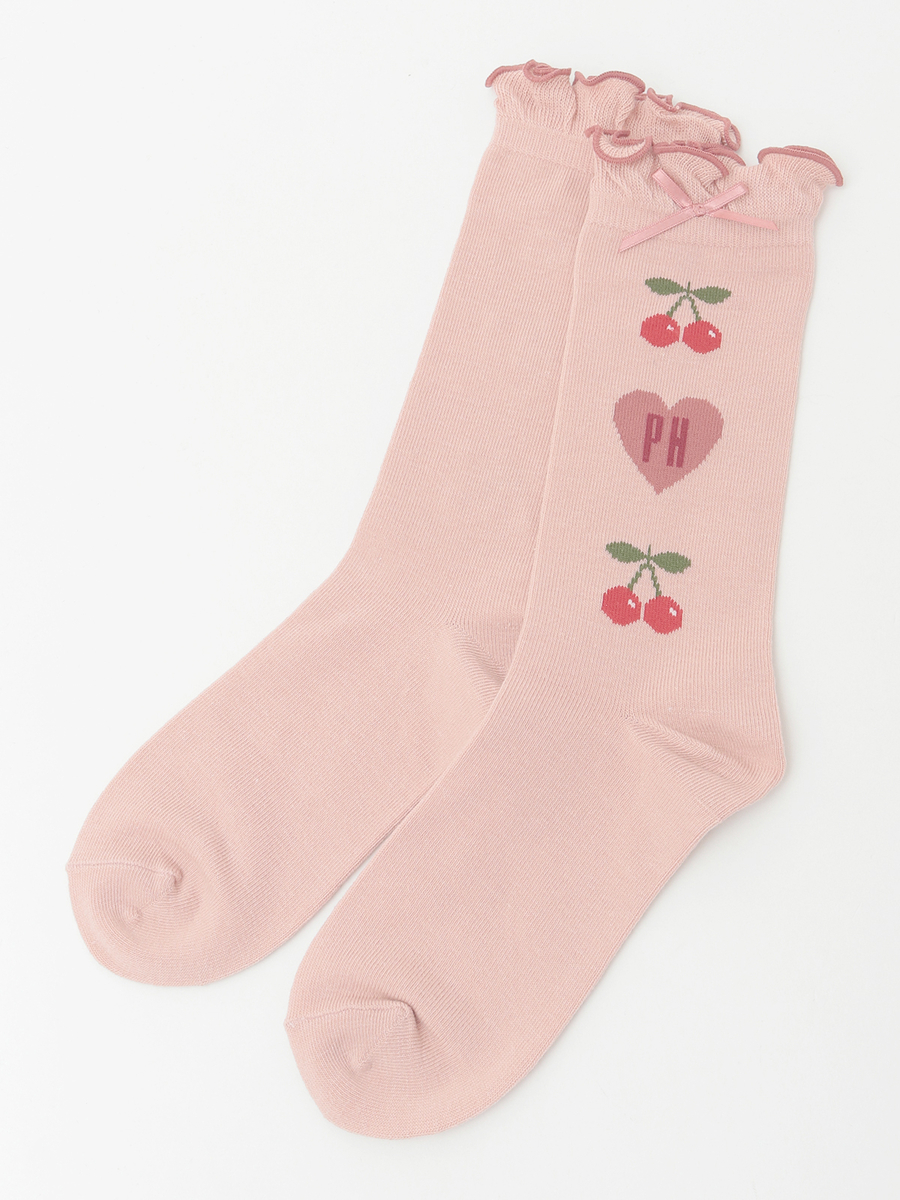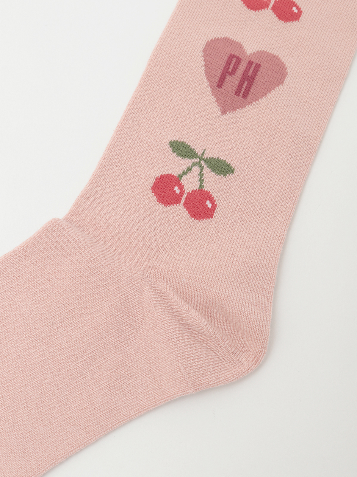 真っ赤に実ったつややかなチェリーをモチーフにしたキュートでラブリーなソックス。