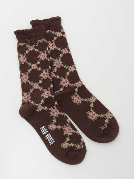 ”パフュームプリント”に描かれている薔薇の格子柄を用いたソックス。