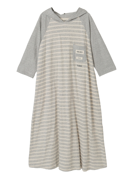 • フード付きボーダーワンピース