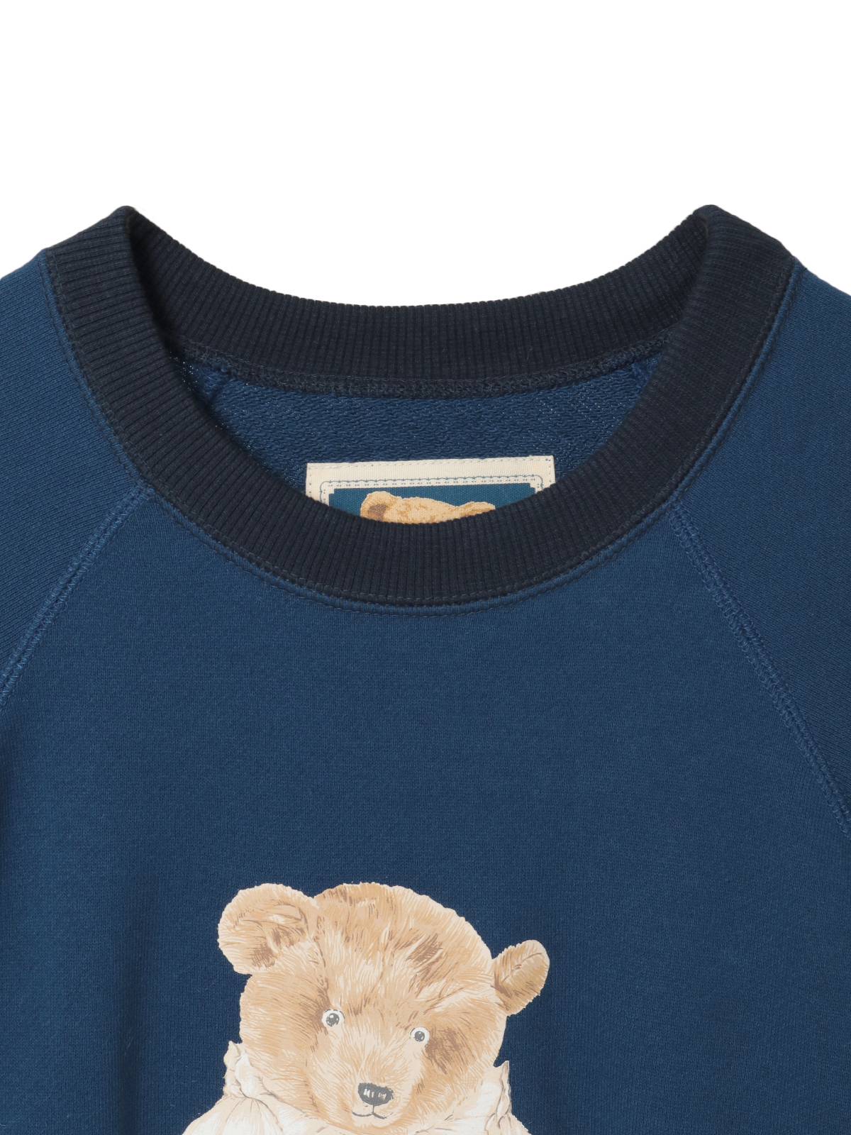編み物を楽しんでいる末っ子くまをピックアップして、フロントに大きくプリントしたチュニックトレーナー。