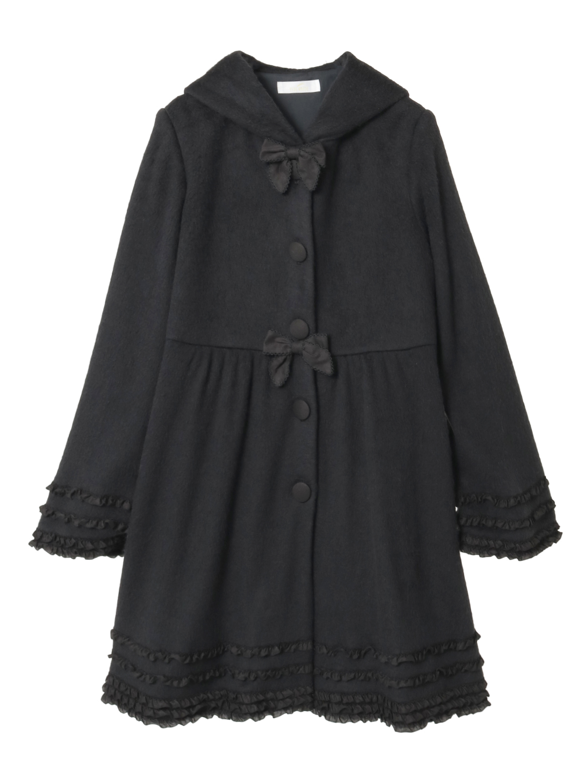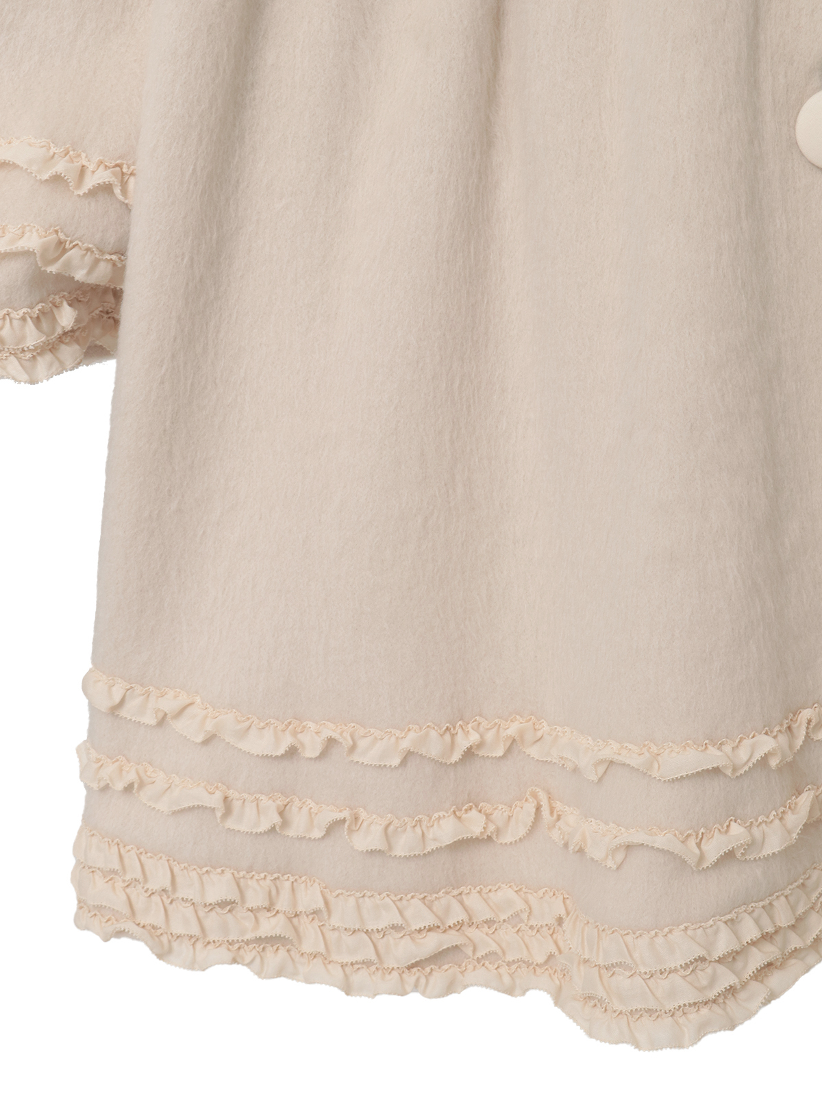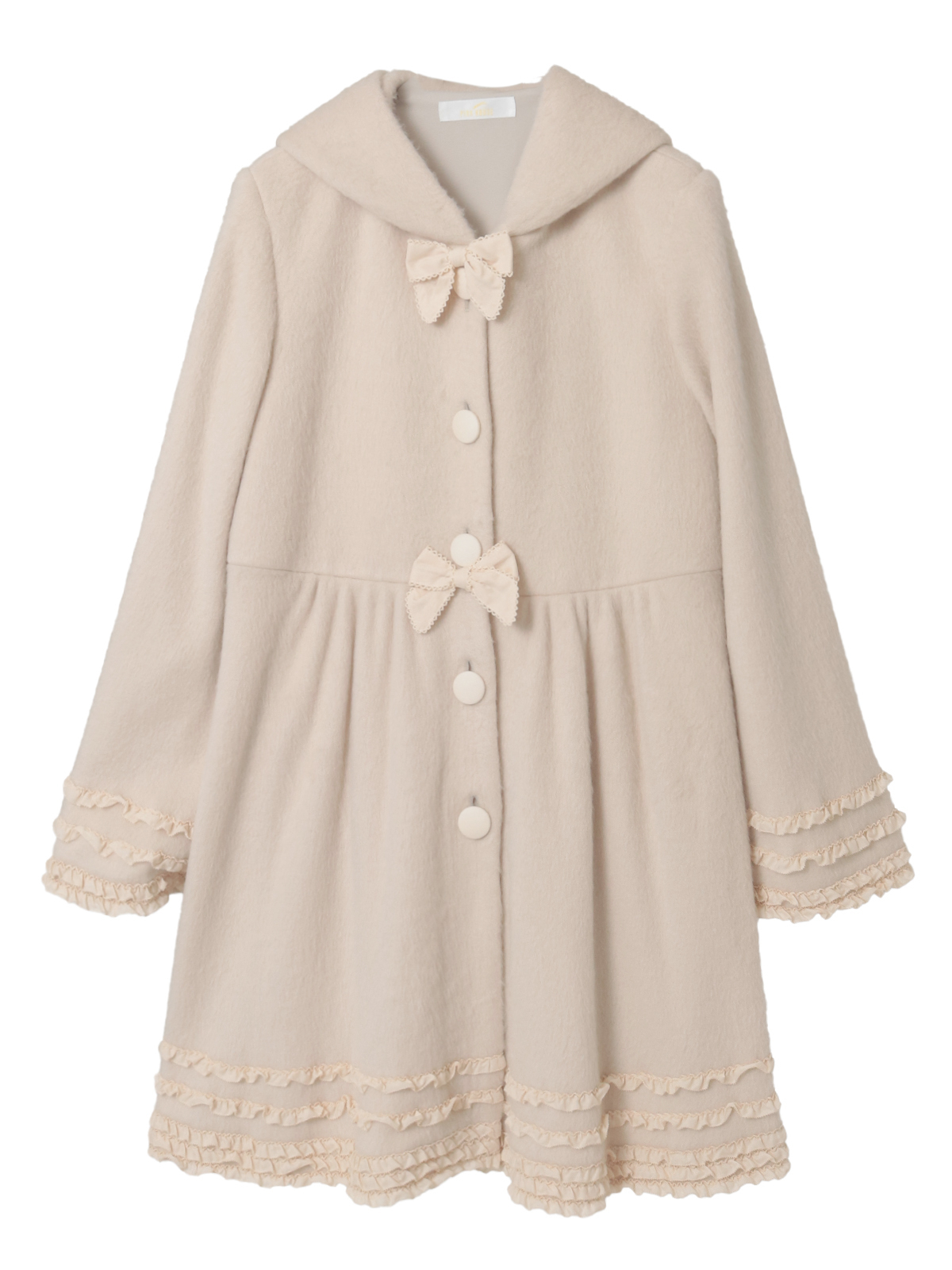 裾や袖ぐちのフリルとリボンモチーフいっぱいで可愛らしい仕上がりに。