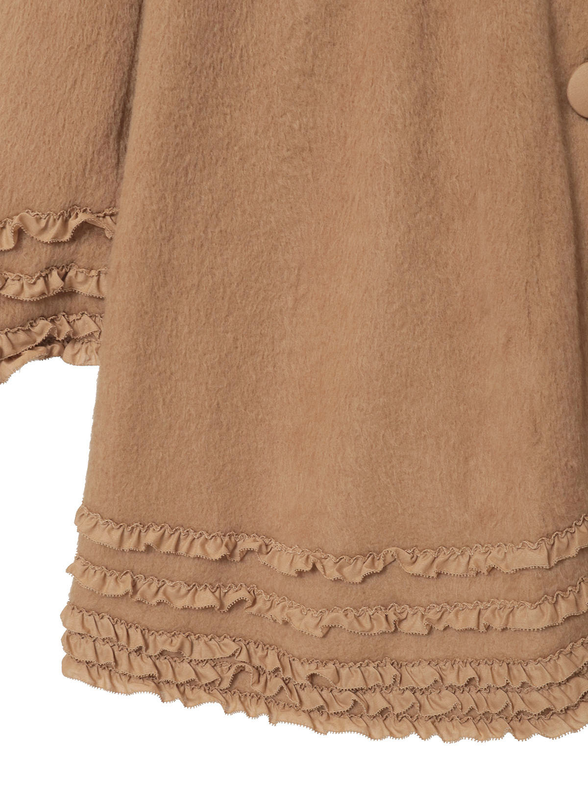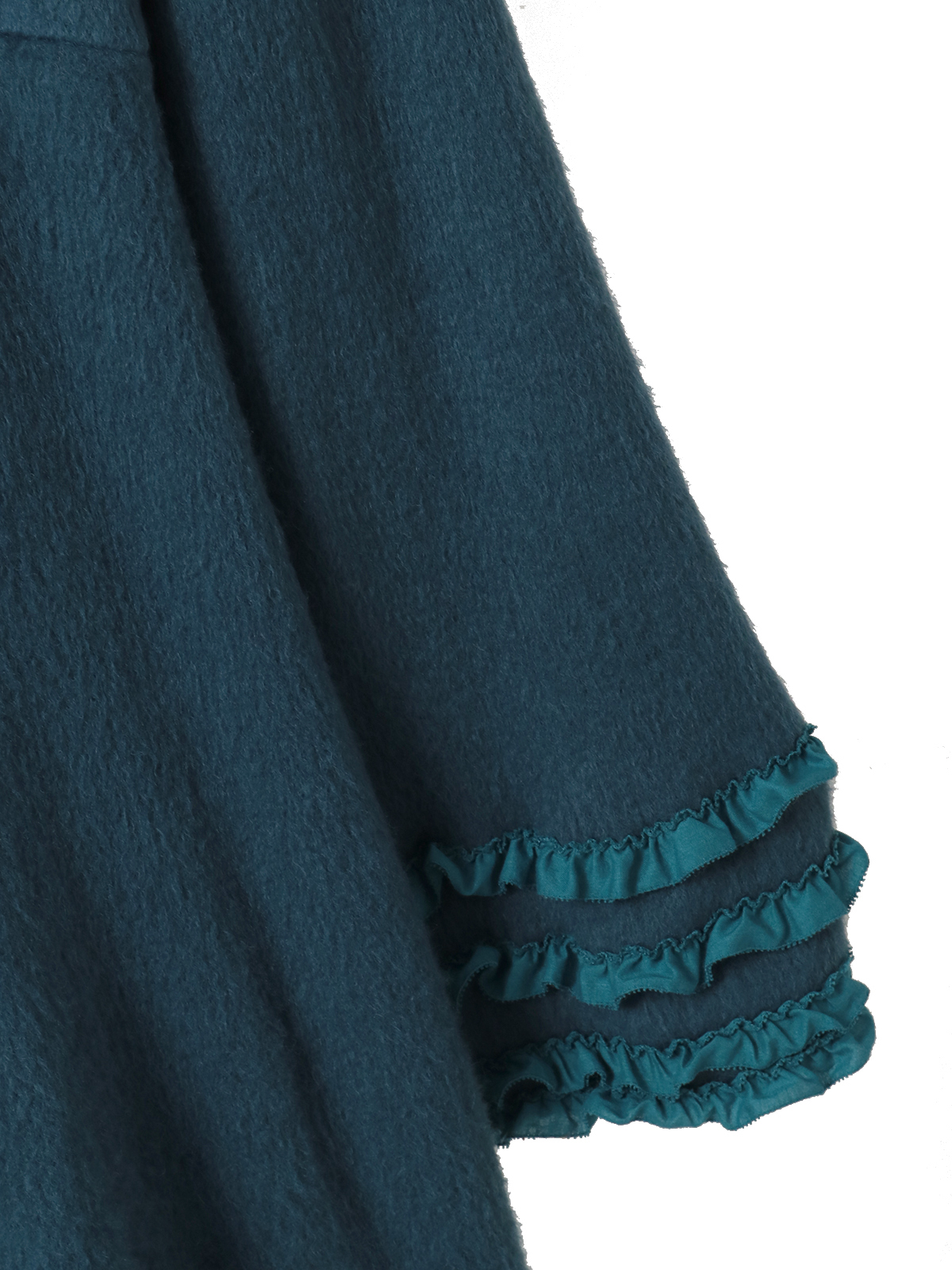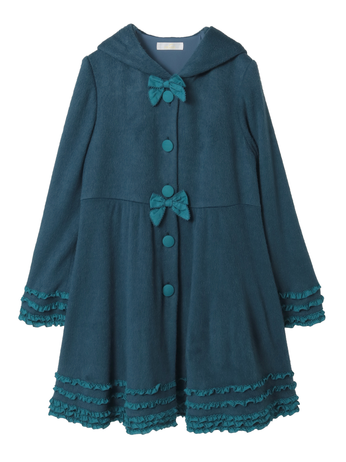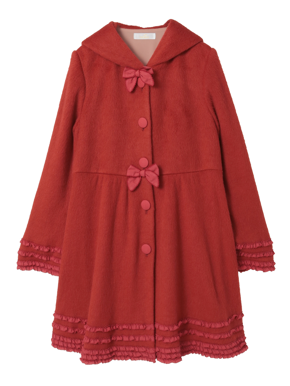 裾や袖ぐちのフリルとリボンモチーフいっぱいで可愛らしい仕上がりに。
