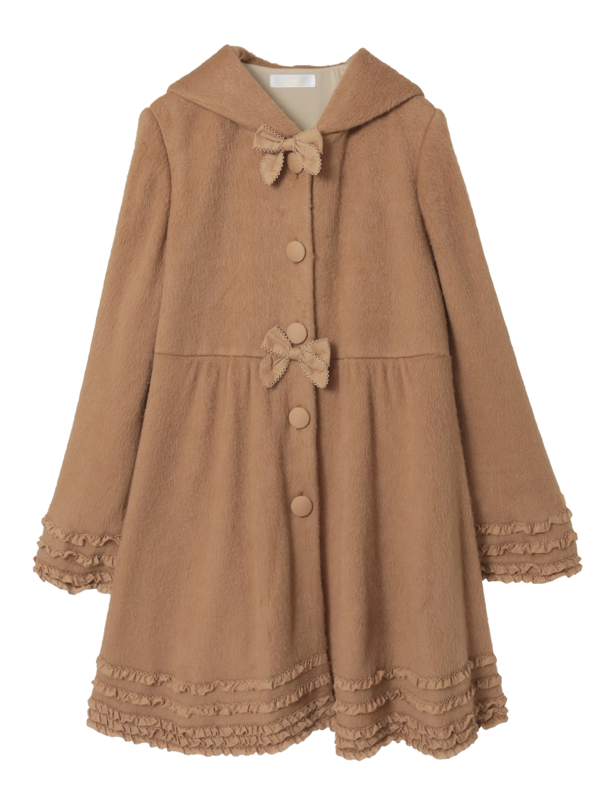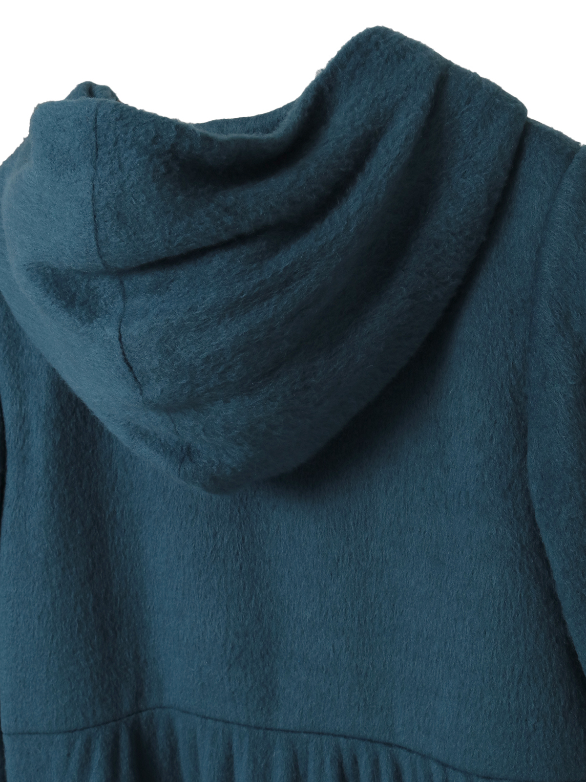 ウォーム感ととろみのあるスムースシャギーのフード付きロングカーディガン。