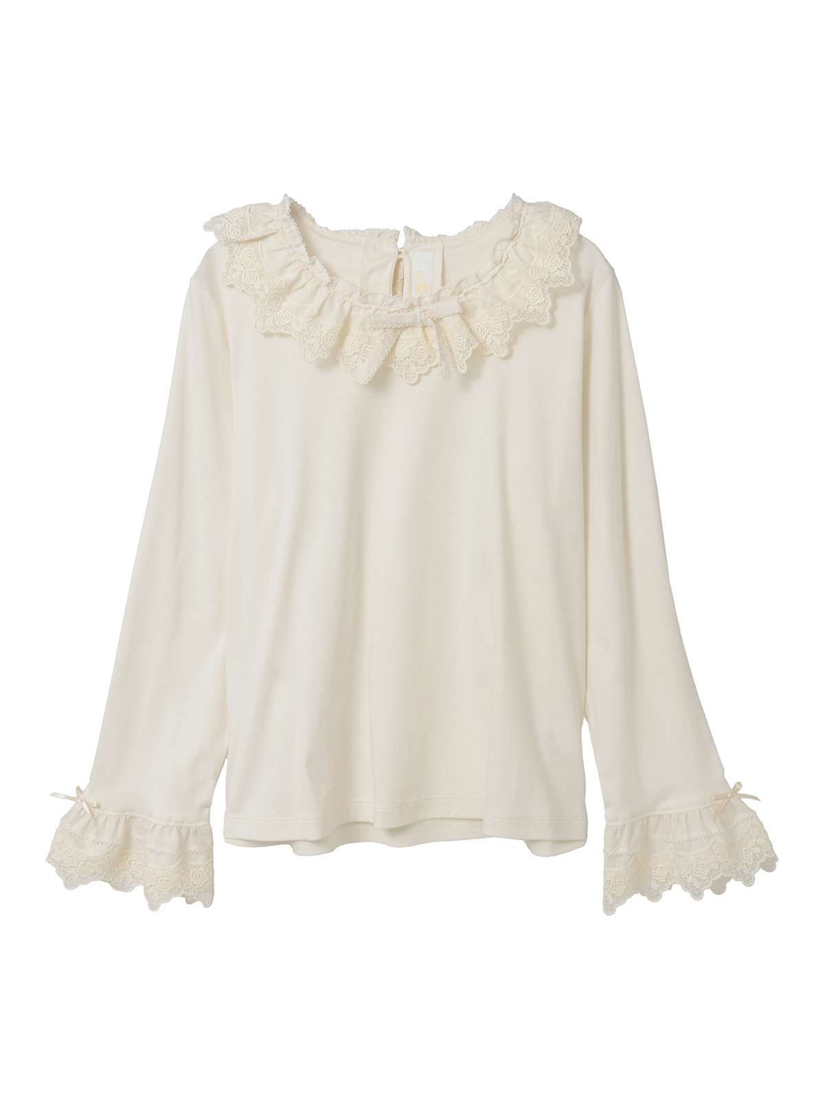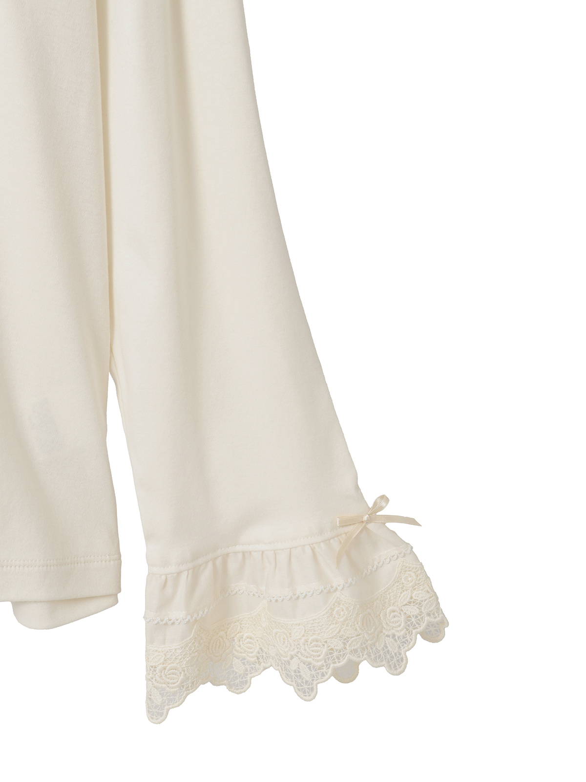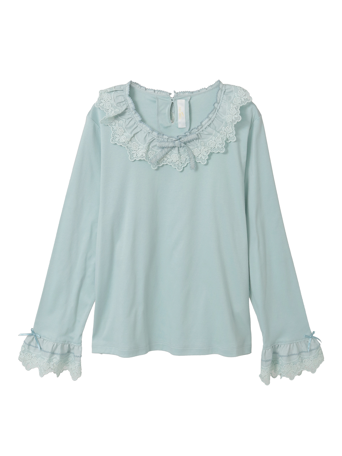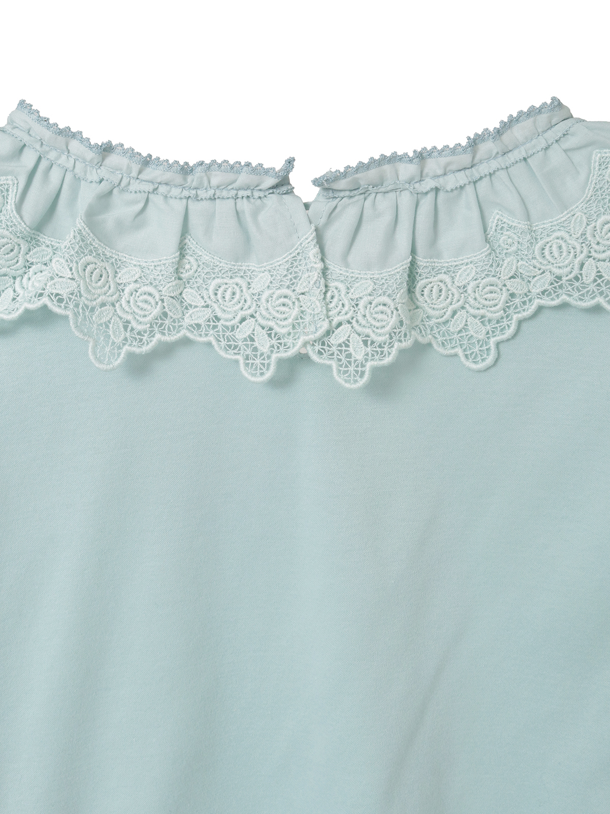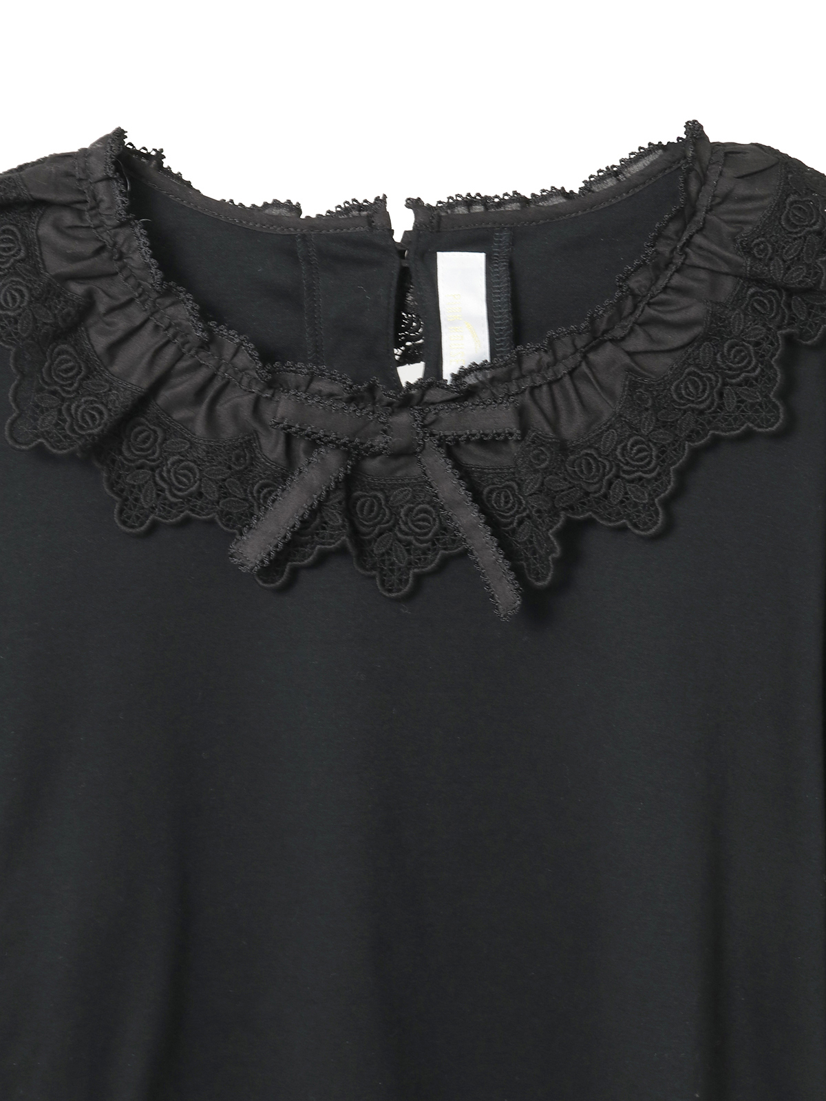ローズの刺繍を施したケミカルレースを部分使いにあしらったカットソー。