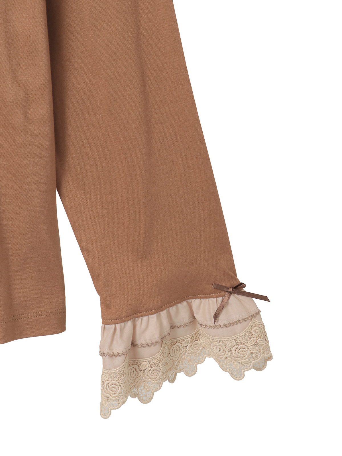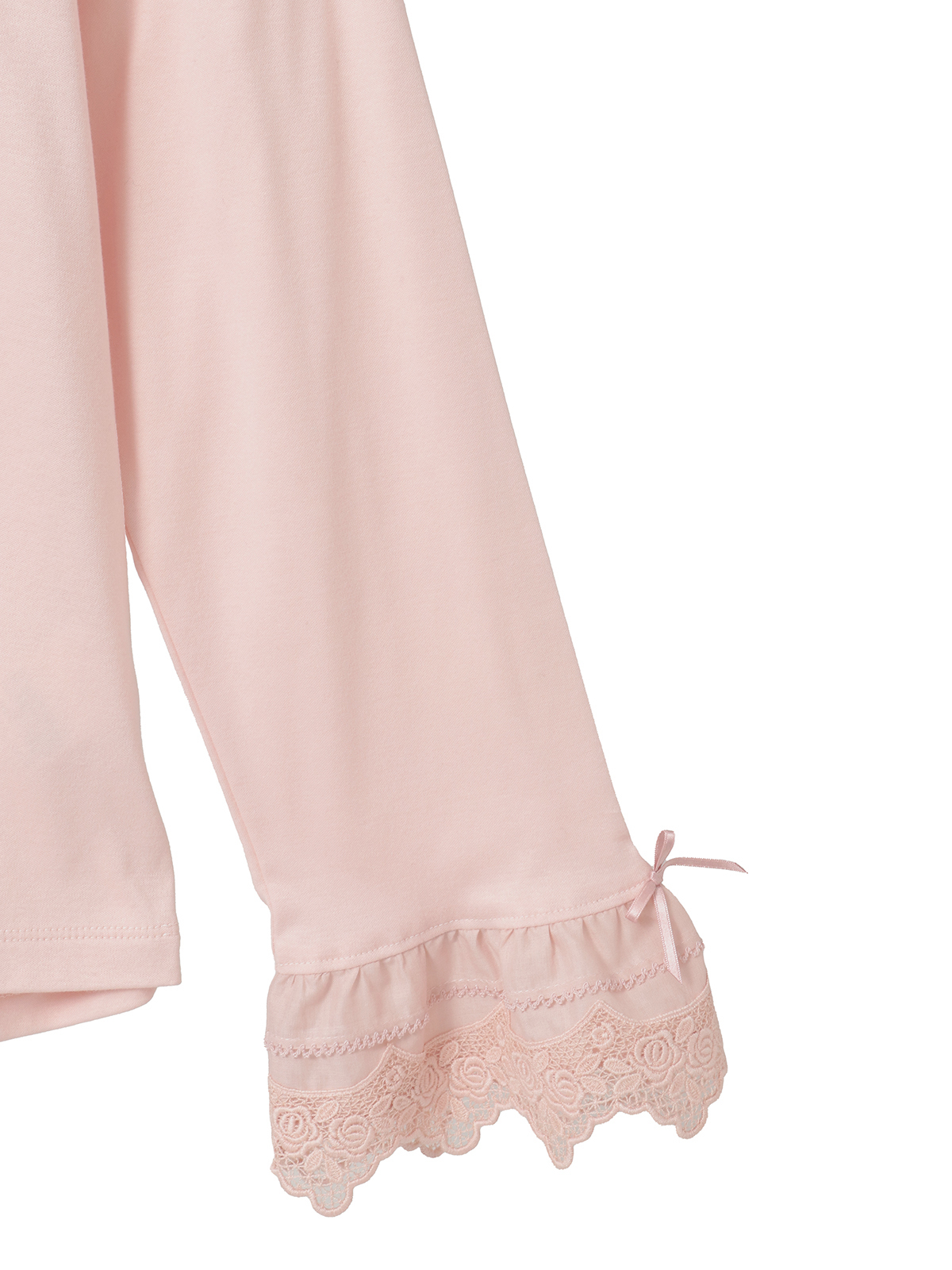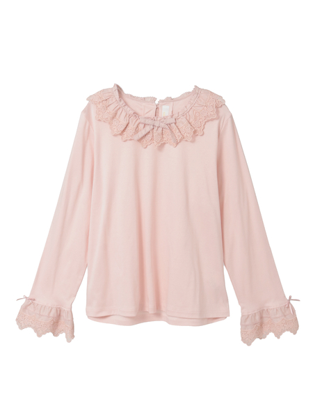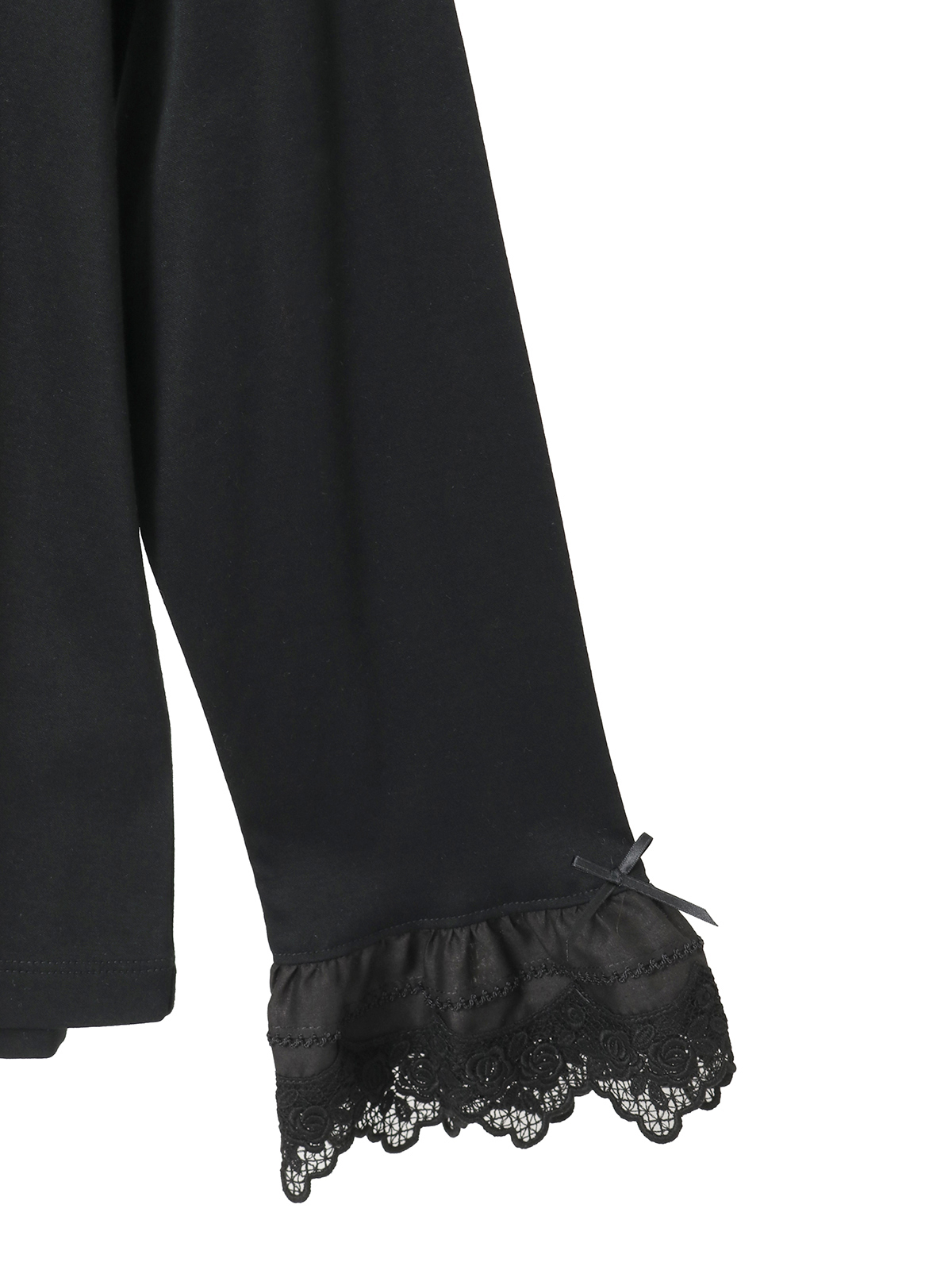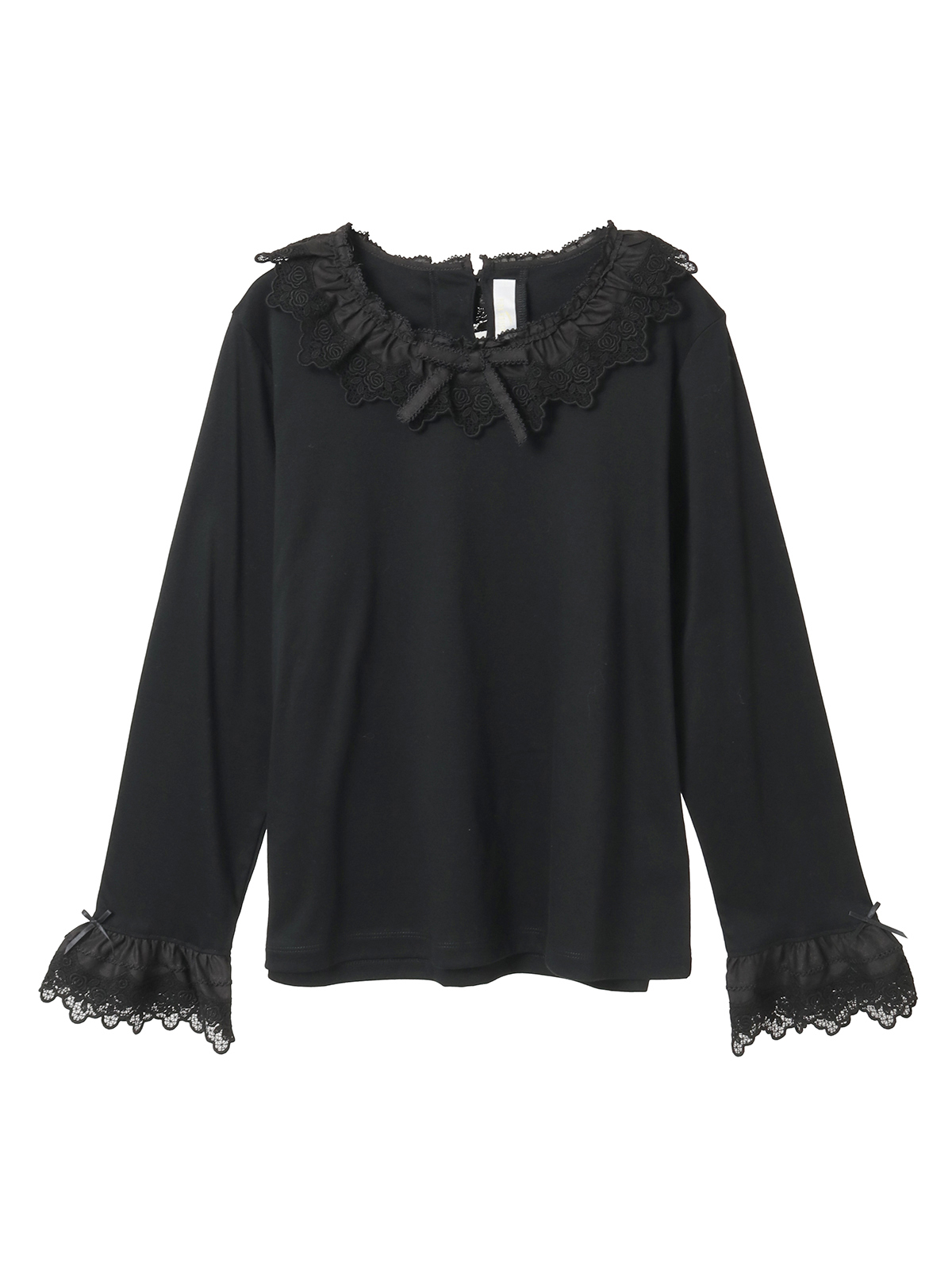 ローズの刺繍を施したケミカルレースを部分使いにあしらったカットソー。