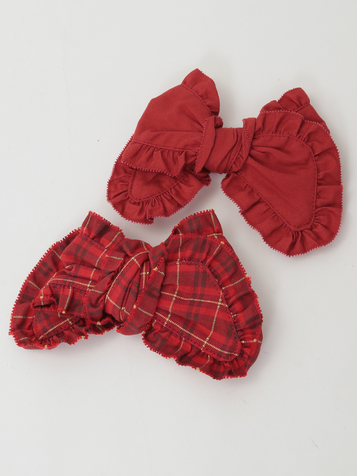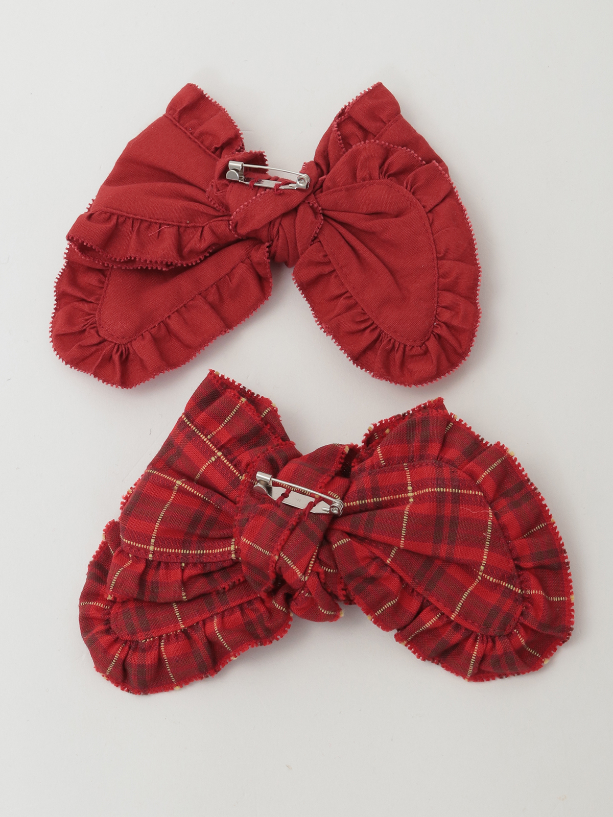 オリジナルのコードチェックと、無地のブロードで作られたリボンブローチがセットで付いています。