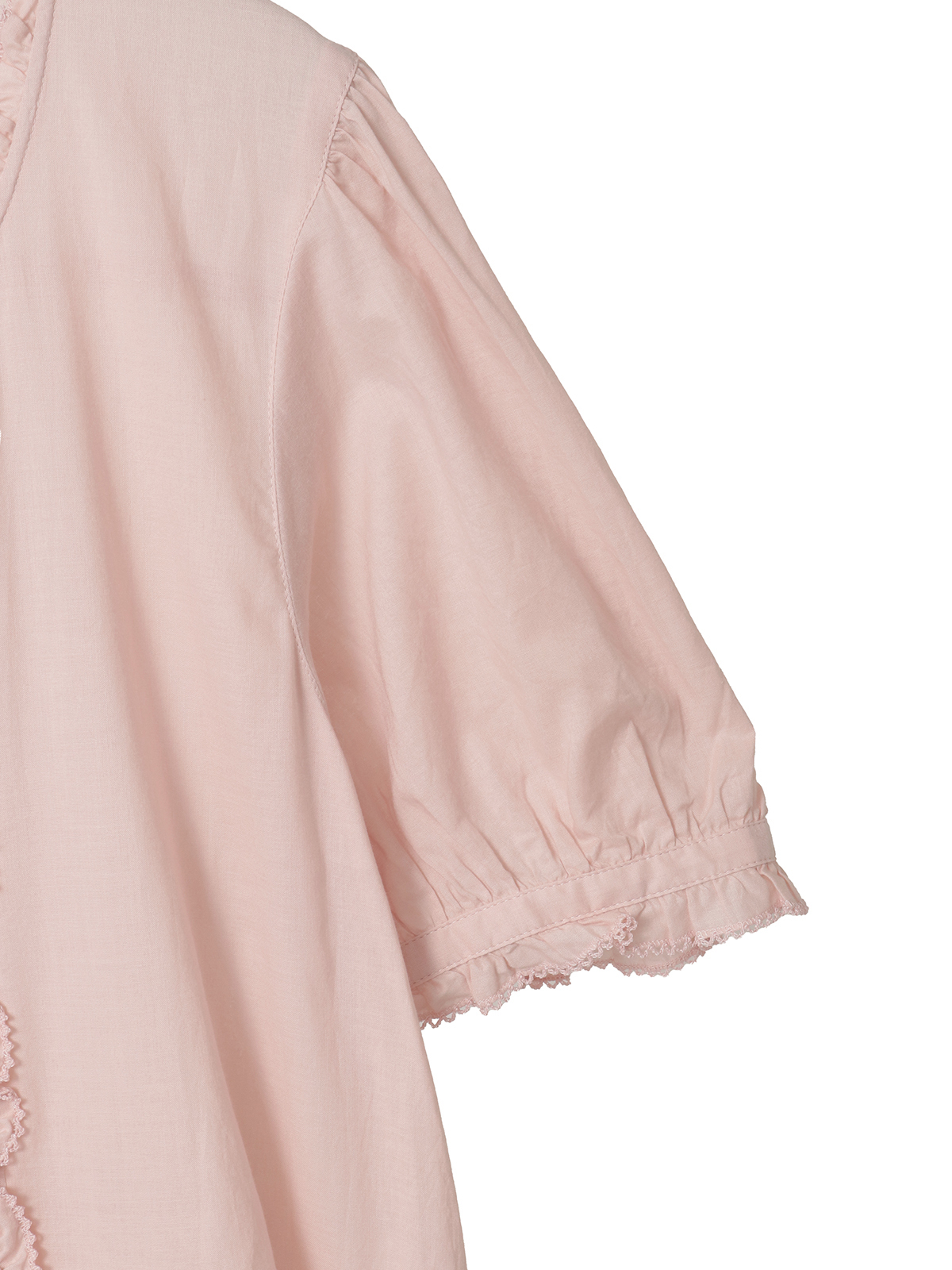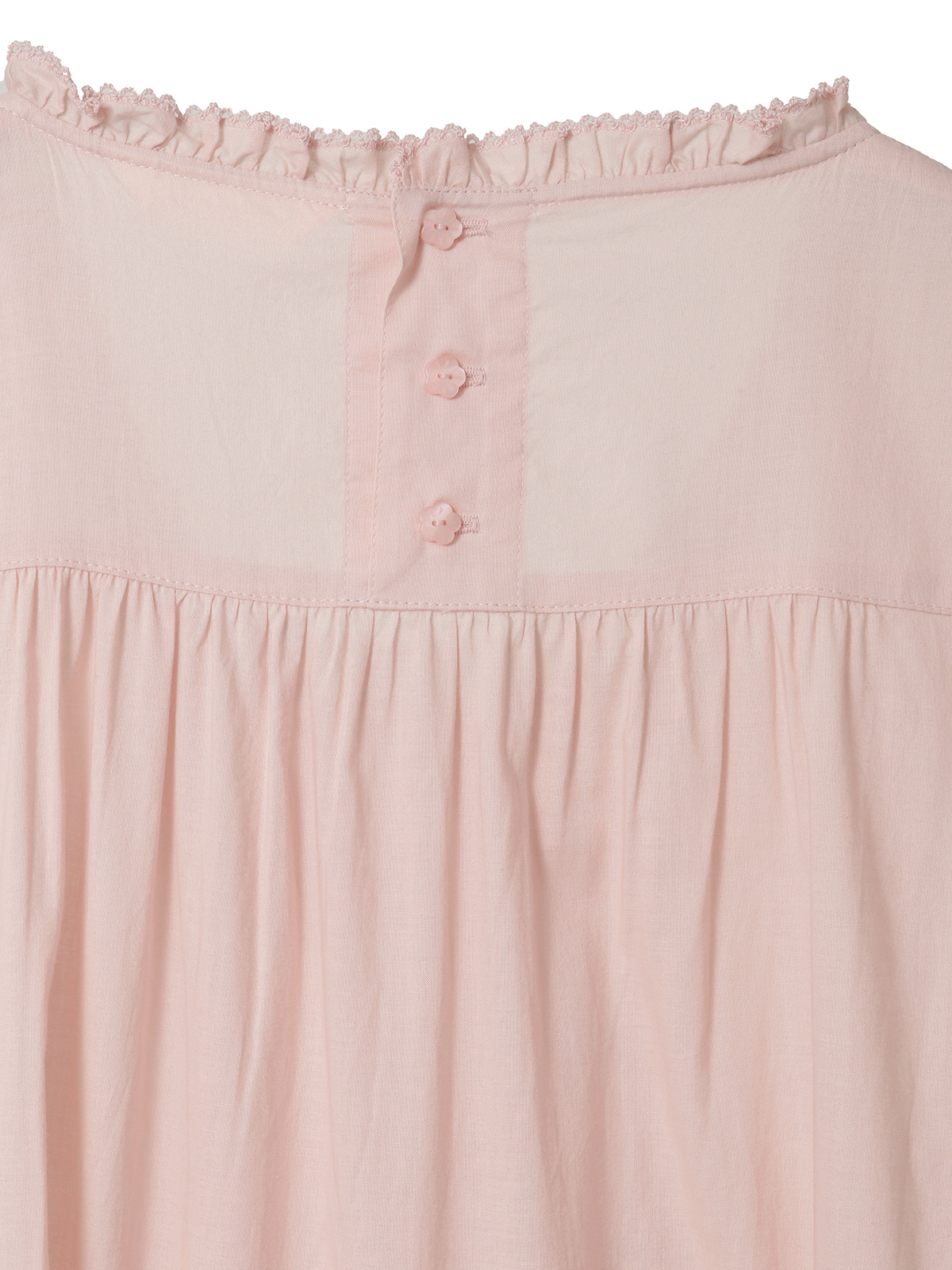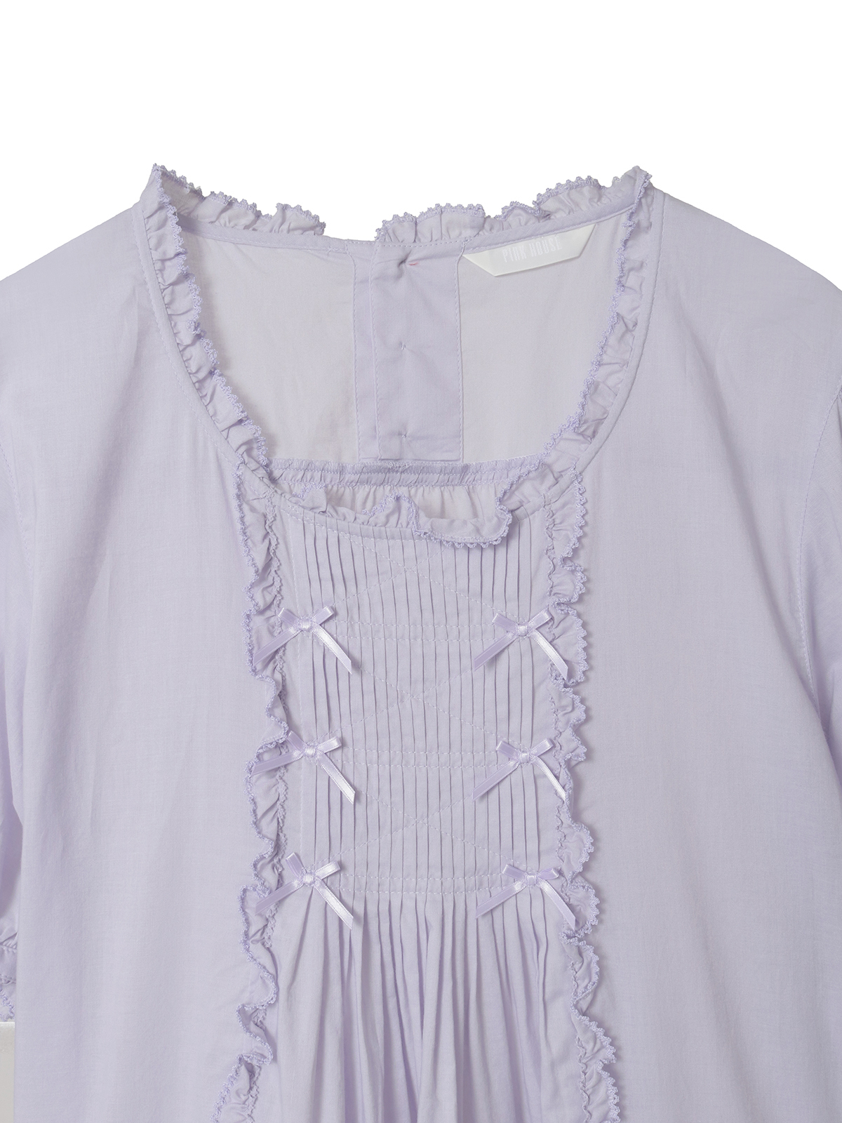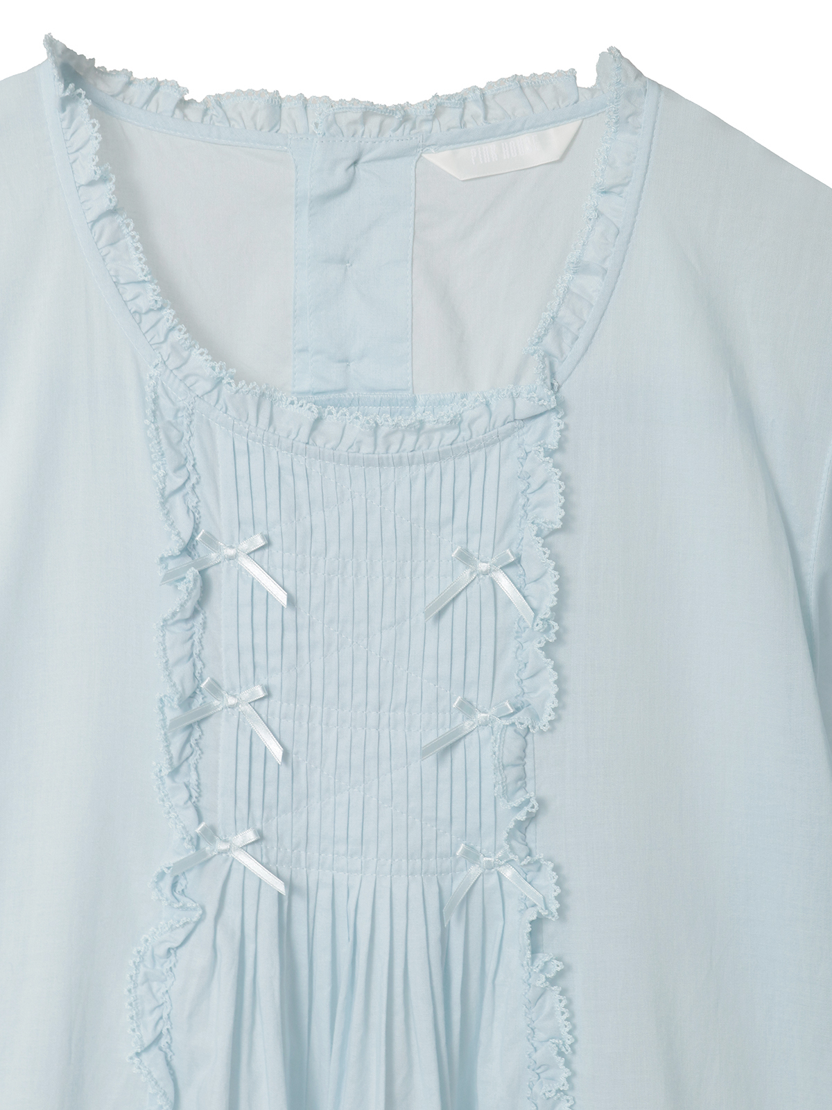 レイヤードスタイルが楽しめる、左サイドにたくし上げリボンの付いた綿ローンのワンピース。
