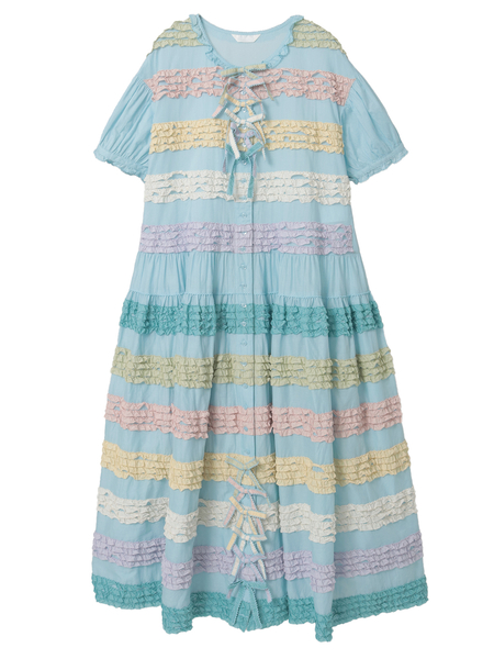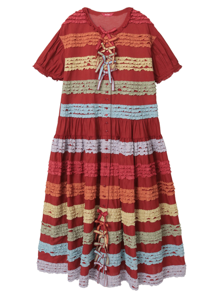 カラフルな色合いが夢広がる「おいり」をイメージしたフリル使いが可愛さ溢れるローンフリルワンピース。