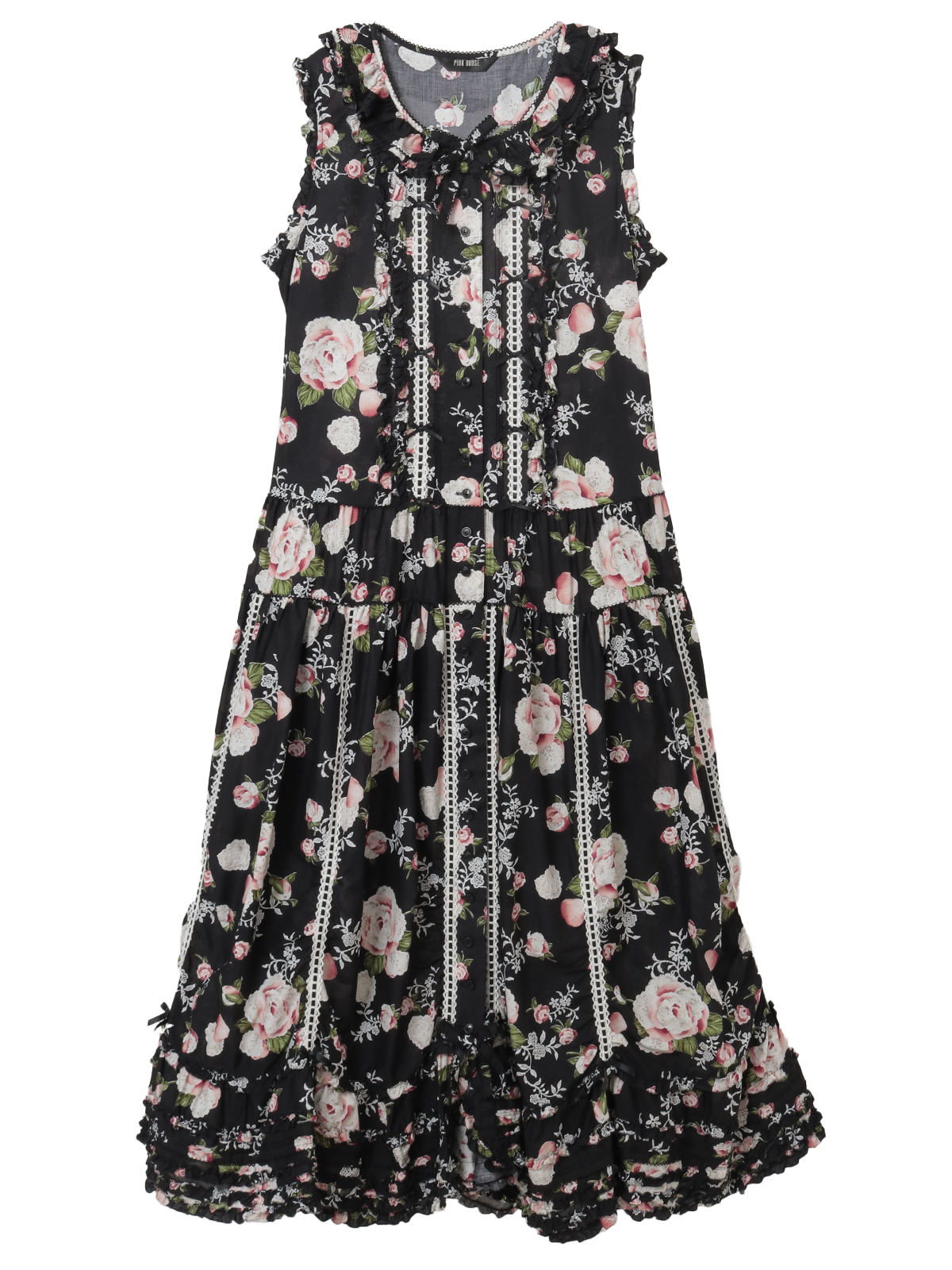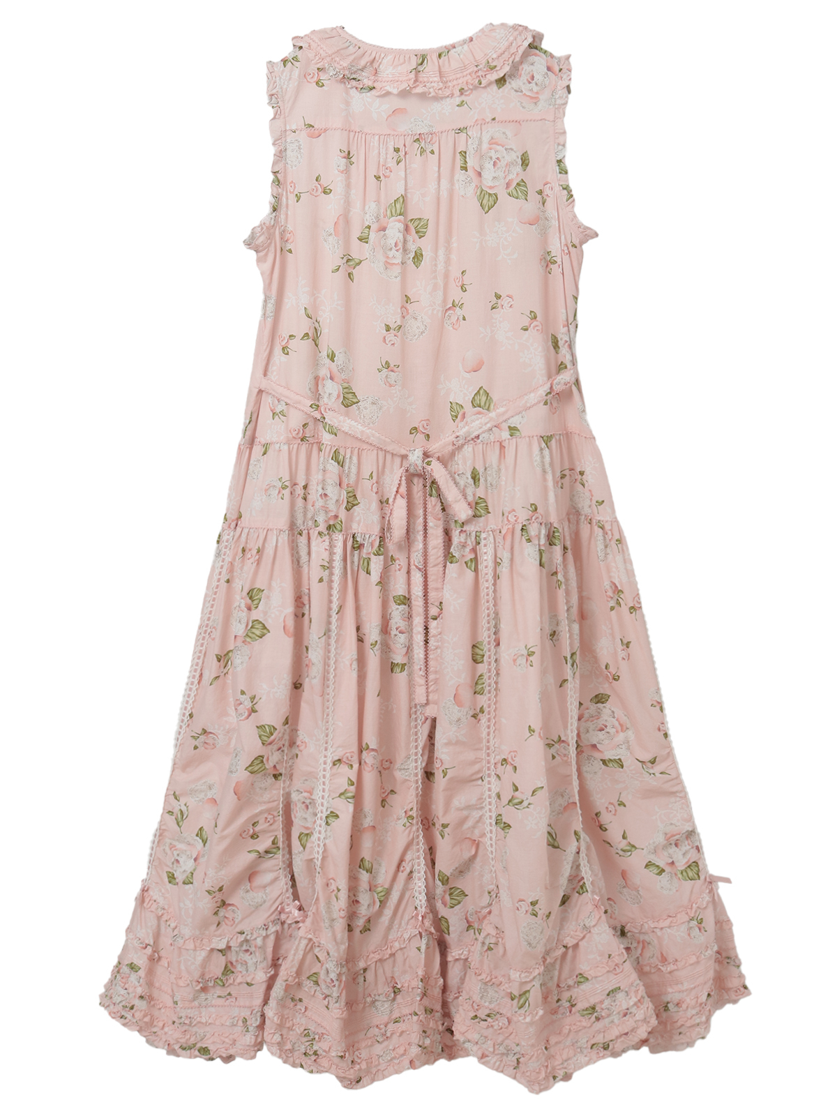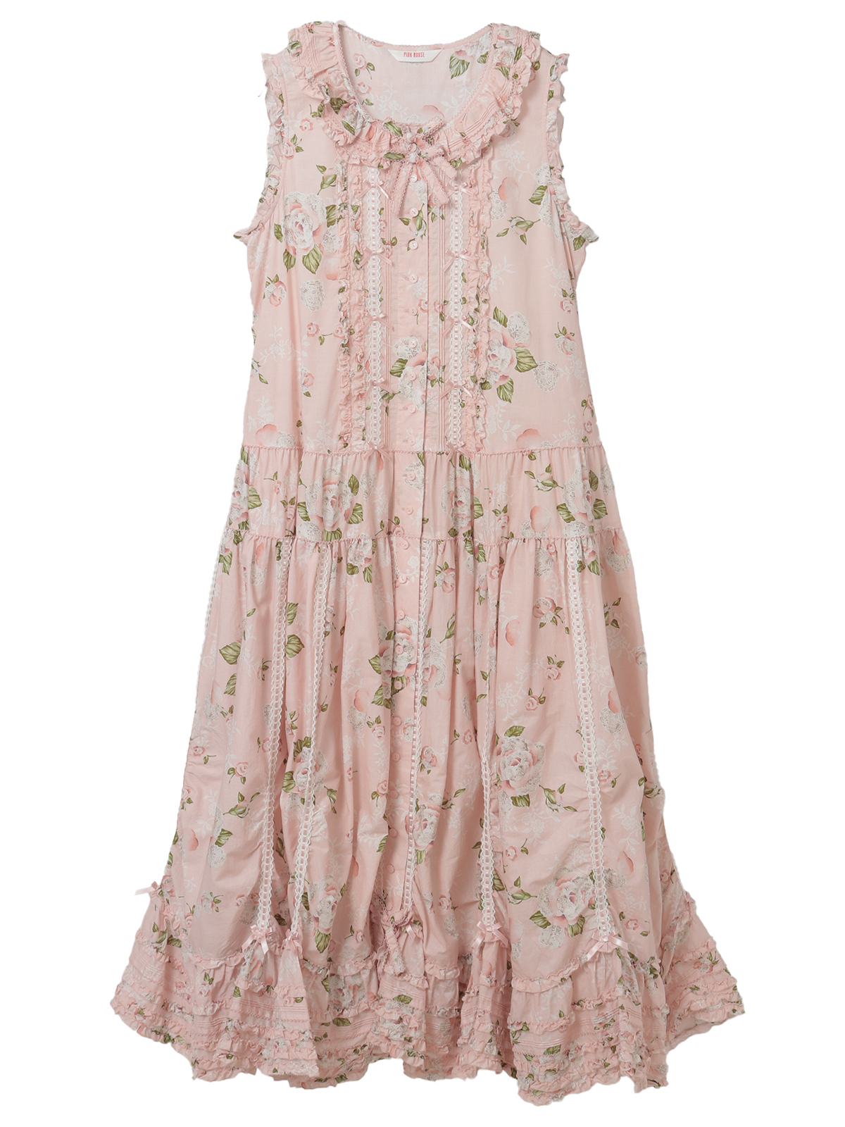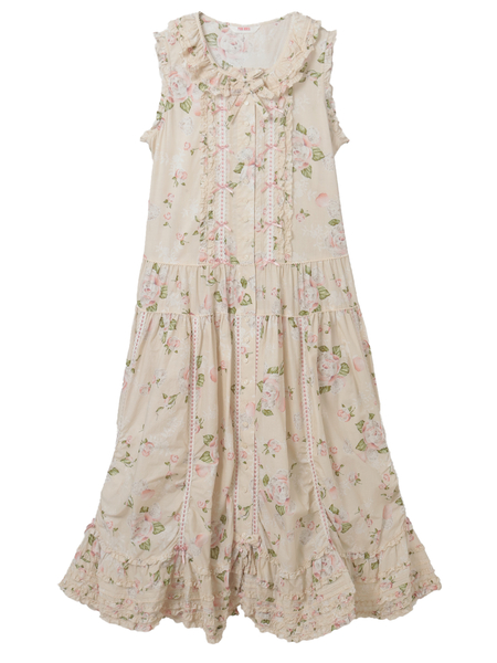 「ポワン・ド・ローズプリント」のロング丈のノースリーブワンピース。
