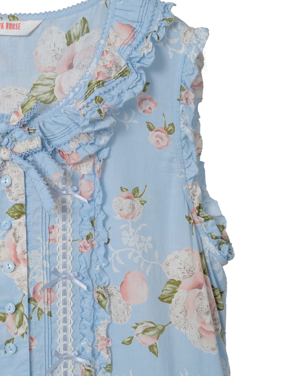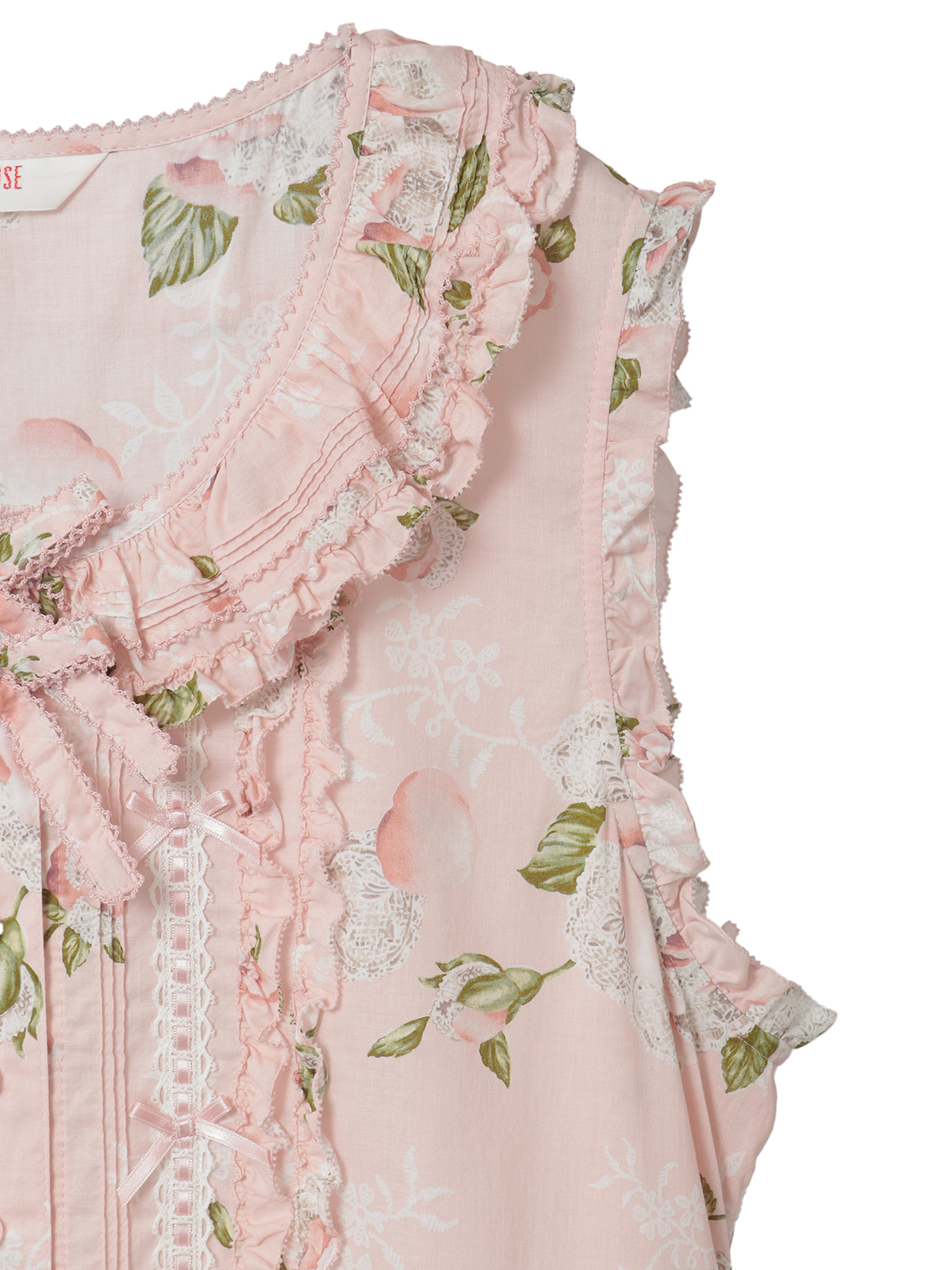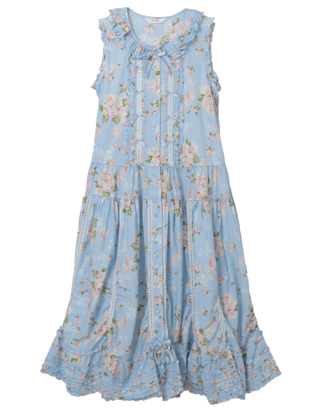 「ポワン・ド・ローズプリント」のロング丈のノースリーブワンピース。