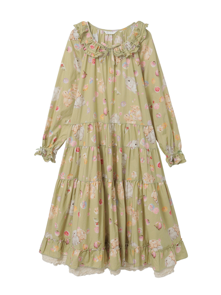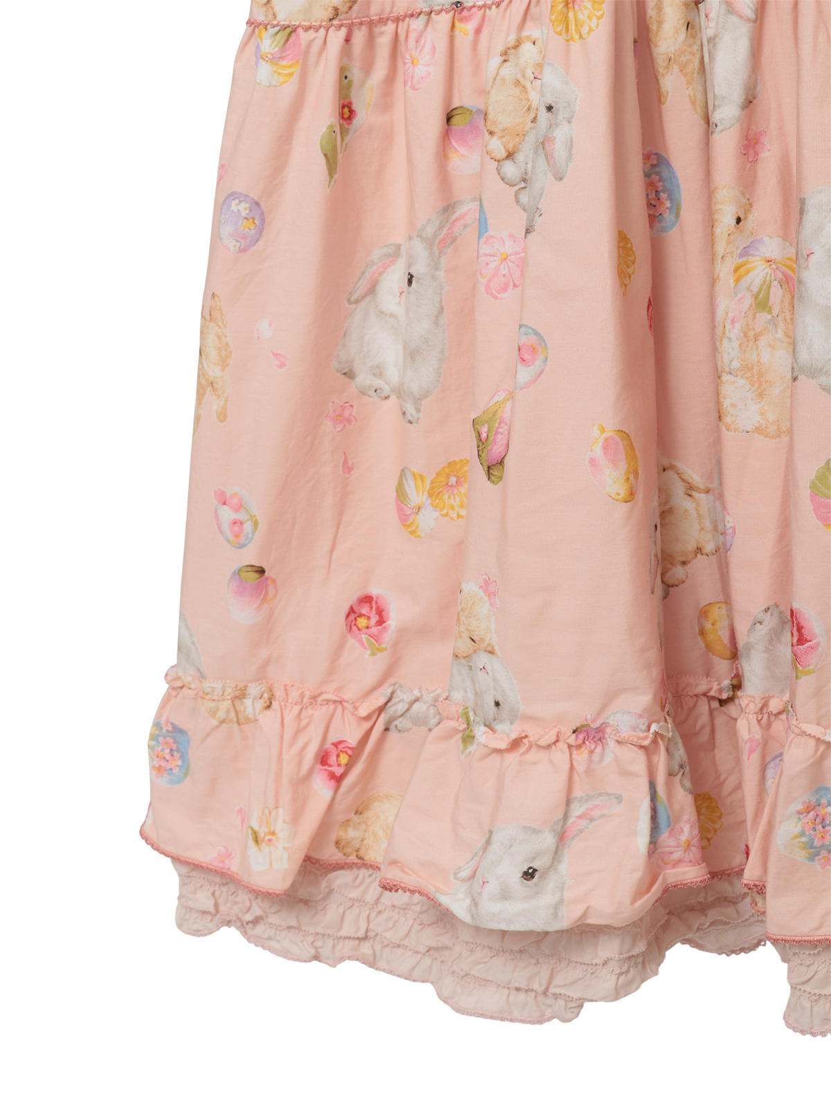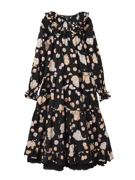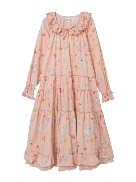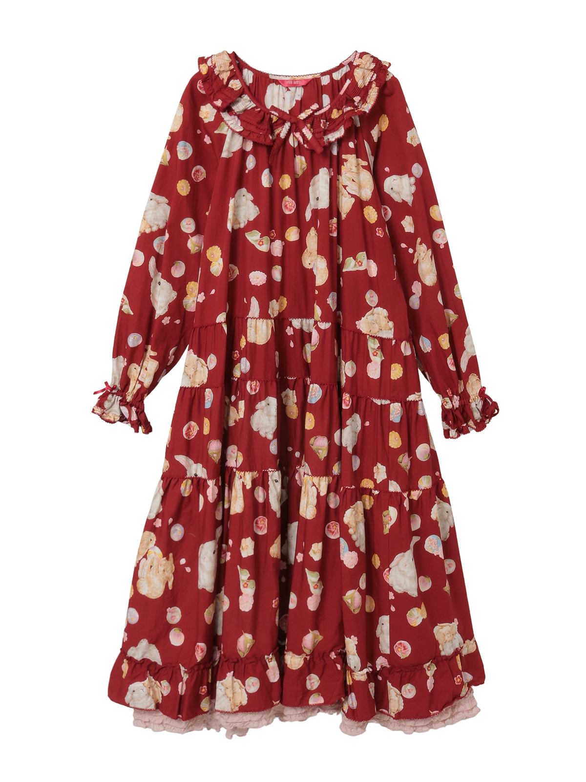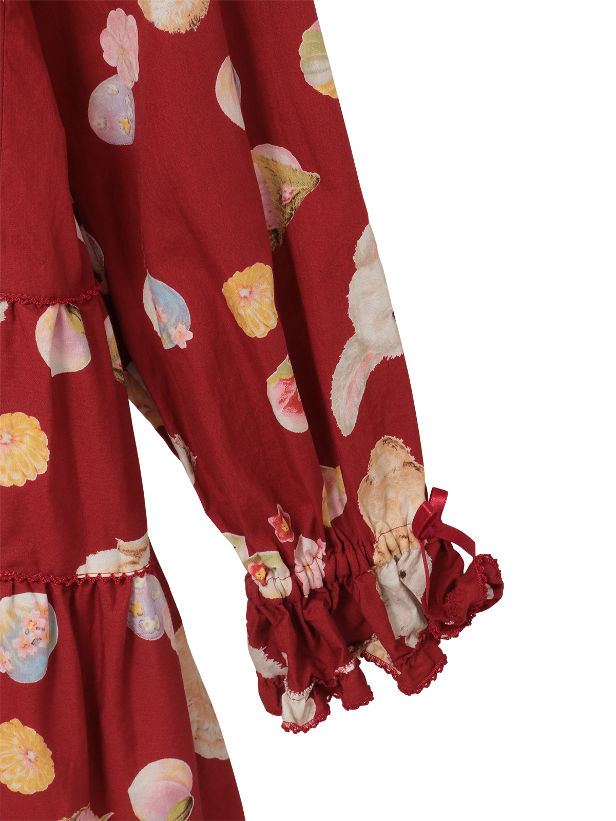 首まわりにはフリル感たっぷりなキュートな襟に首もとにはリボンモチーフを添えて可愛らしい仕上がりに。