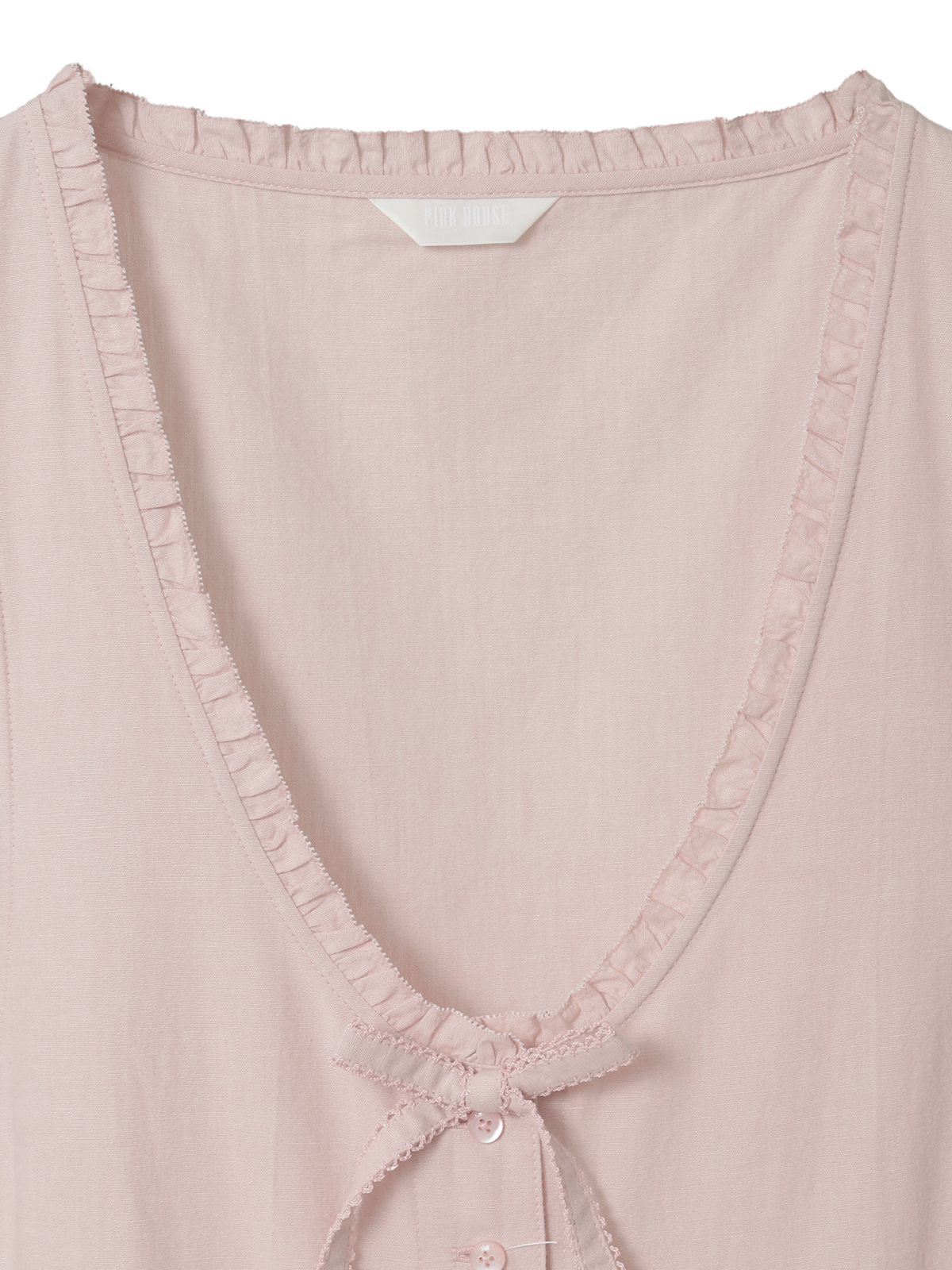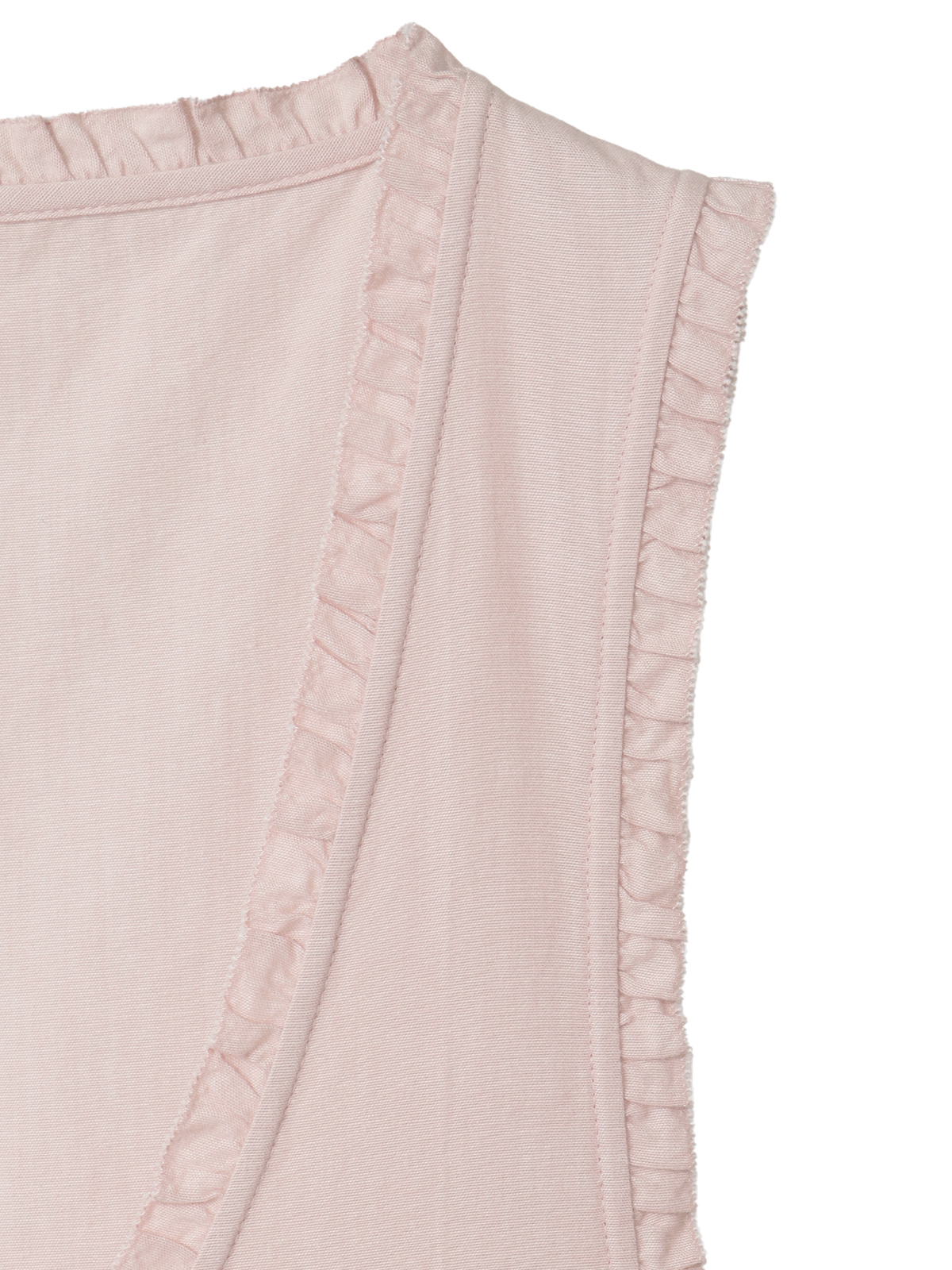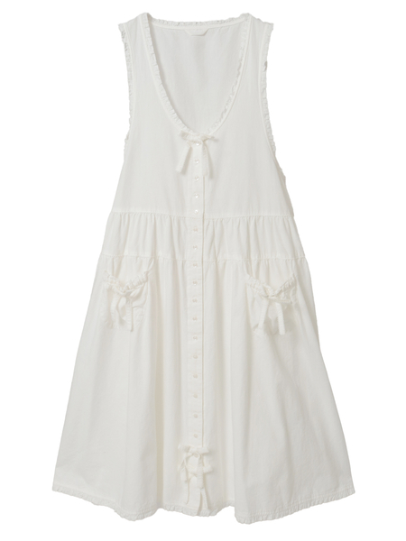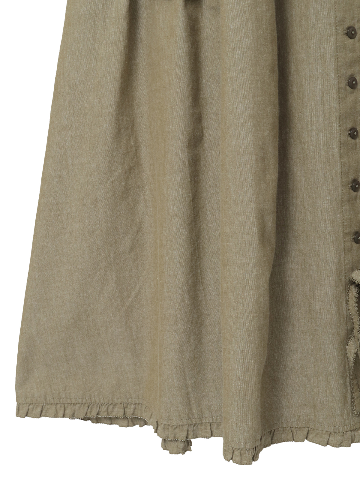 前開きタイプなので、なかにペチコートを合わせたり、全部開けてロングベスト風な着こなしも楽しめるアイテムに。
