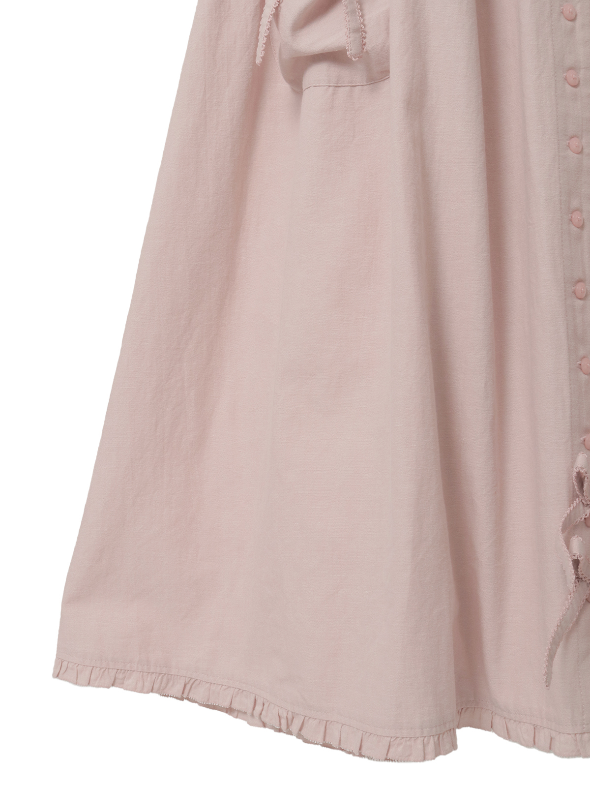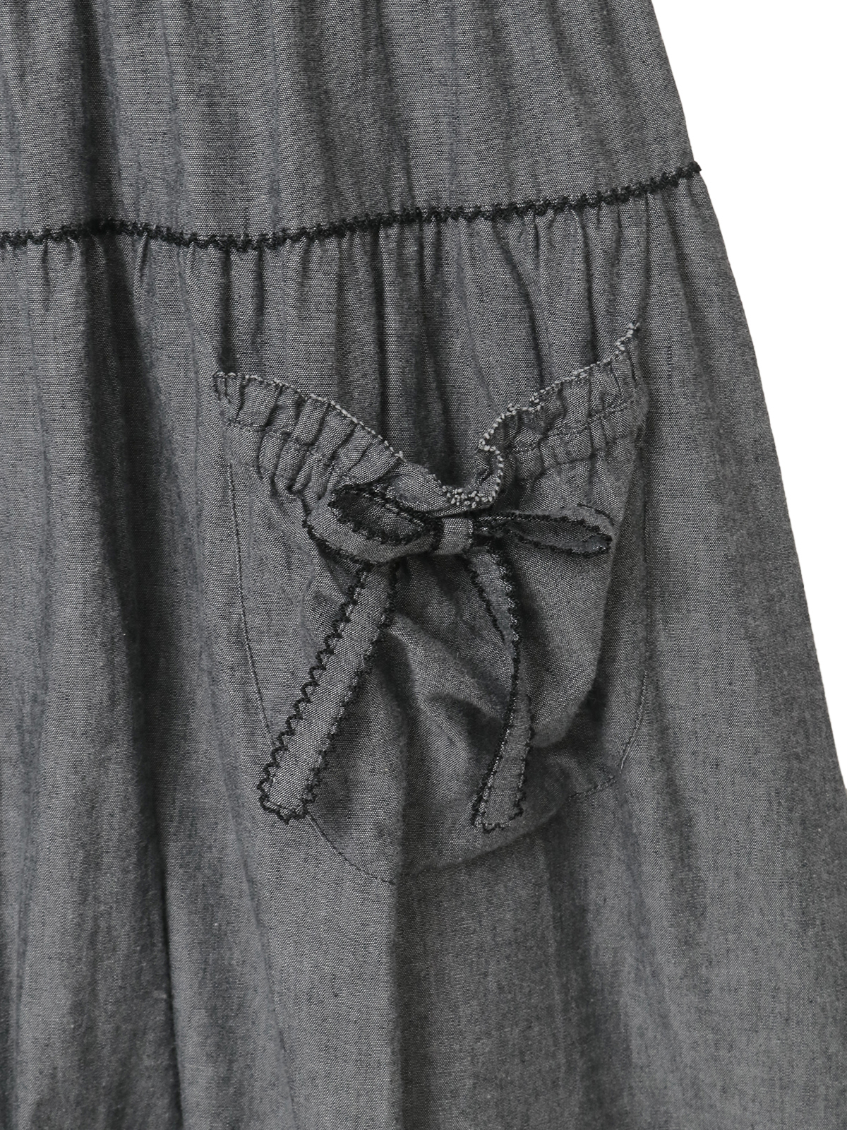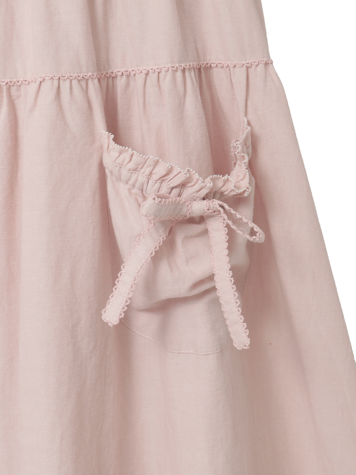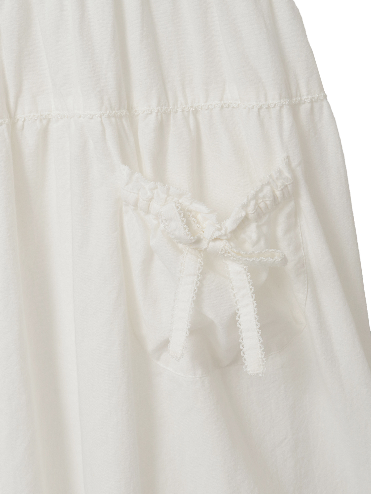 ウエスト両サイドから出ている紐はフロントやバックで結んでシルエット調節をしたり、アクセントにしたり、そのままヒラヒラと垂らしたままでも可愛いのでお好みでどうぞ。