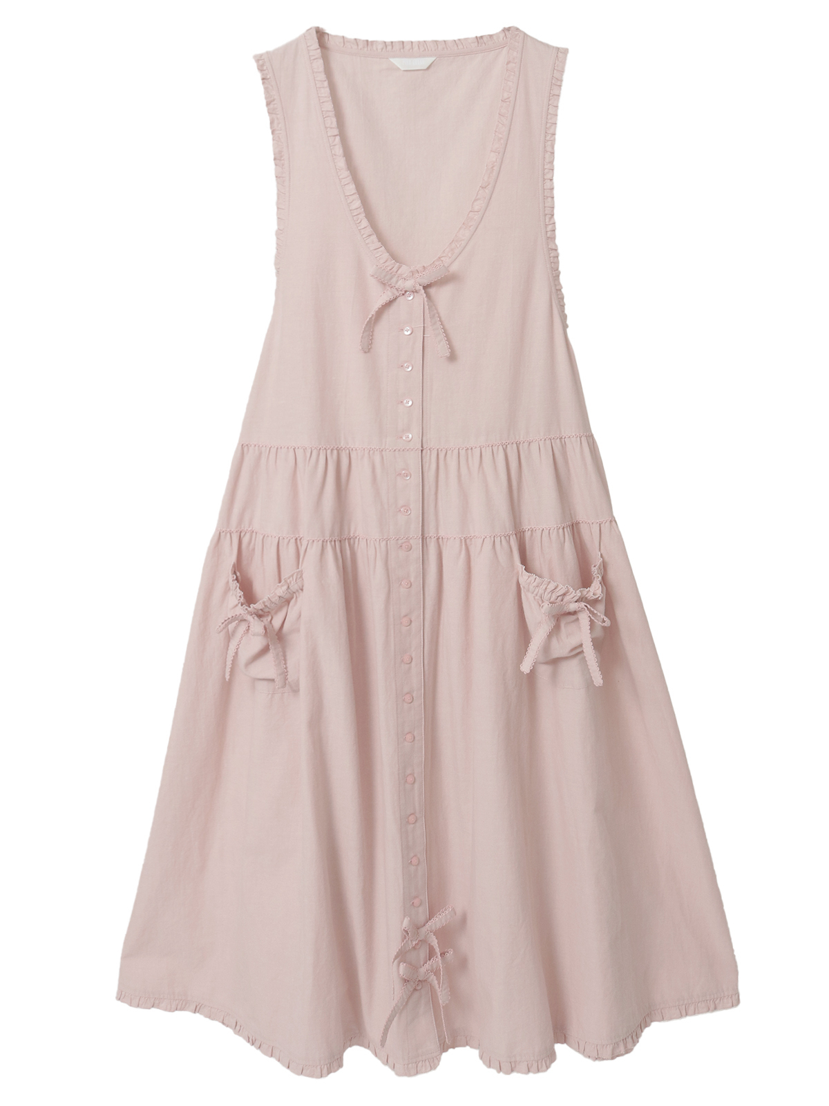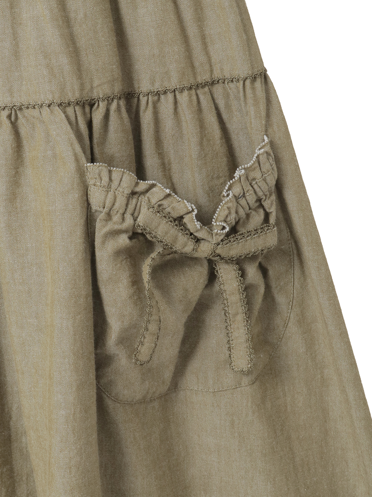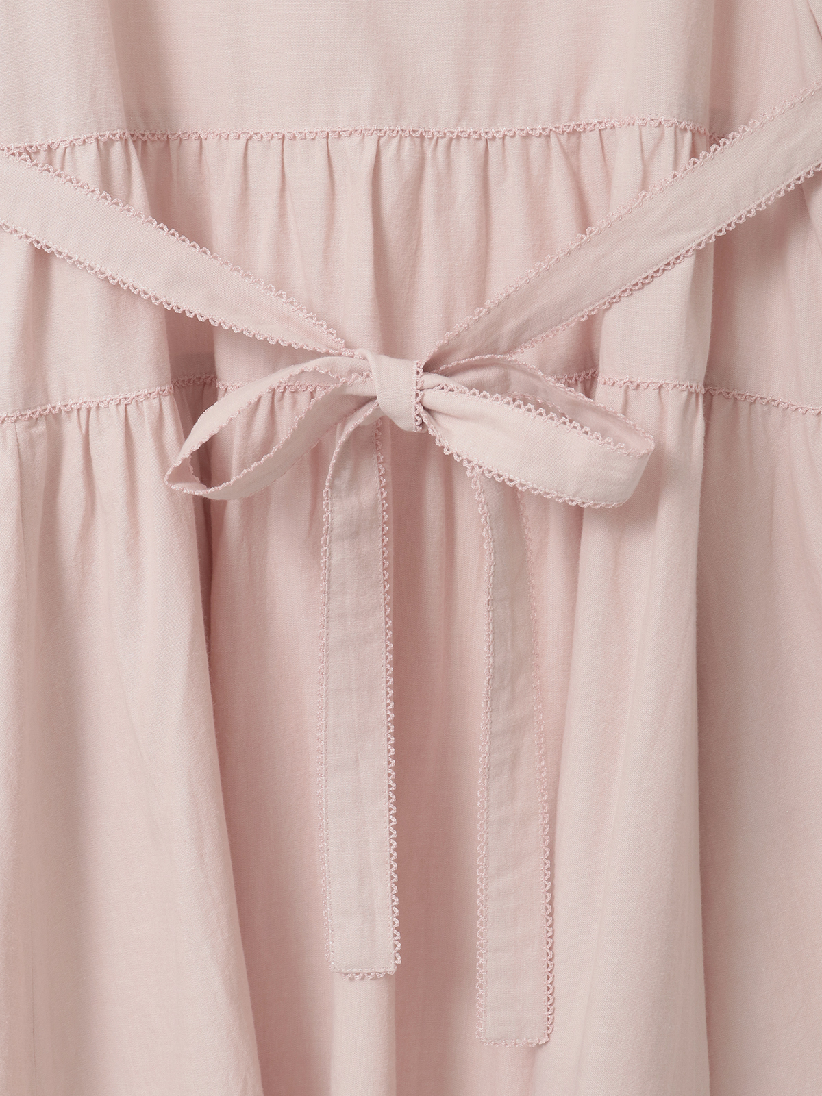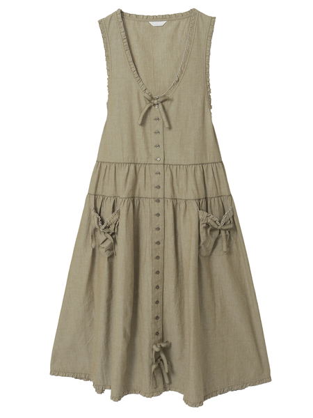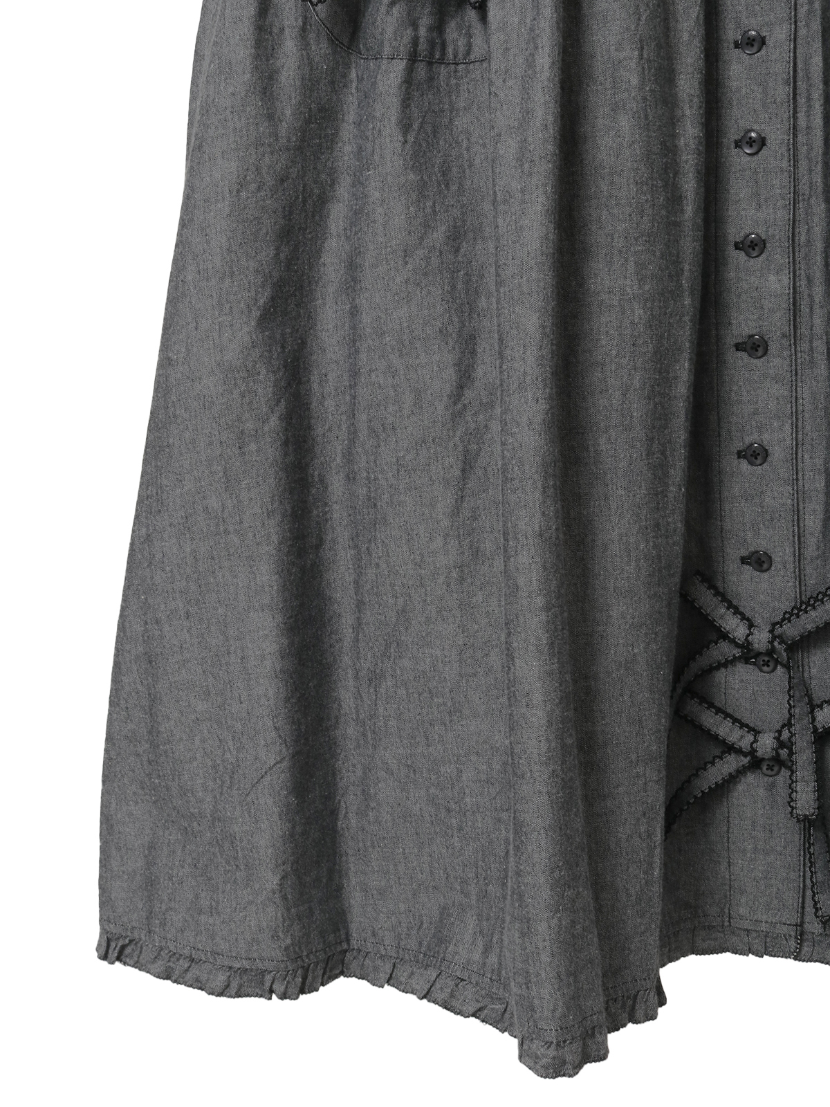 ウエスト両サイドから出ている紐はフロントやバックで結んでシルエット調節をしたり、アクセントにしたり、そのままヒラヒラと垂らしたままでも可愛いのでお好みでどうぞ。