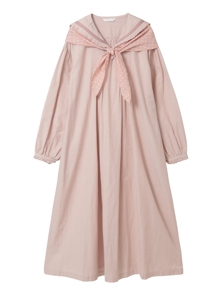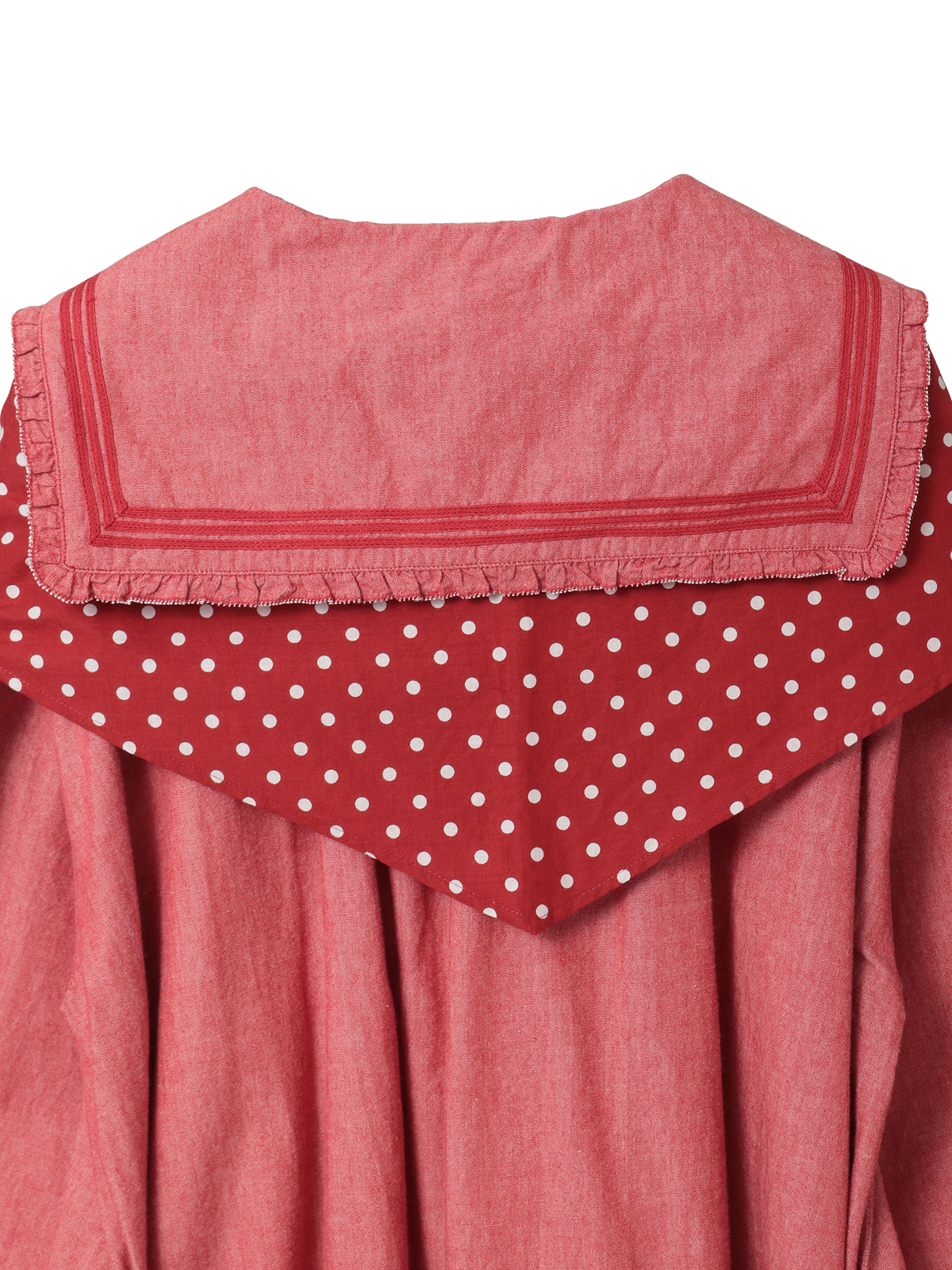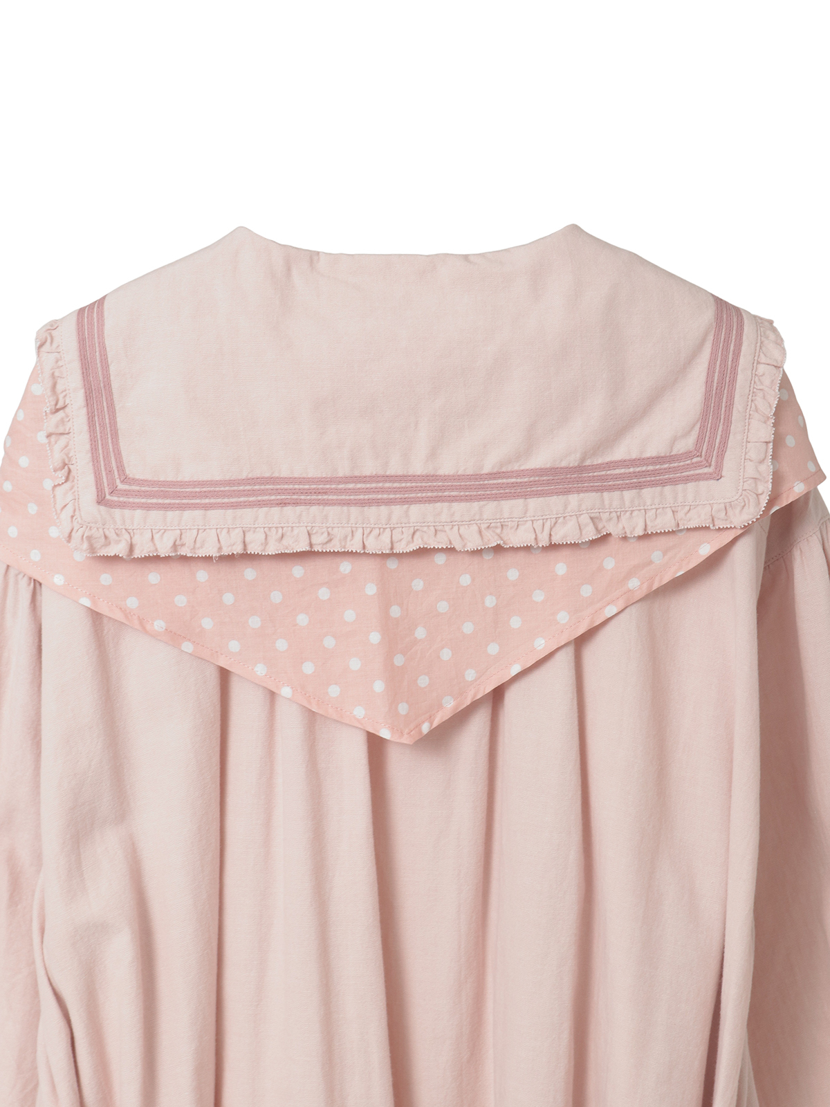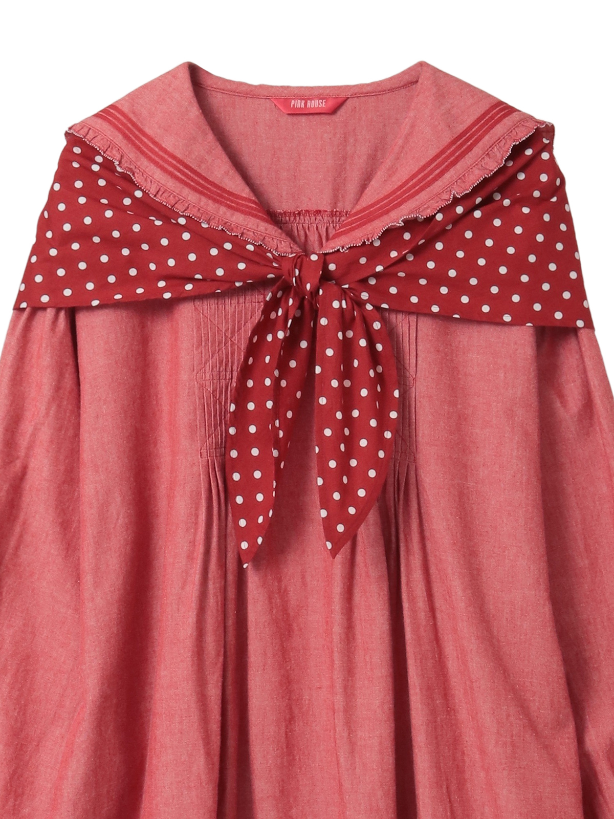 「水玉プリント」のスカーフ付き。スカーフは身生地と同系色のものをそれぞれセレクト。