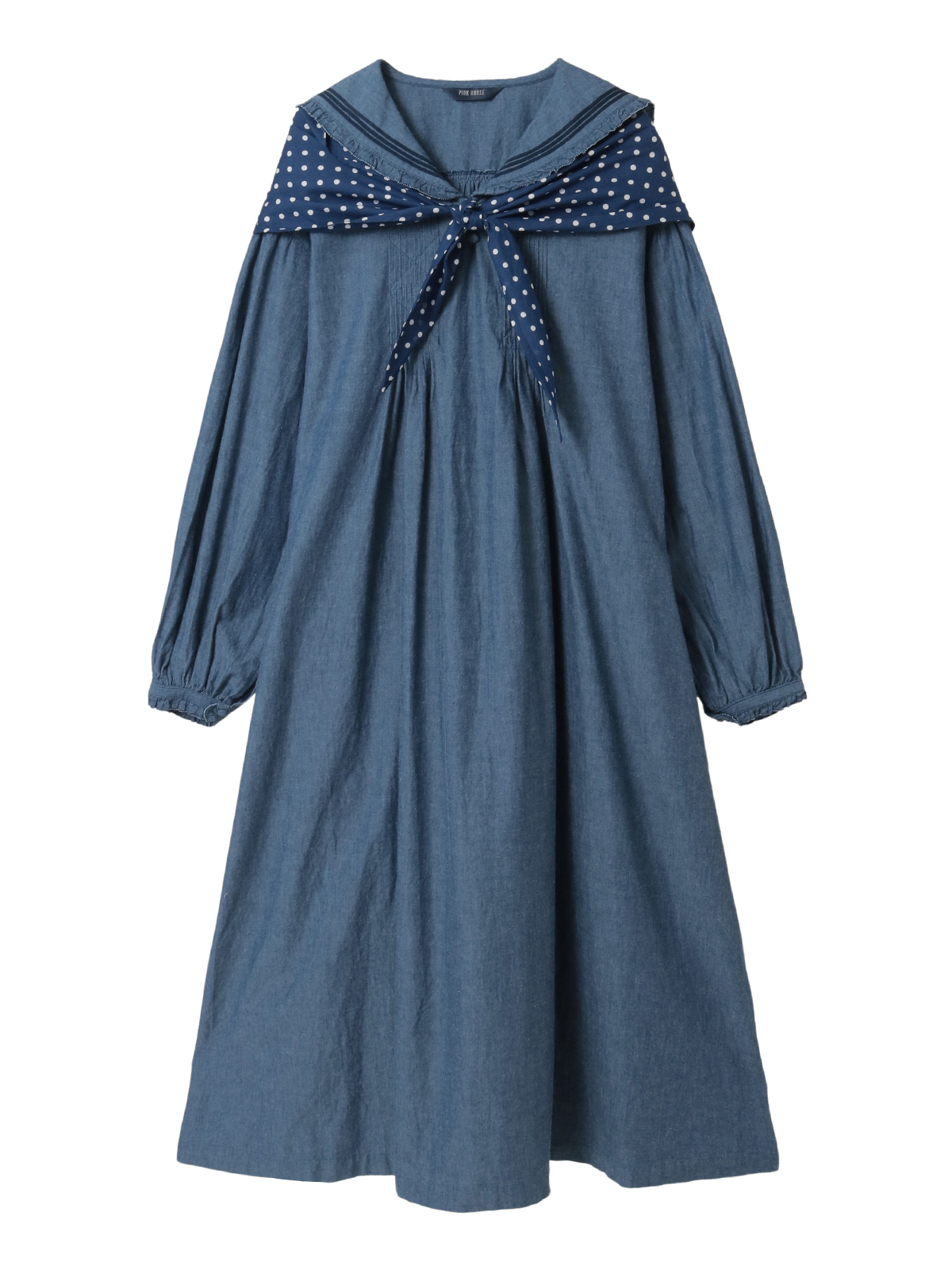 さらりと着やすくて、そして清楚で可愛いセーラーカラーのワンピース。春らしいダンガリー素材で登場です。