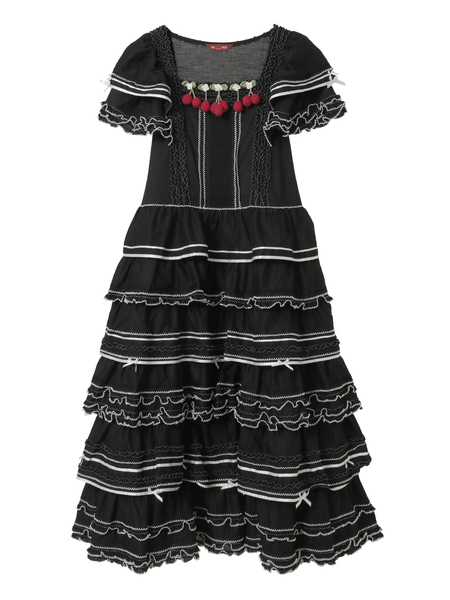 • さくらんぼモチーフ使いフリルワンピース