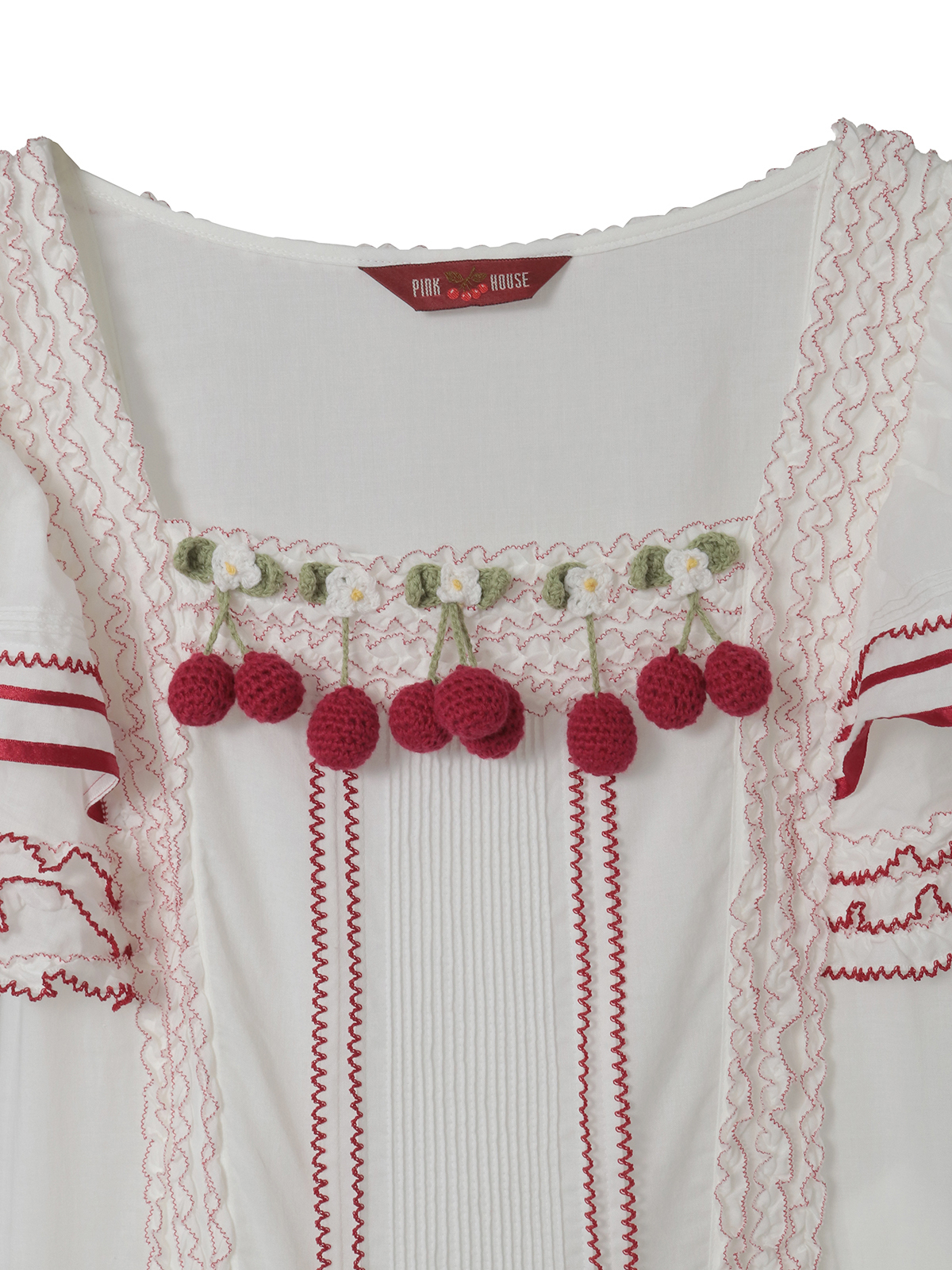 「さくらんぼの日曜日」プリントに描かれた、まあるく実ったさくらんぼを可愛らしいニットモチーフに。