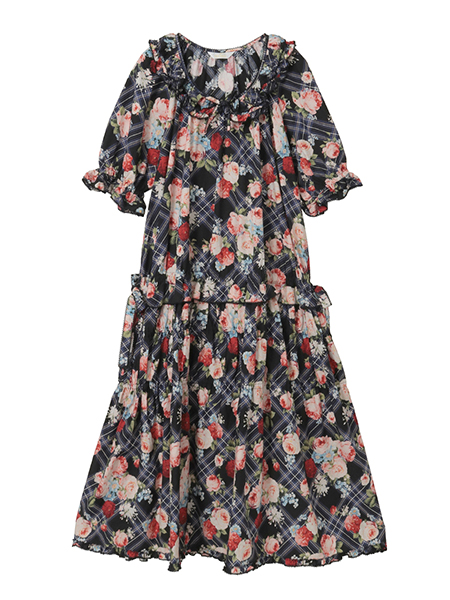 • フラワーチェックプリントミディワンピース