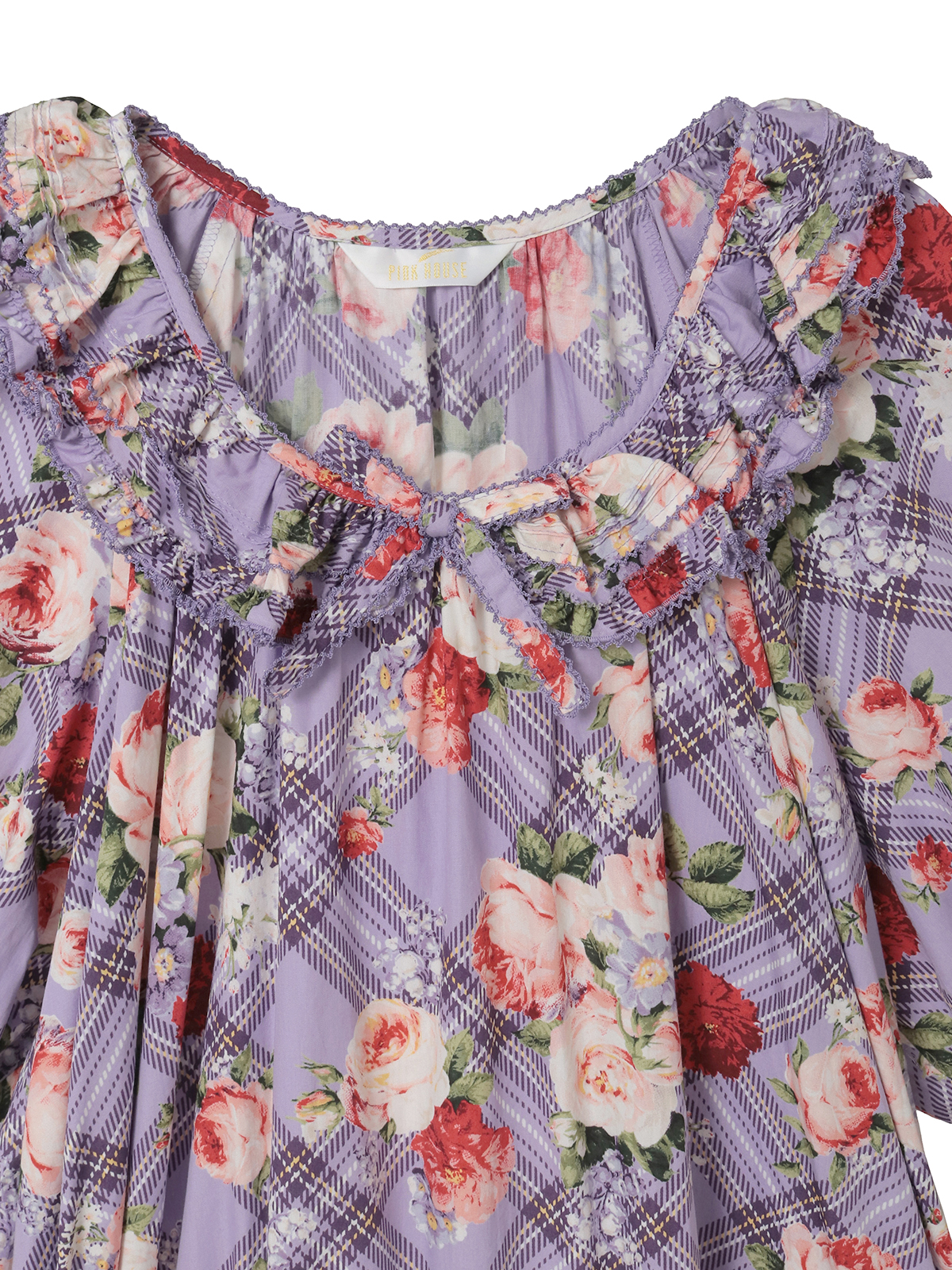 • フラワーチェックプリントミディワンピース 詳細画像