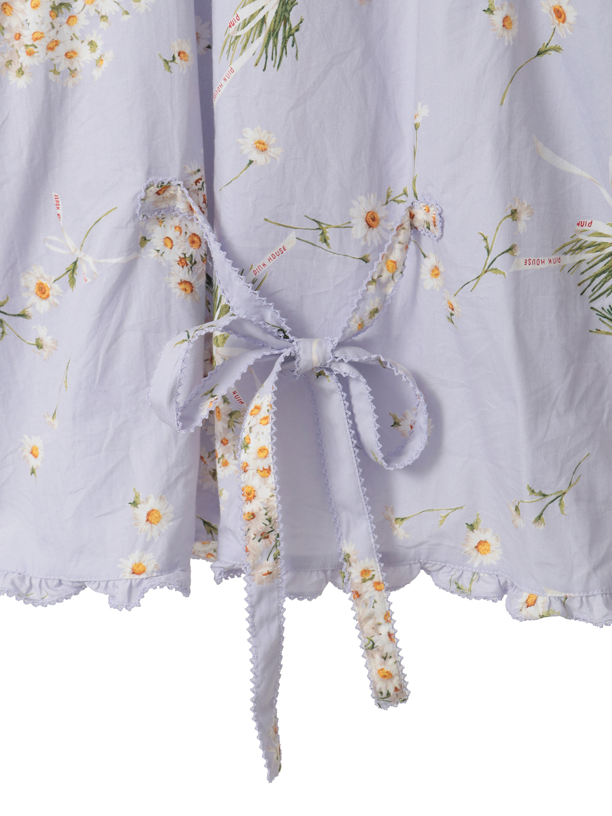 穏やかなプリントの雰囲気から、ゆったりとしたギャザー感のアイテムや、ブロード地にプリントをしているので、1枚着でニット羽織ったシンプルコーデや、無地ローンやドットチュールなどを重ね合わせて華やかなレイヤードスタイルもお楽しみいただけるシリーズに。