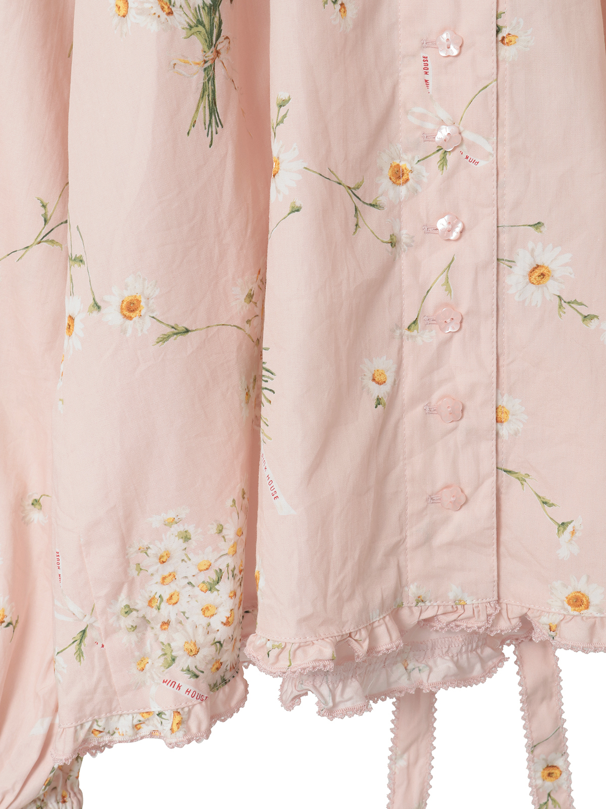ひらりひらりとしなやかにそよぐ一輪の花たちは、静かな雪のように生地の上に舞って春を待つ優しい花々を柔らかく束ねてブーケにして、純粋で素朴、どこか懐かしいような野の花束はピンクハウスでも昔から愛されているお花のモチーフを生地にのせて・・・