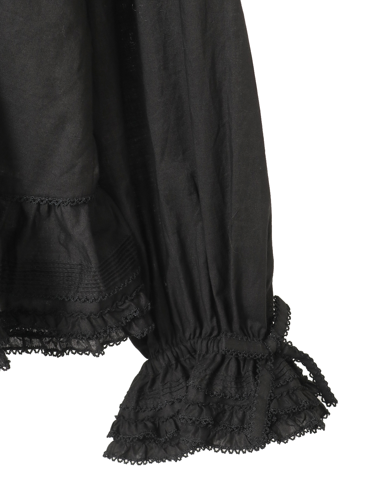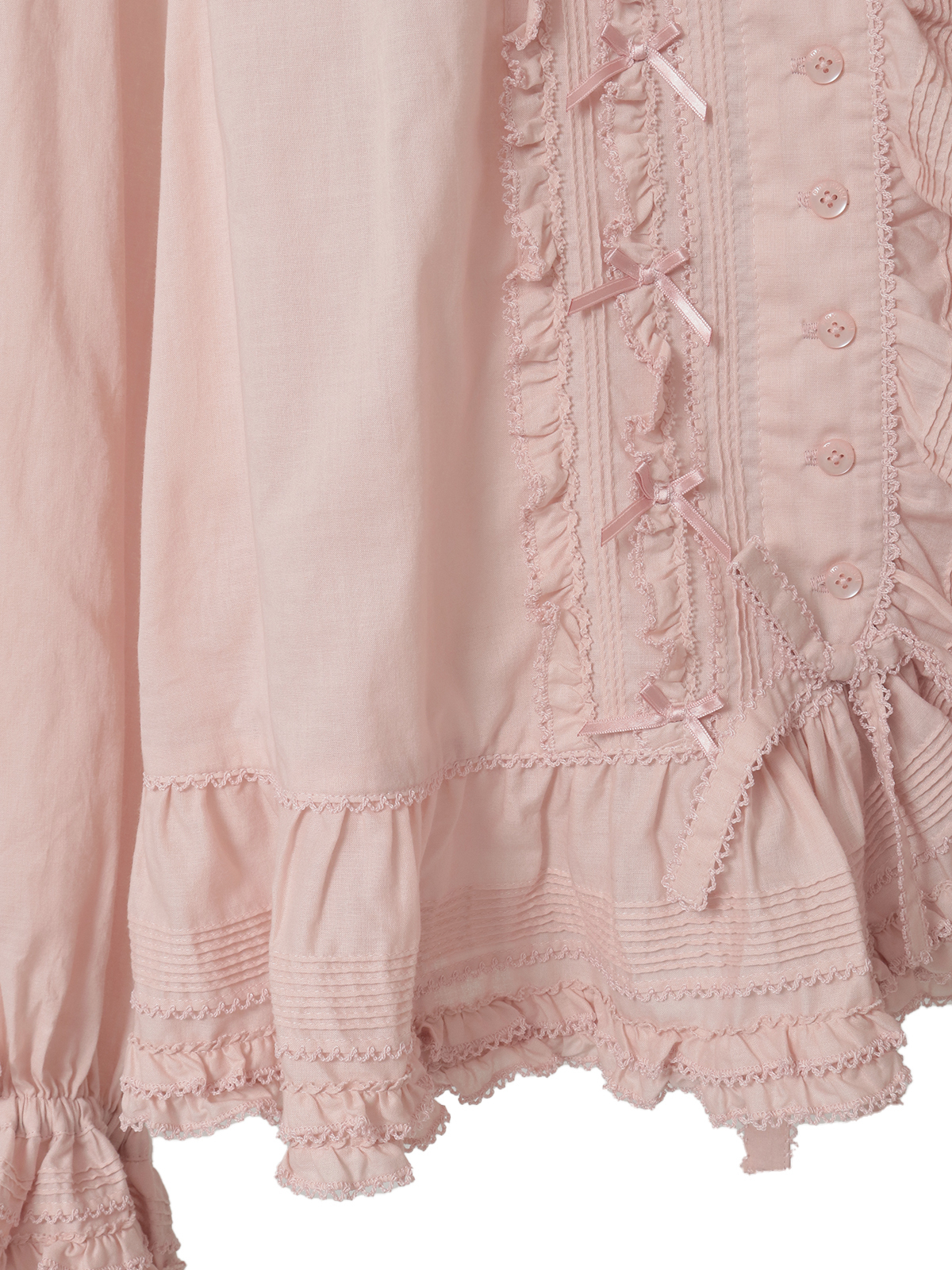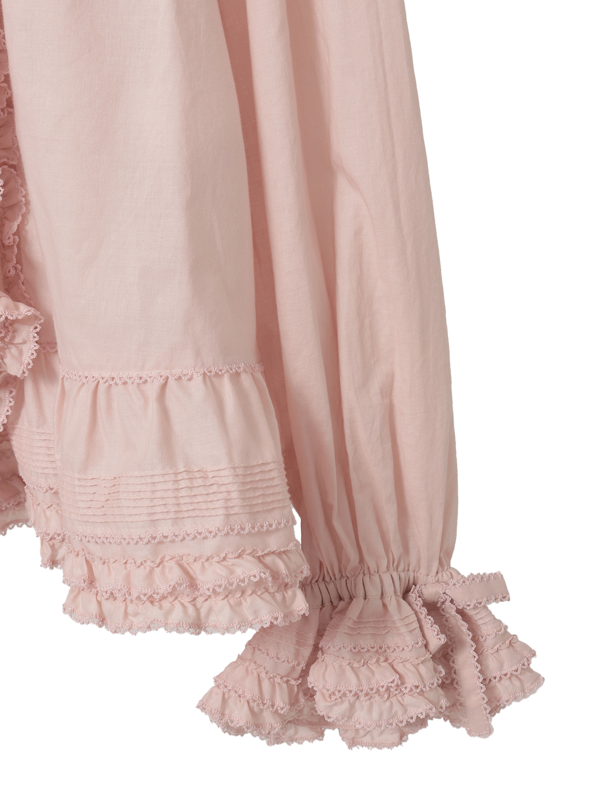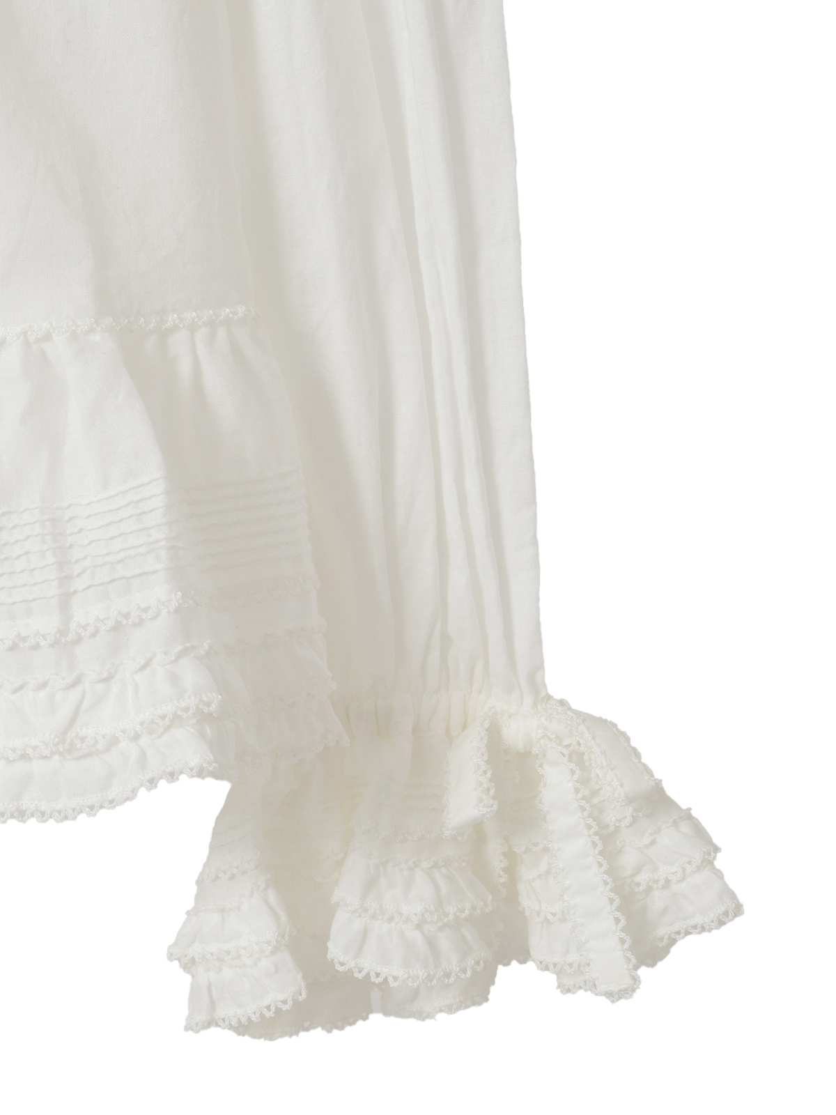 ピコフリルにピンタックといったキュートなディティールをふんだんにあしらった綿ローンのオーバーブラウス。