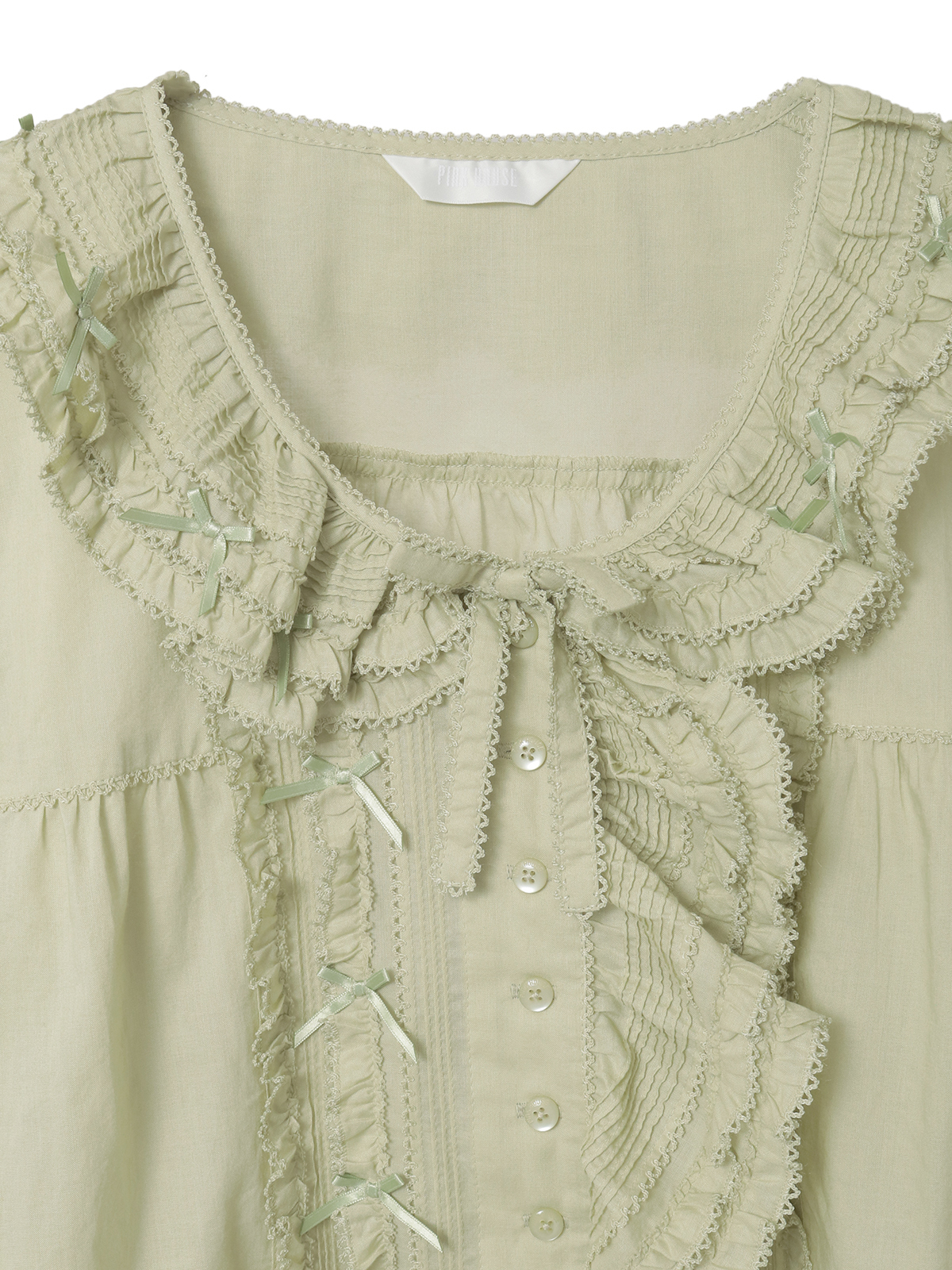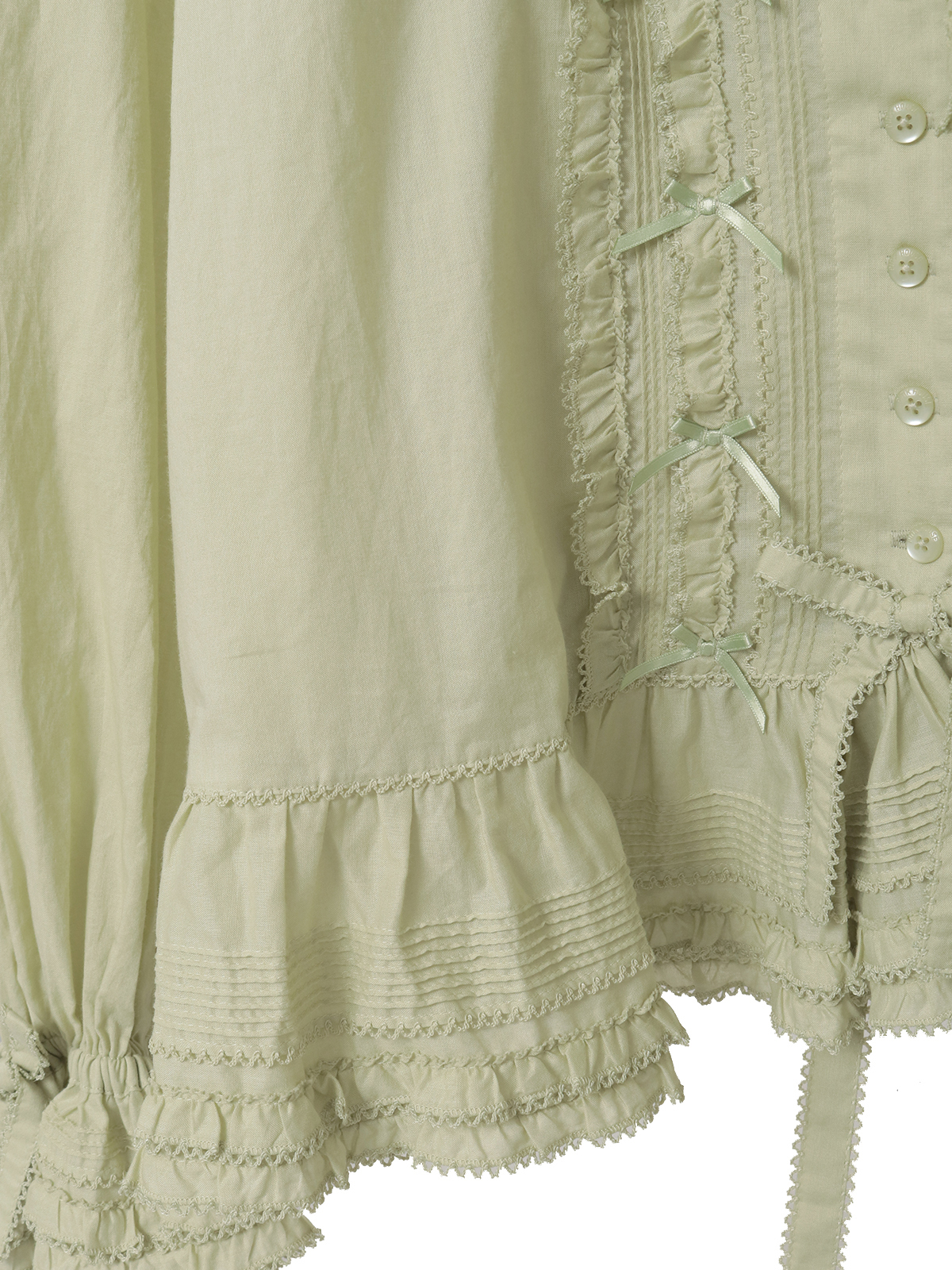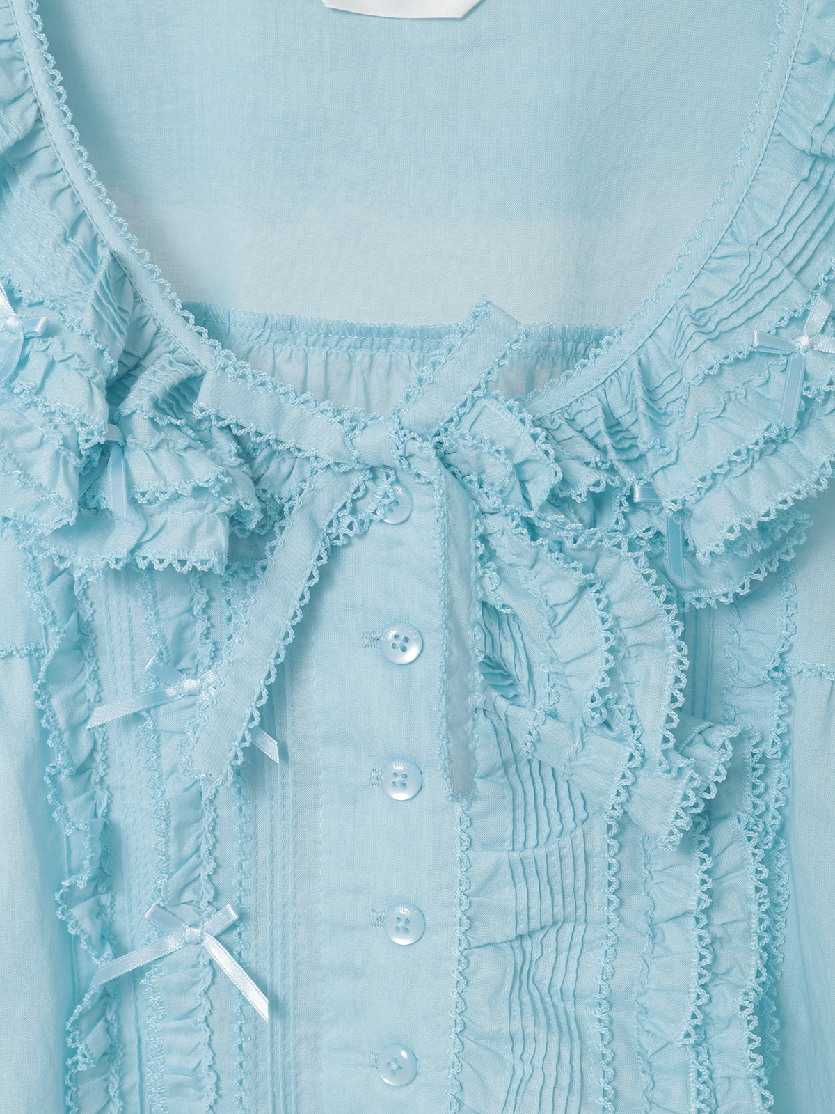 ピコフリルにピンタックといったキュートなディティールをふんだんにあしらった綿ローンのオーバーブラウス。