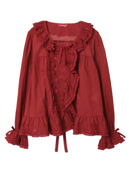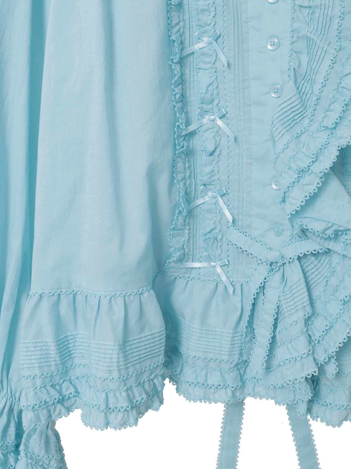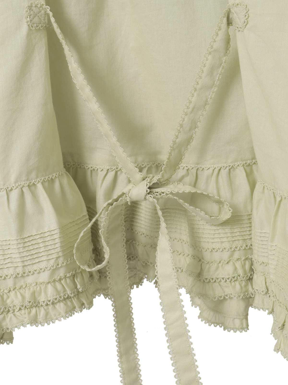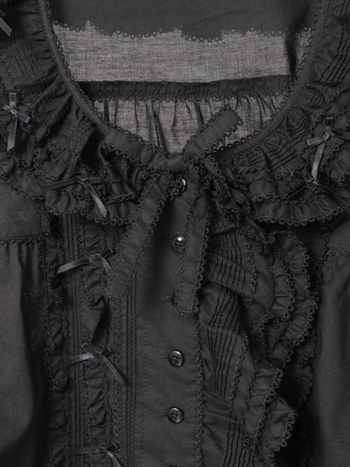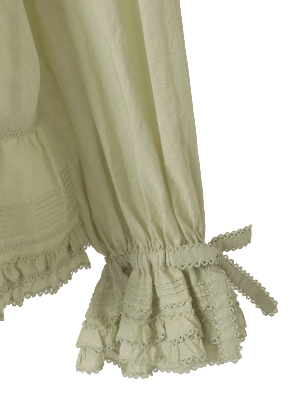 ピコフリルにピンタックといったキュートなディティールをふんだんにあしらった綿ローンのオーバーブラウス。