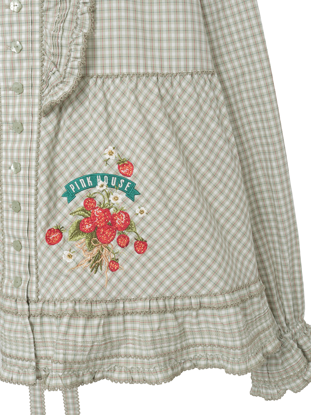 「苺リースプリント」にも描かれた、ちいさなブーケを刺繍にして、左サイドにあしらってワンポイントに。