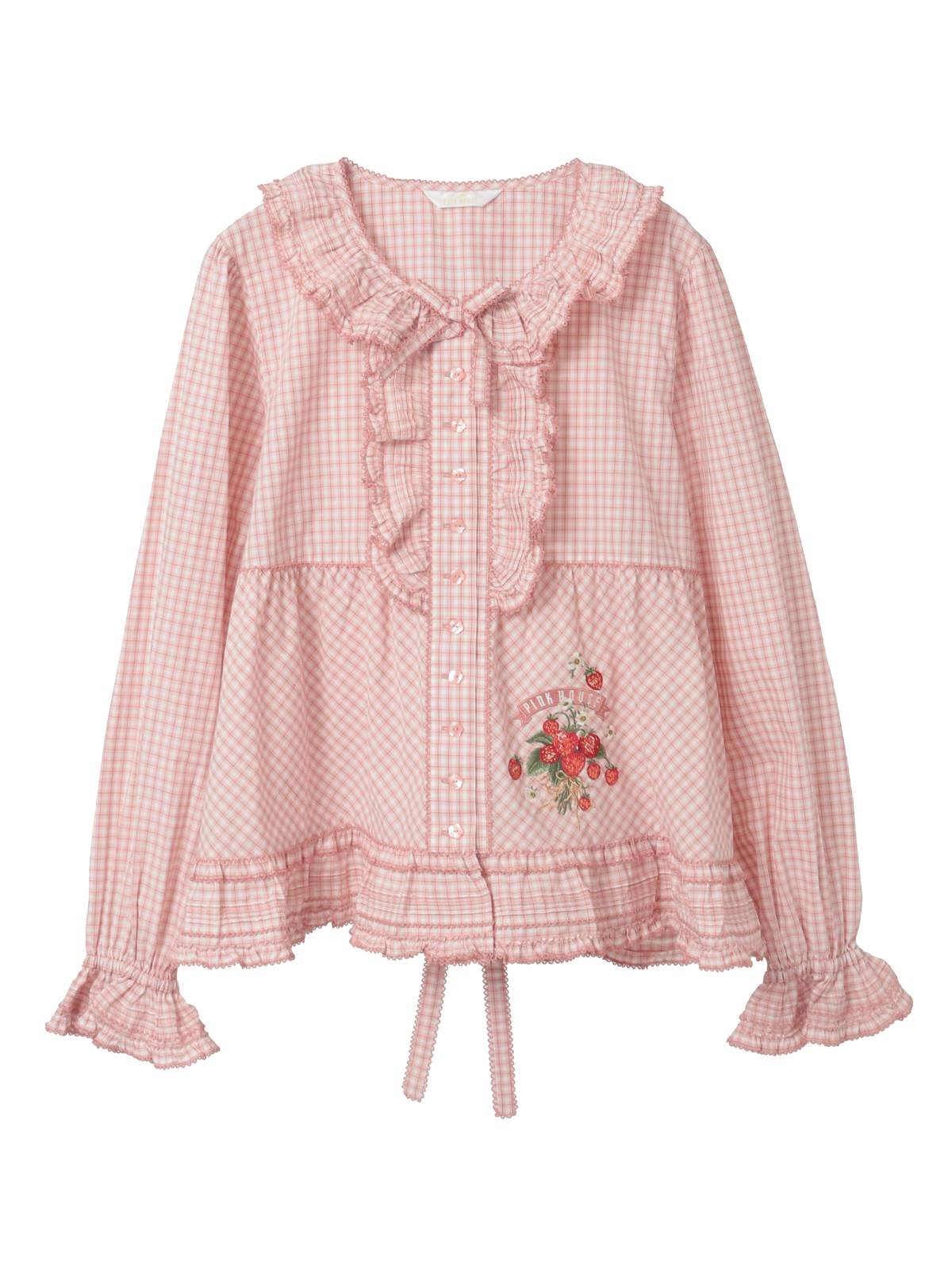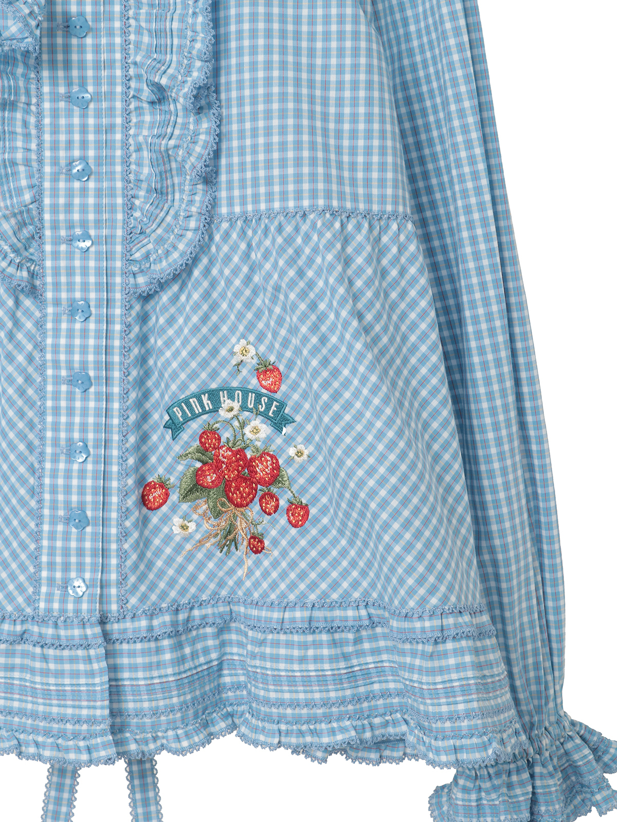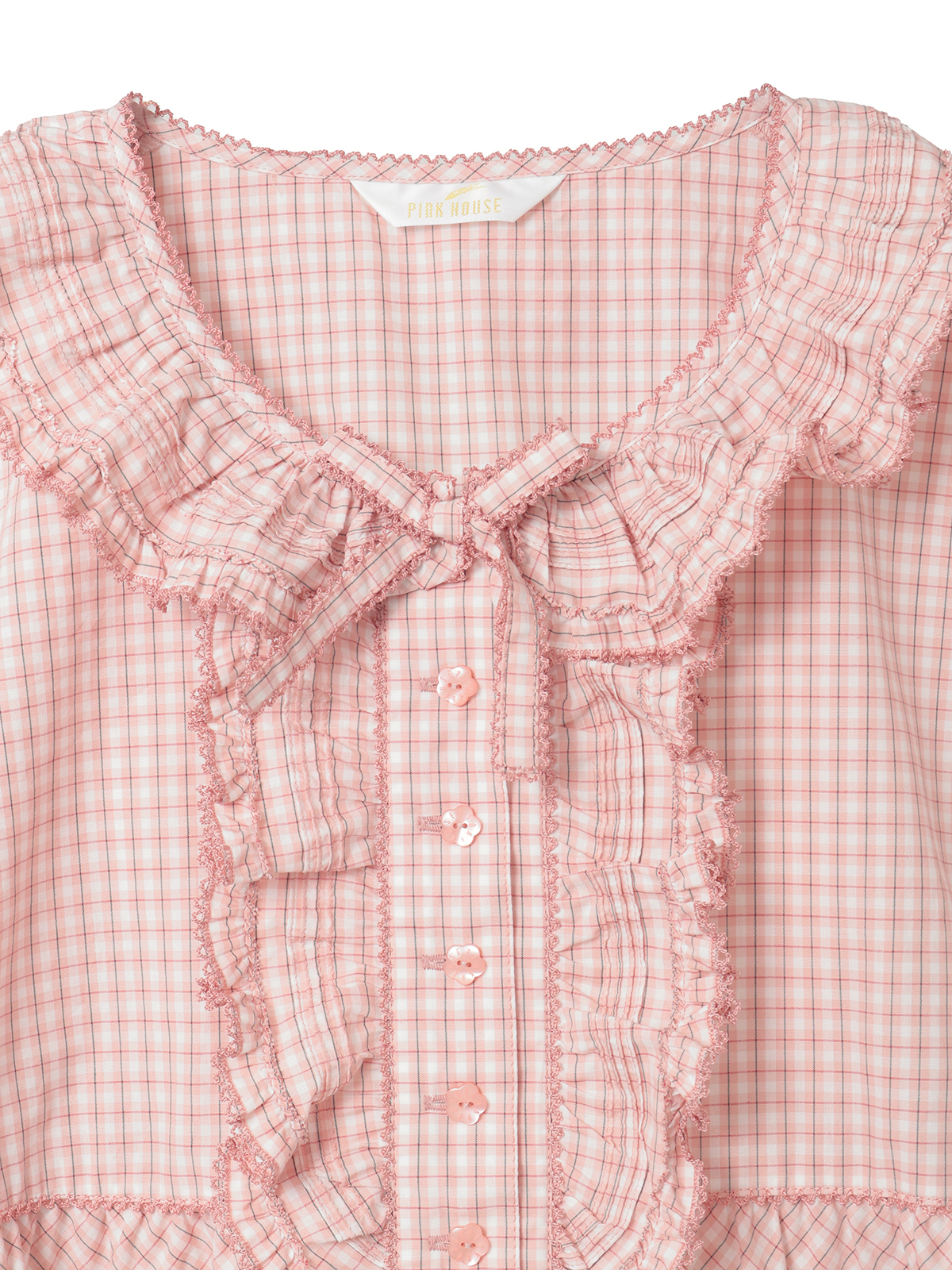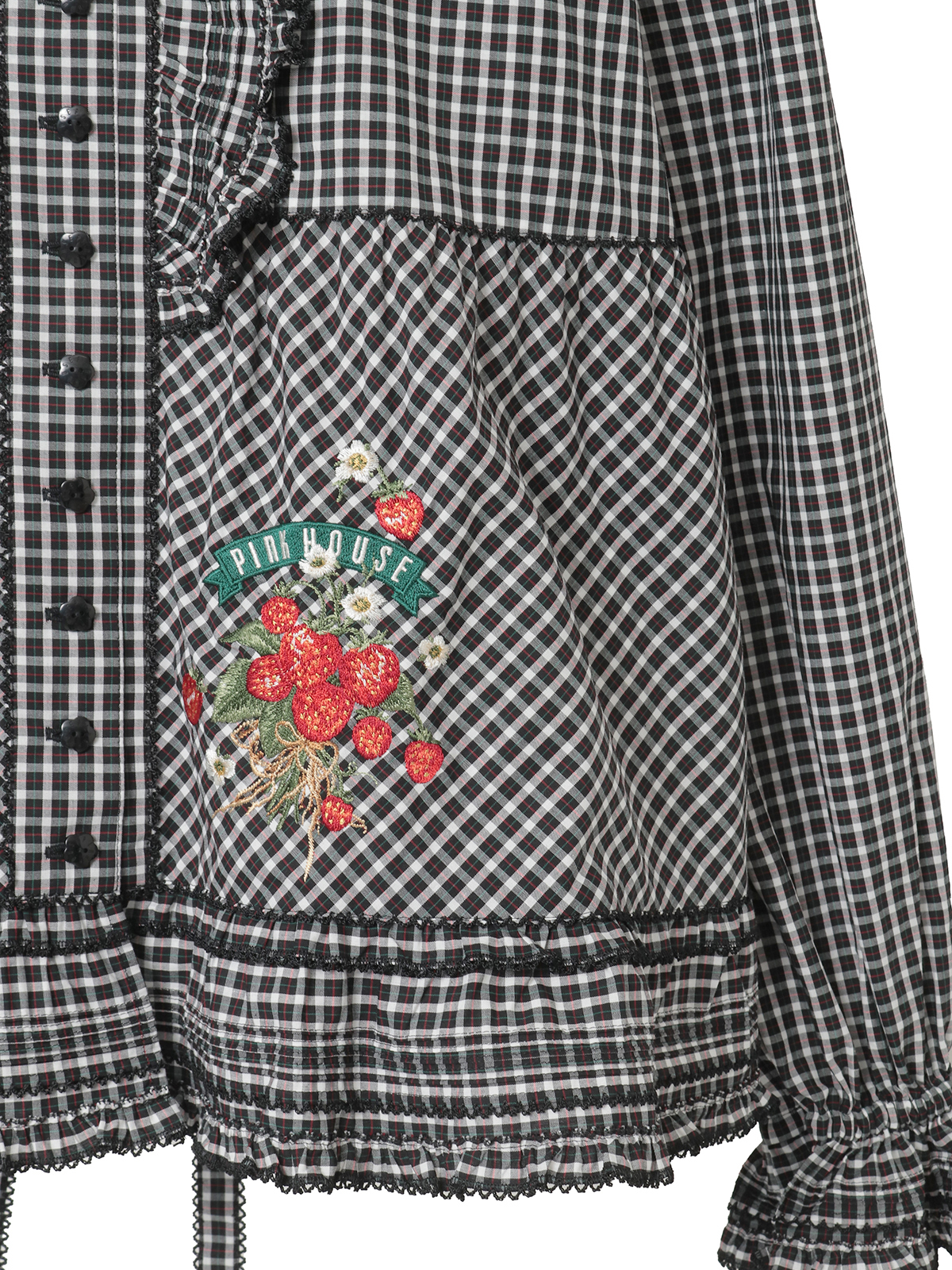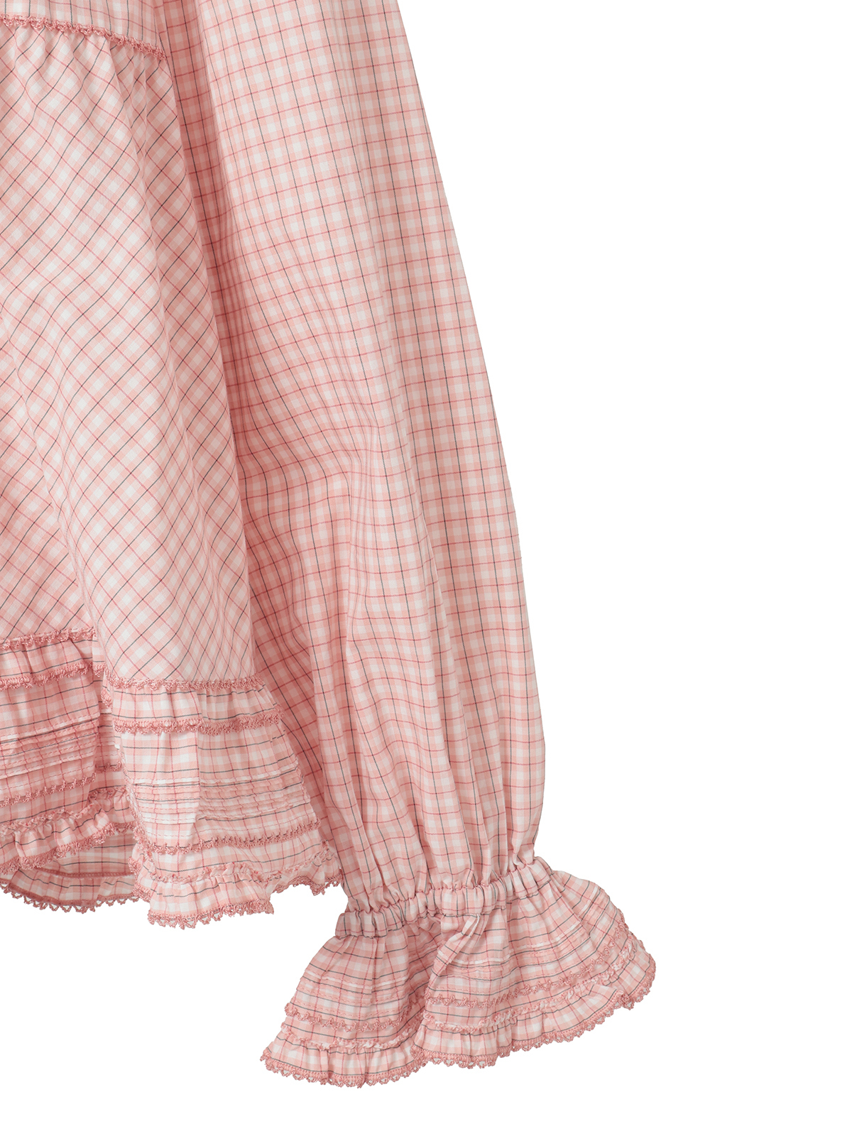 春らしい爽やかでありながらあたたかみの感じられるオリジナルチェックのブラウス。