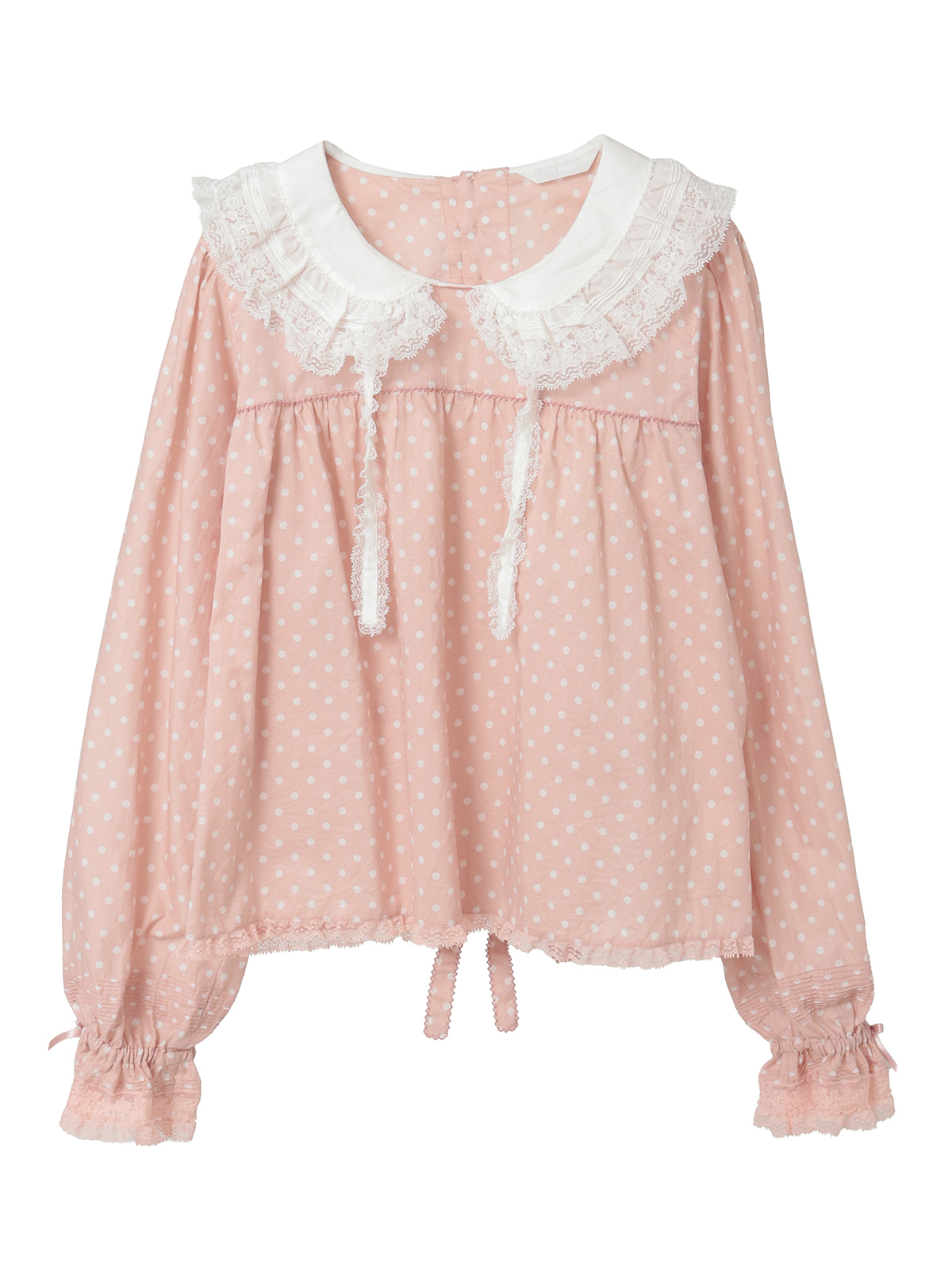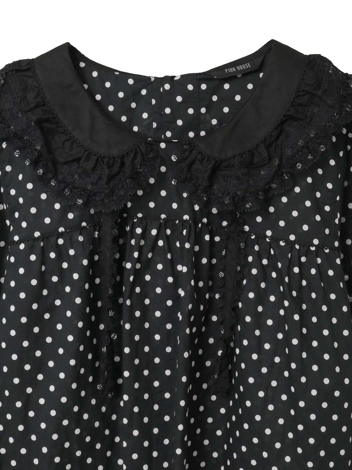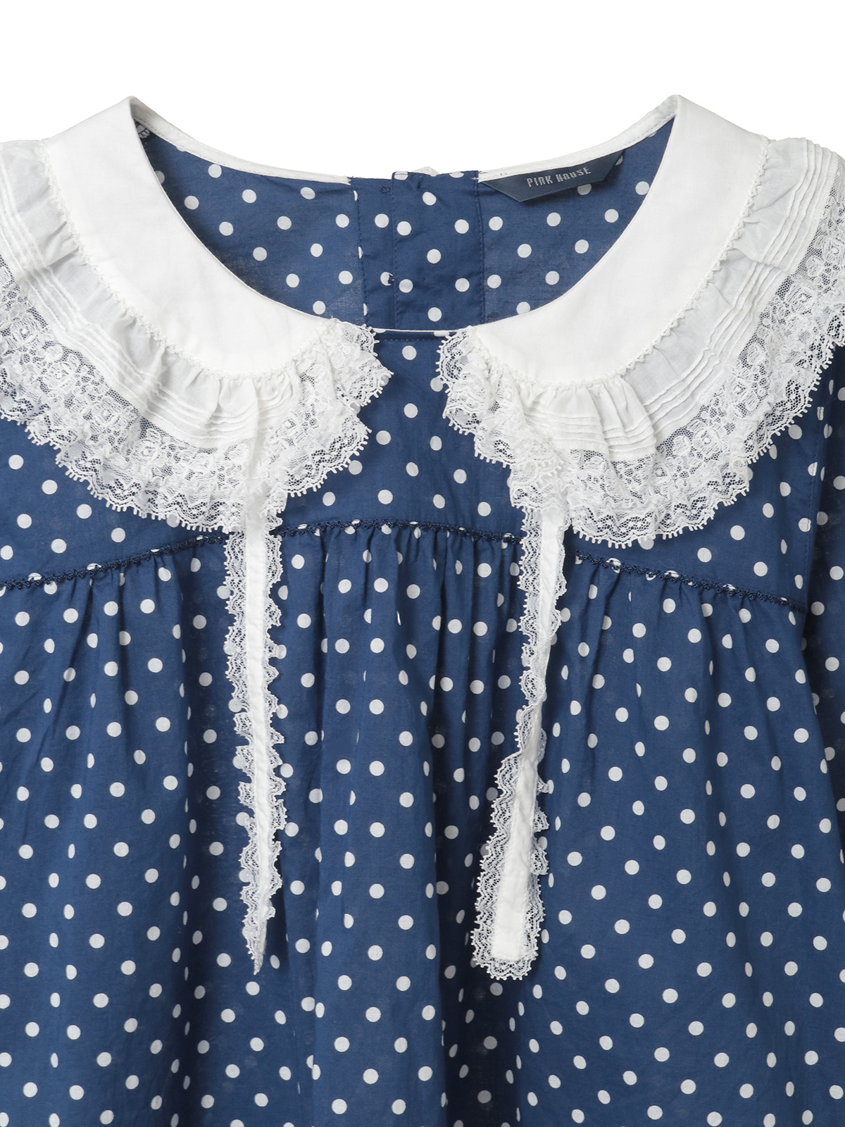 繊細で上品なレースをあしらえたローンの襟が付いたブラウス。