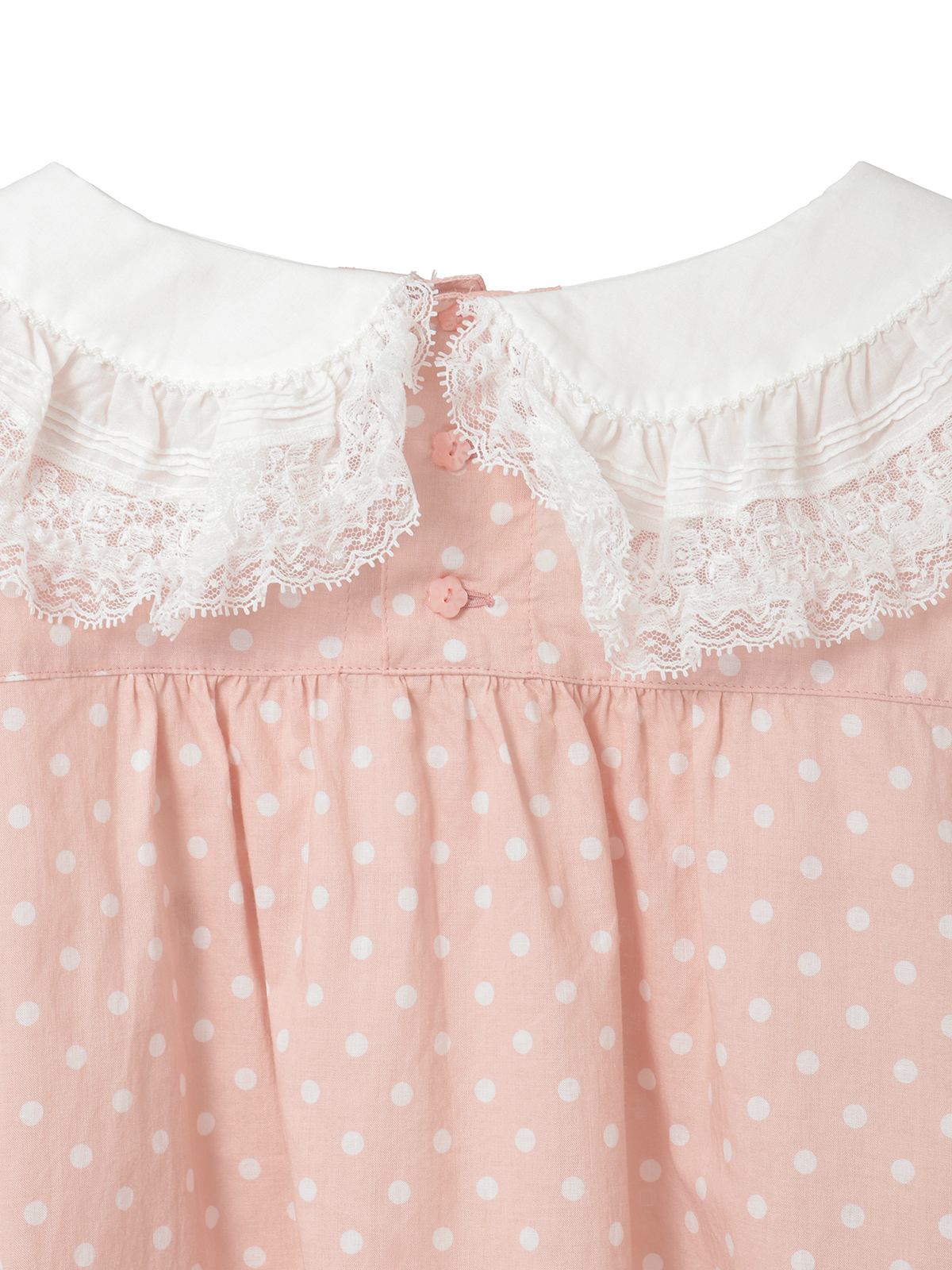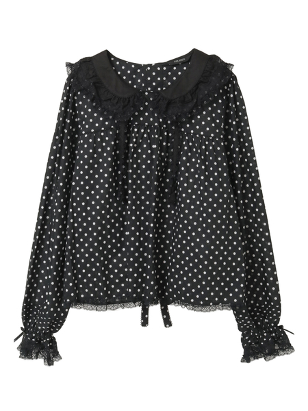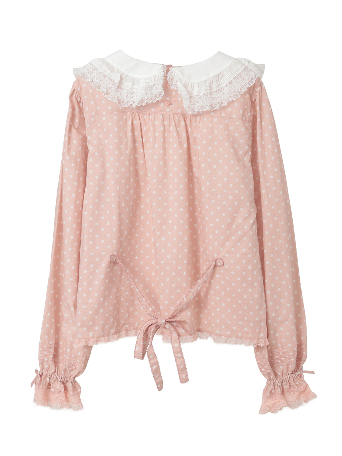 繊細で上品なレースをあしらえたローンの襟が付いたブラウス。