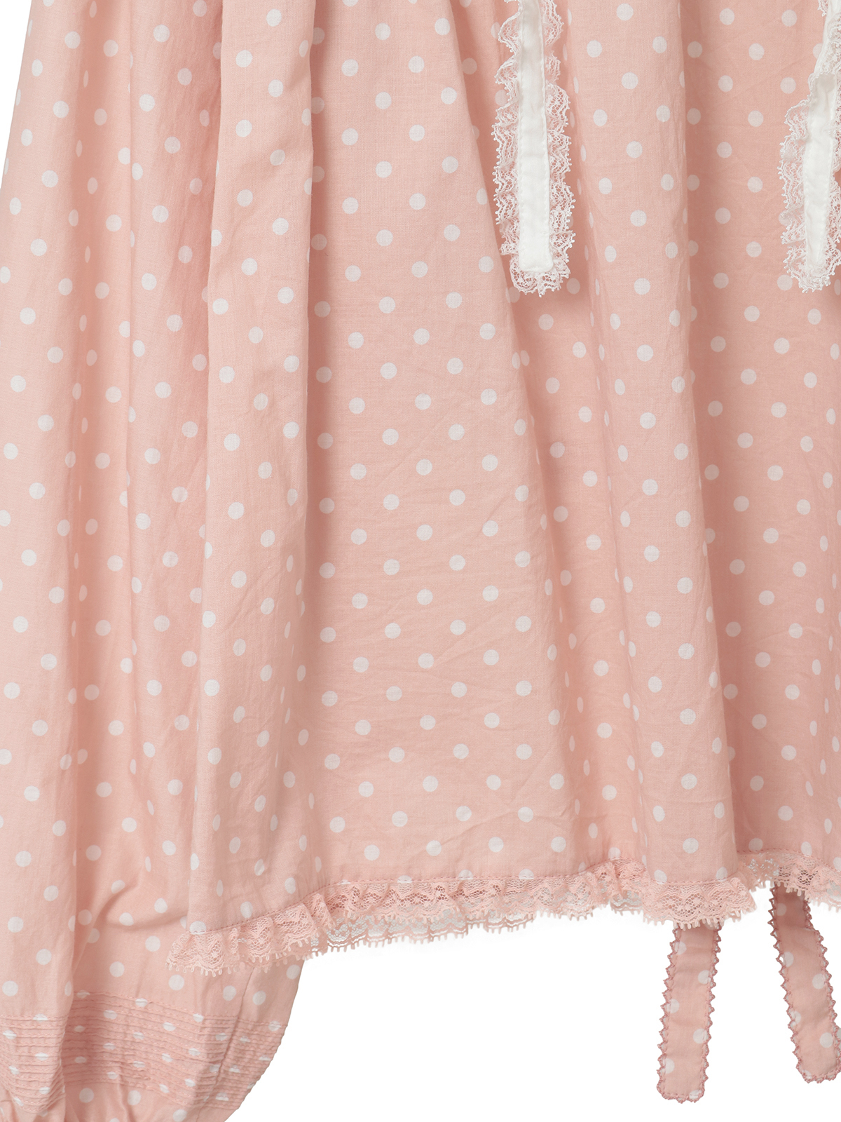 【水玉プリントのみ】この製品は染色方法の特性上、長時間日光やライト等にあてますと変退色する場合がございます。特に水にぬれた状態では、さらに増進されますので、洗濯の際は、陰干しでお願いいたします。