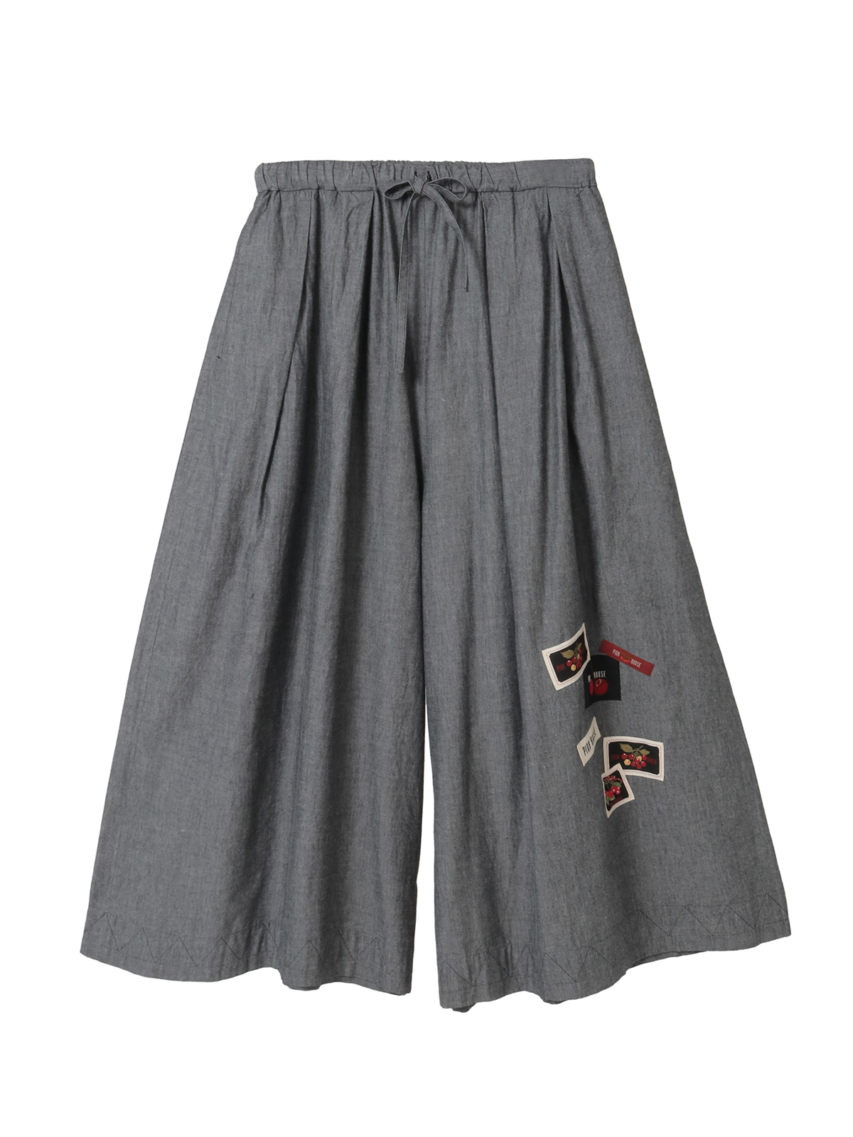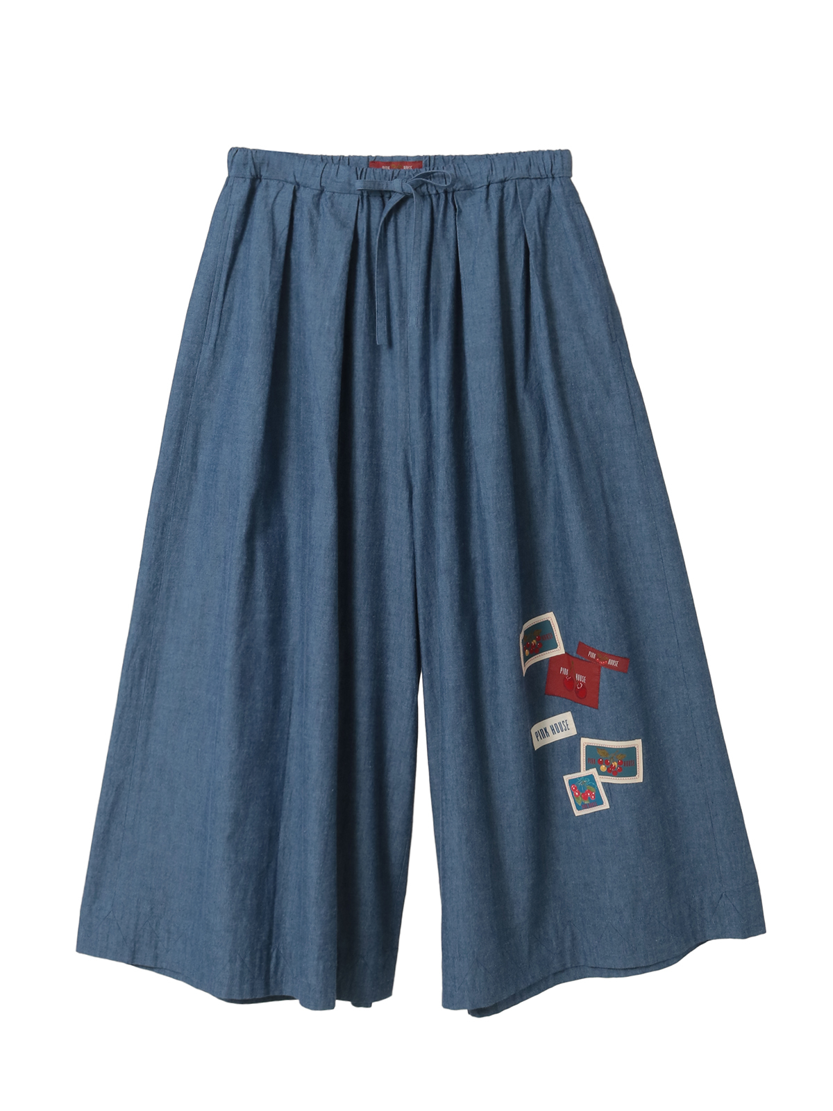 • ネームワッペン使いダンガリーワイドパンツ 詳細画像