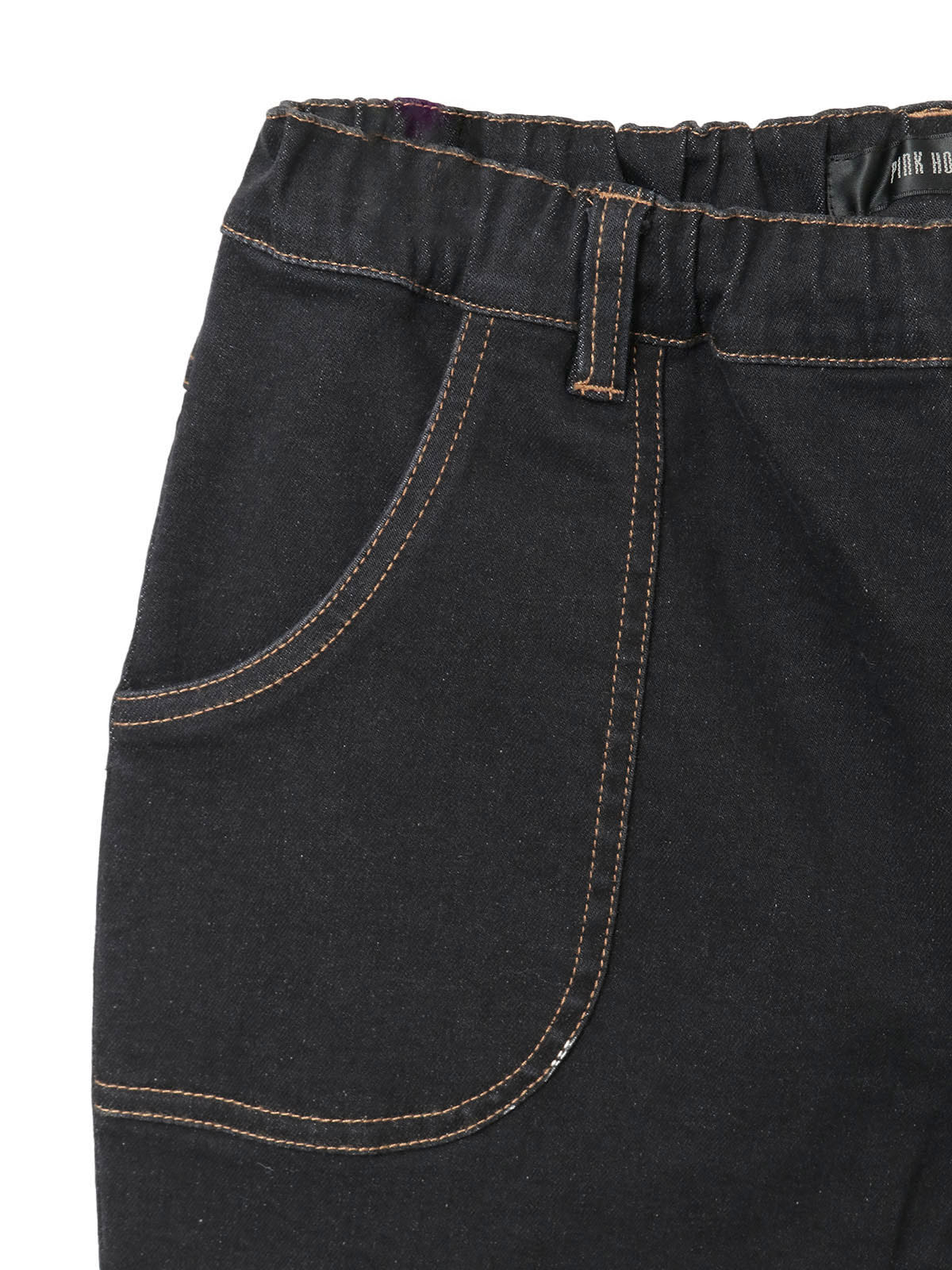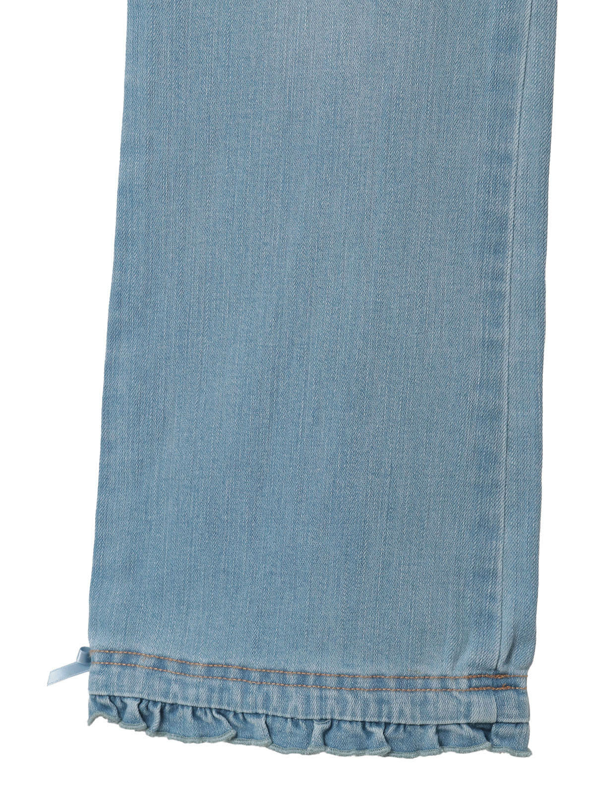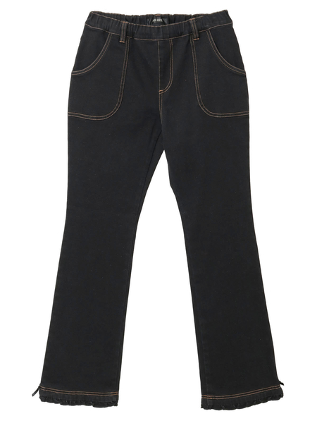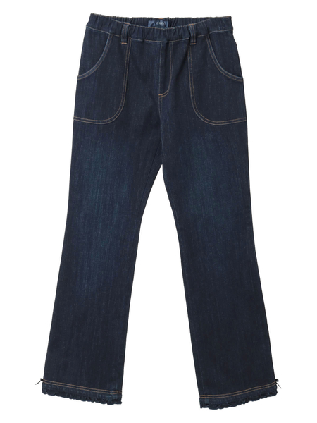 レギンスのように履けちゃうシンプルなデニムパンツは、デコラティブなトップスとも相性抜群、着合わせしやすいアイテムに。