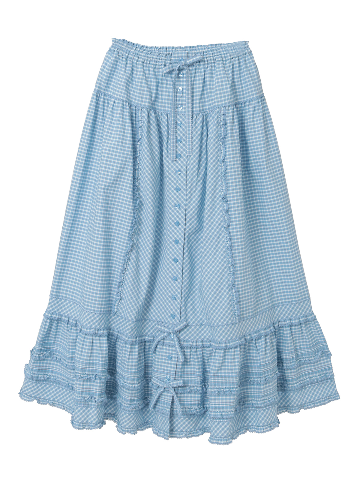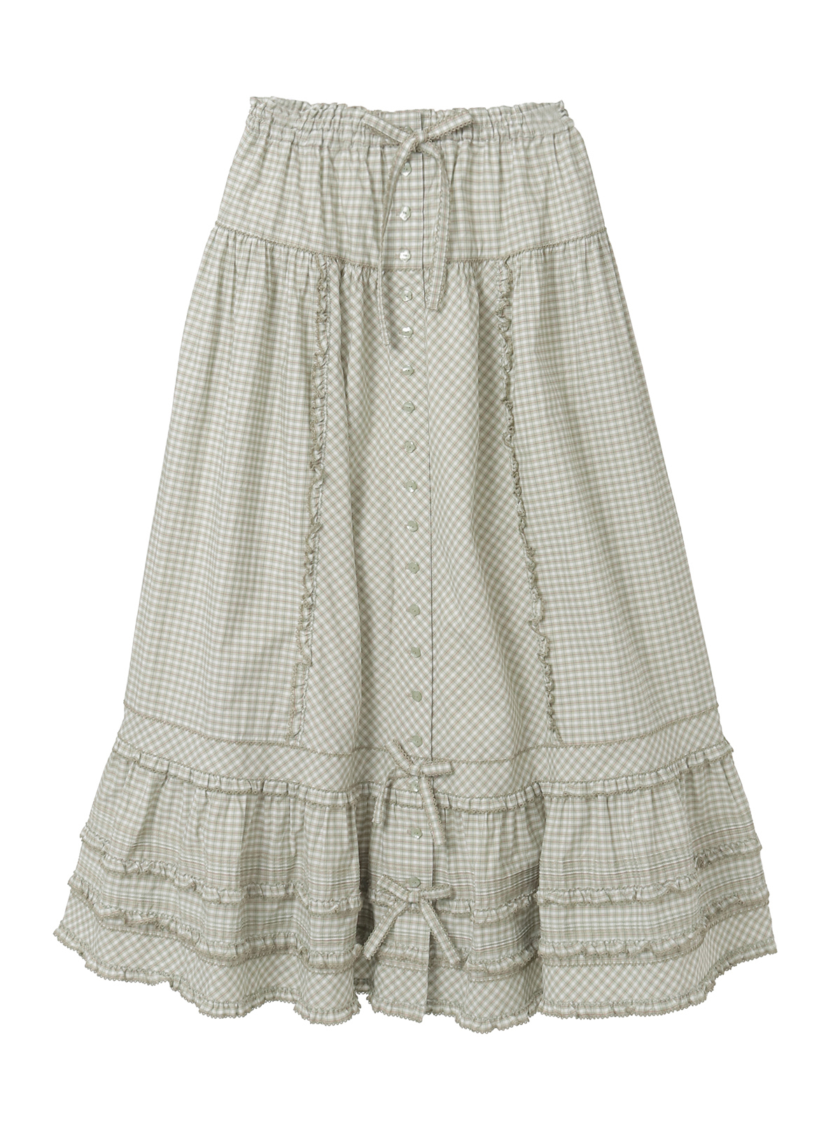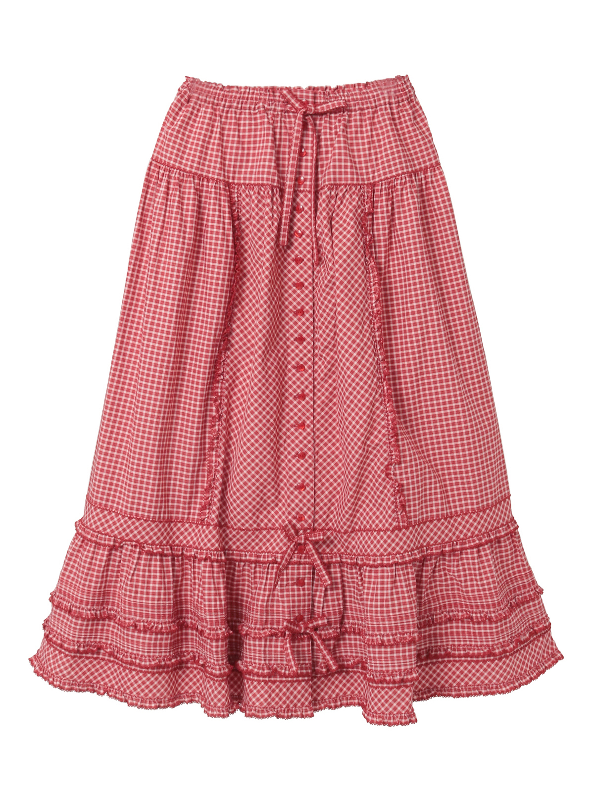 春らしい爽やかでありながらあたたかみの感じられるオリジナルチェックのスカート。