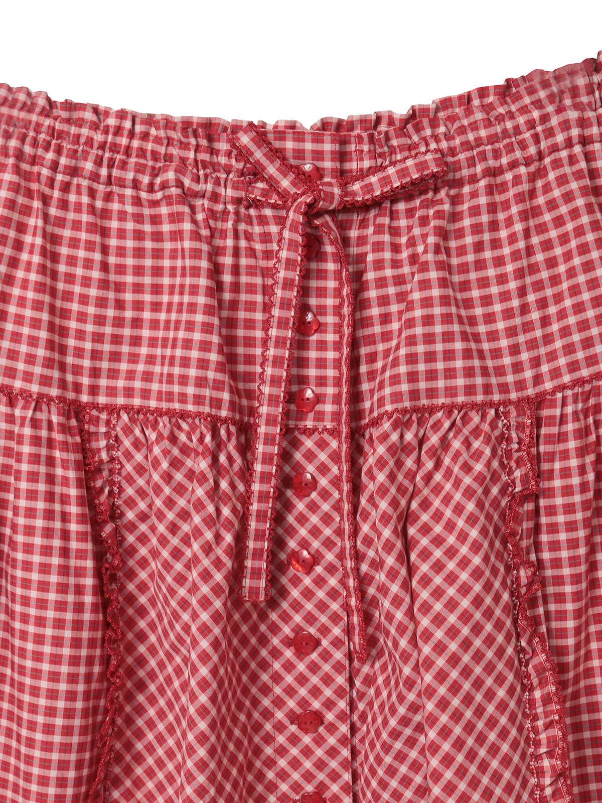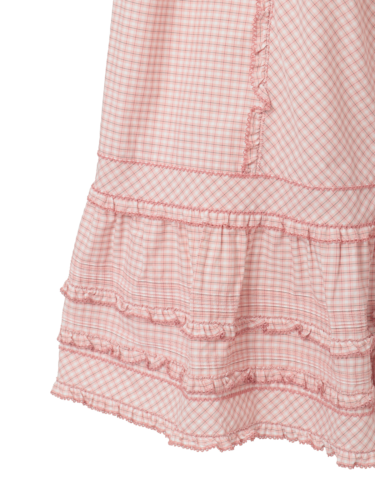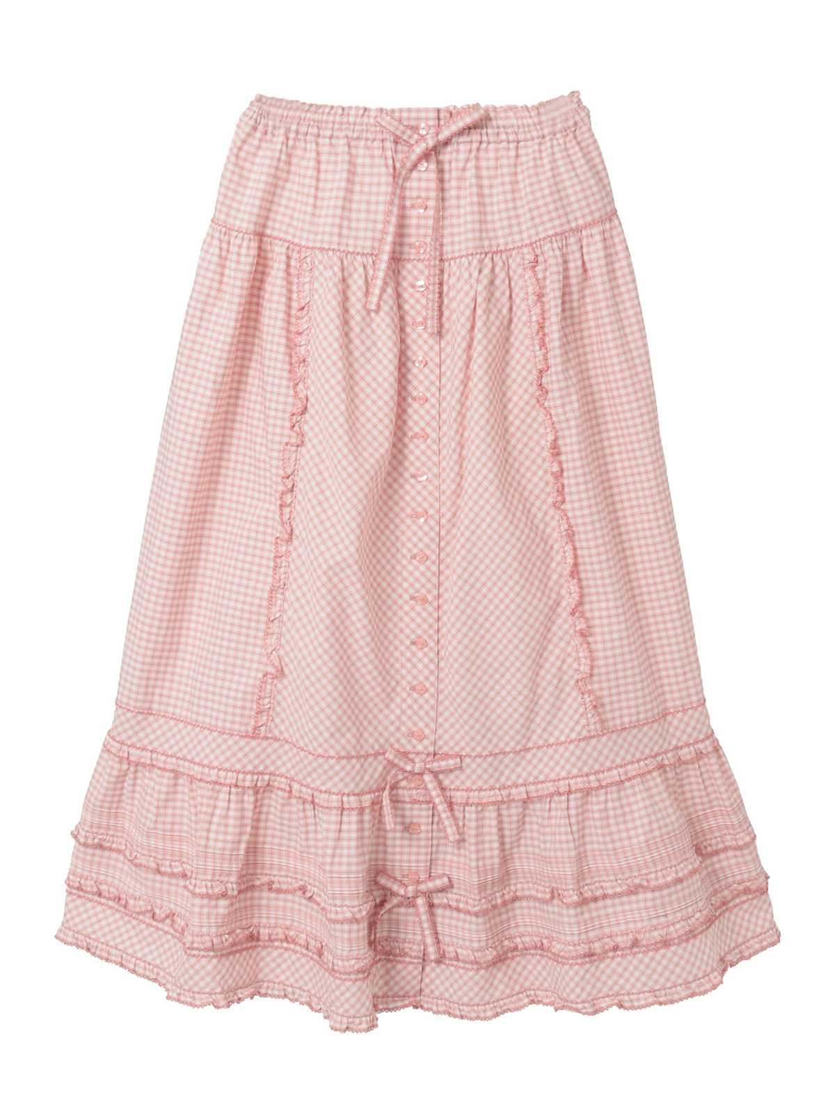 春らしい爽やかでありながらあたたかみの感じられるオリジナルチェックのスカート。