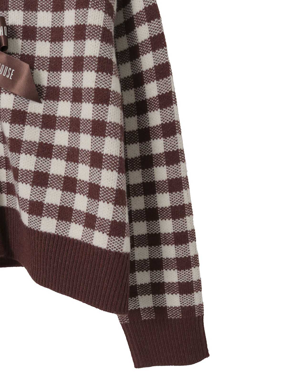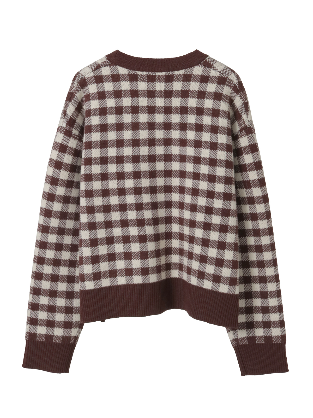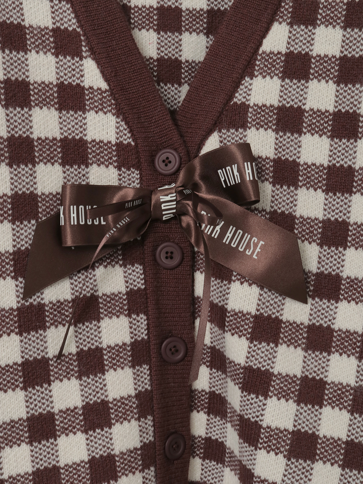 シリーズに合わせたギンガムチェックの格子柄を編み込んだニットカーディガン。