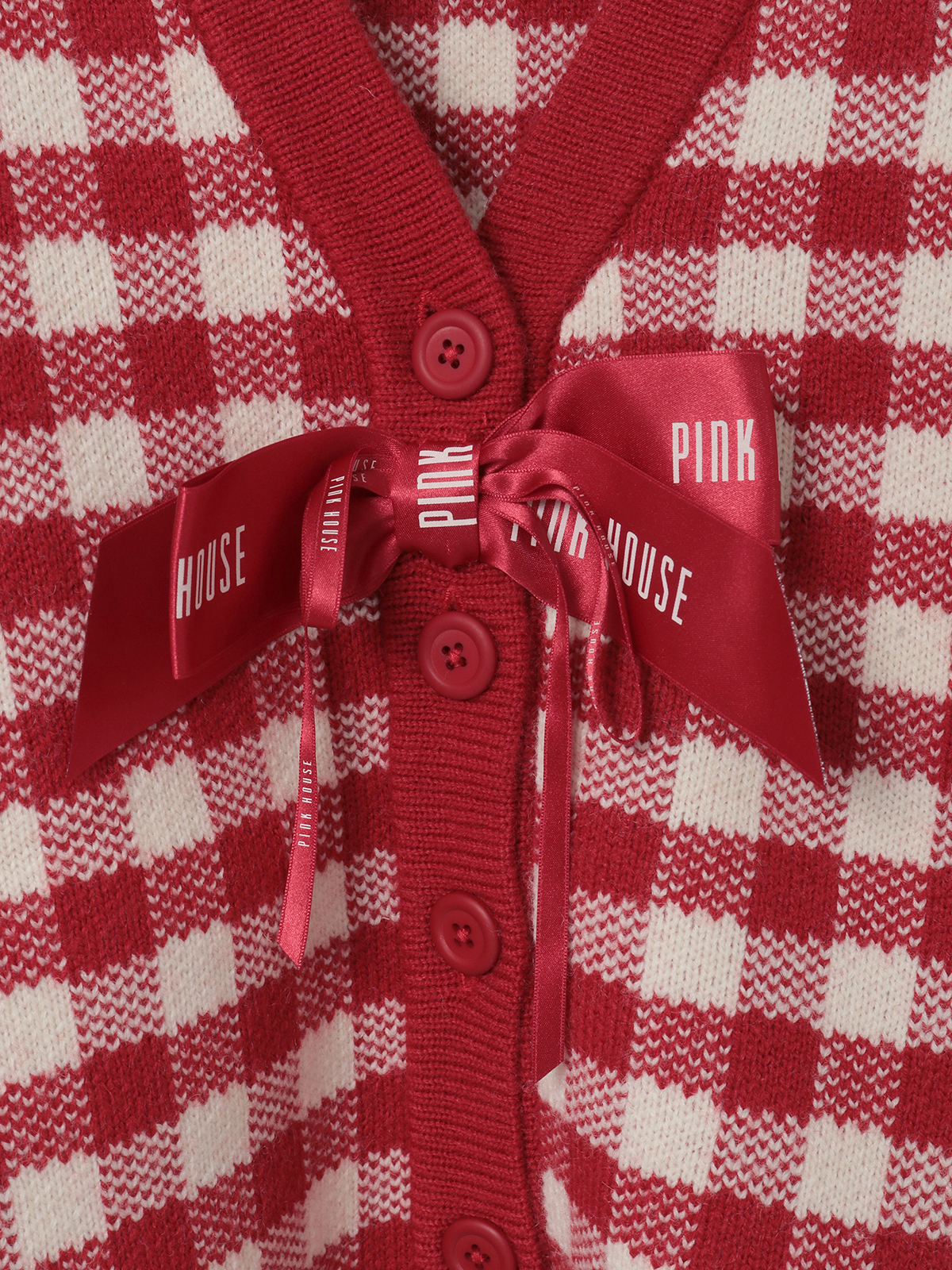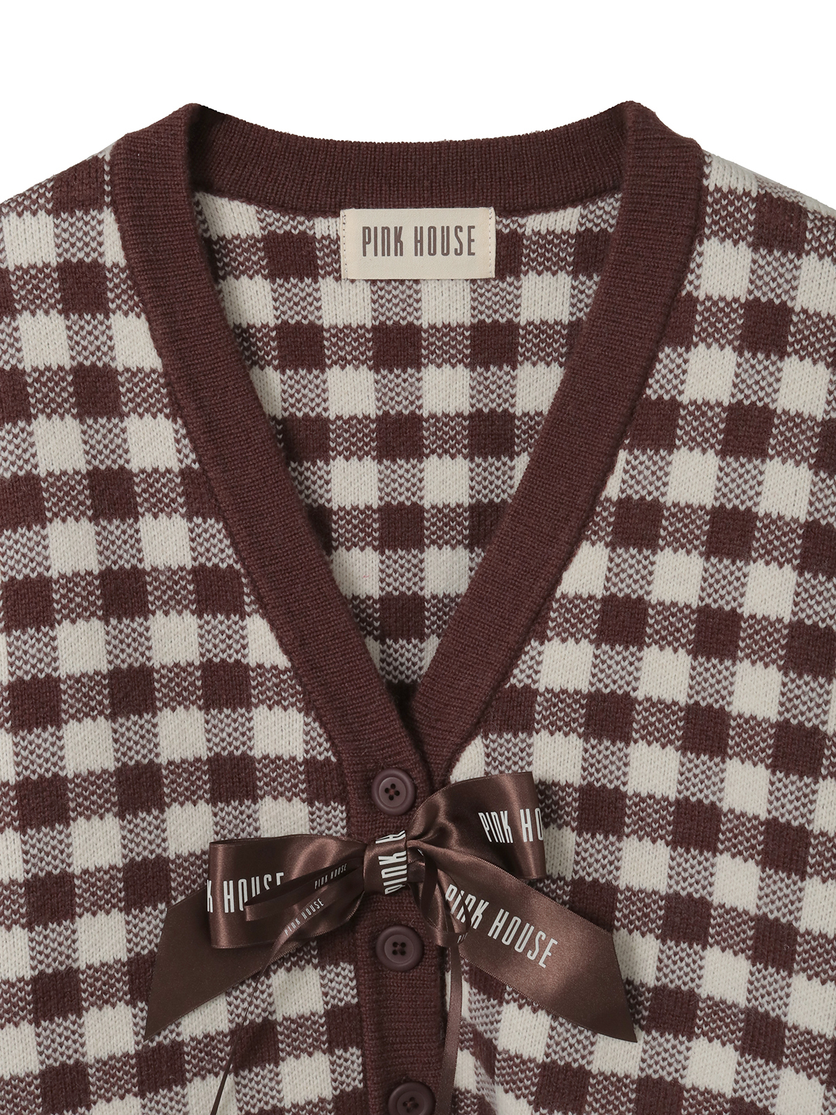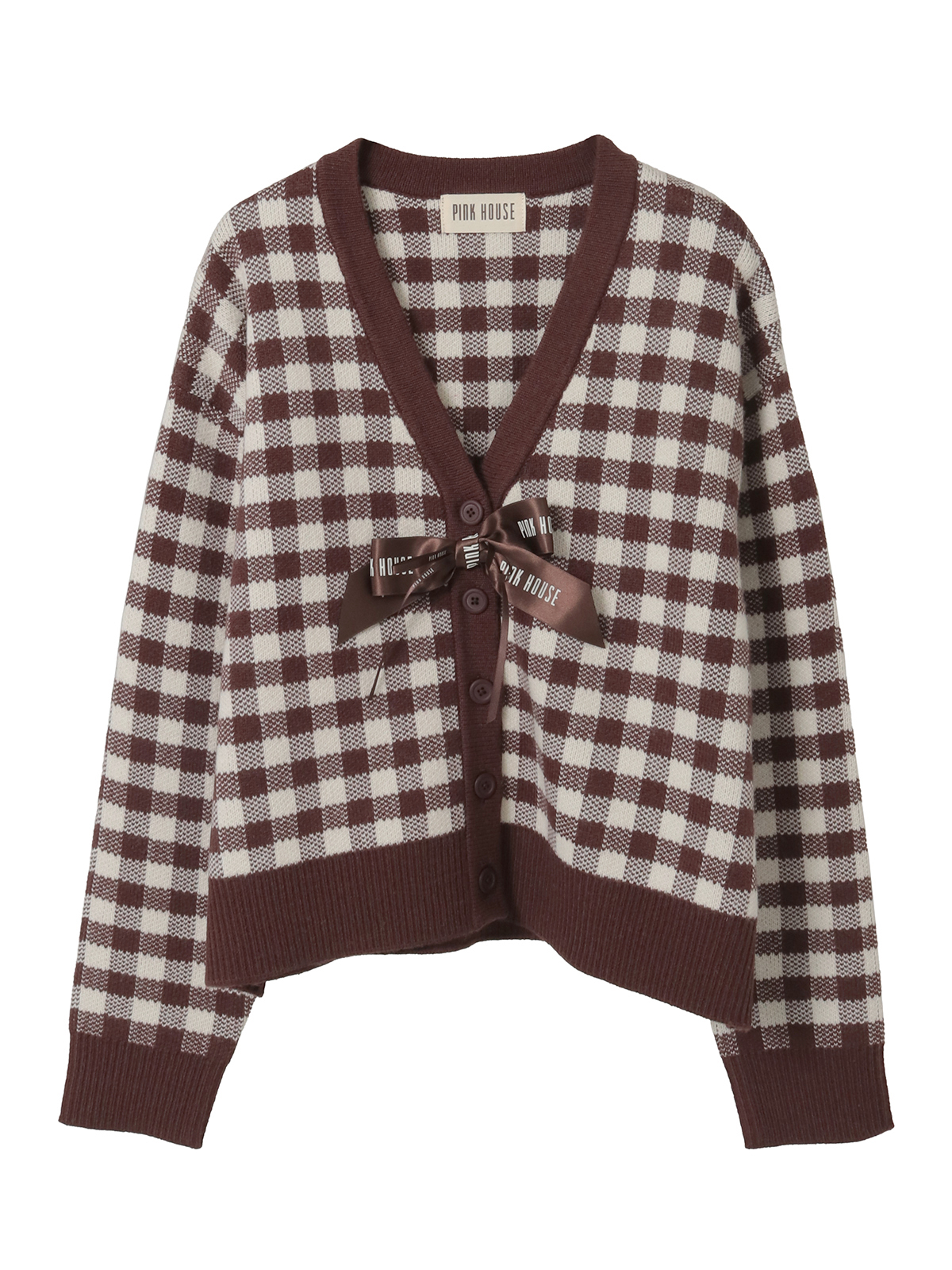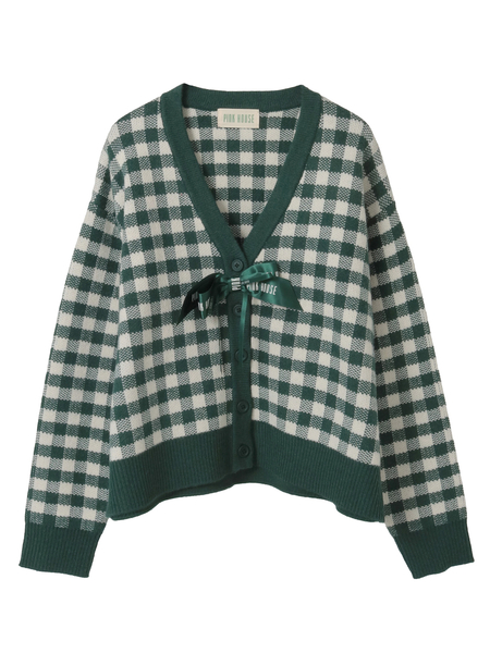 シリーズに合わせたギンガムチェックの格子柄を編み込んだニットカーディガン。