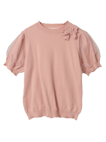 • チュール使いパフスリーブニット