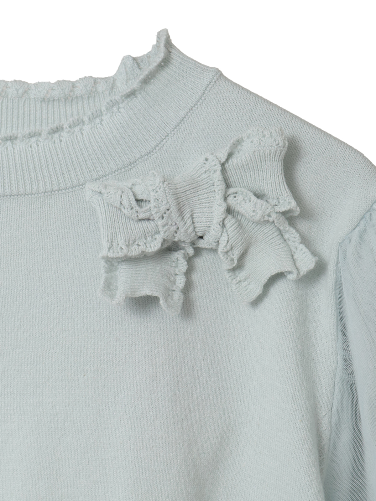 • チュール使いパフスリーブニット 詳細画像