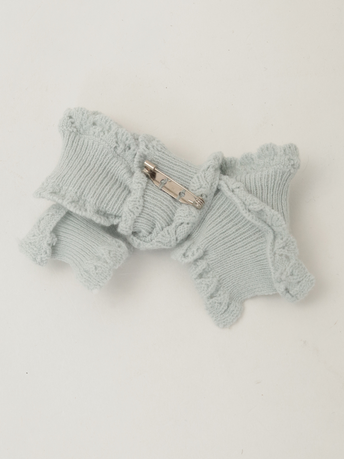 同じニット地で作られたリボンモチーフのミニブローチも付いていて、お好きなところに付けられます。