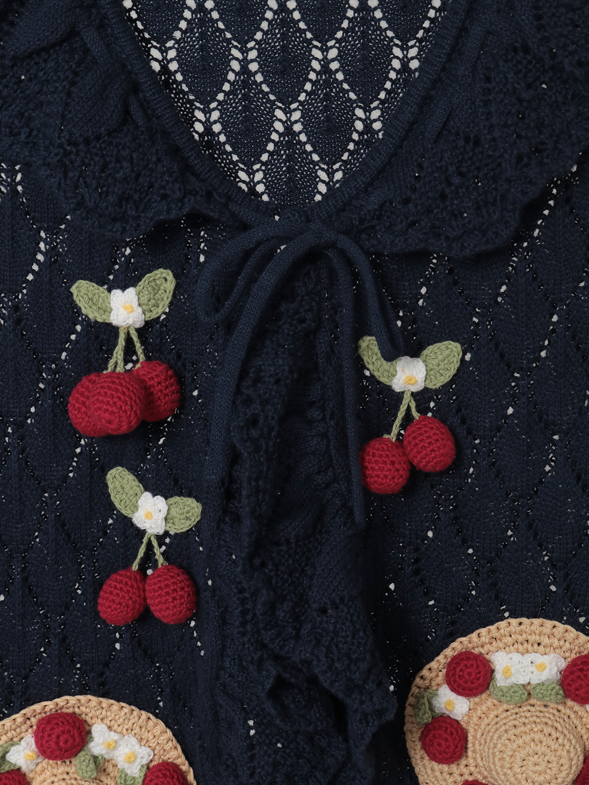 6. さくらんぼの日曜日モチーフ使いニットベスト