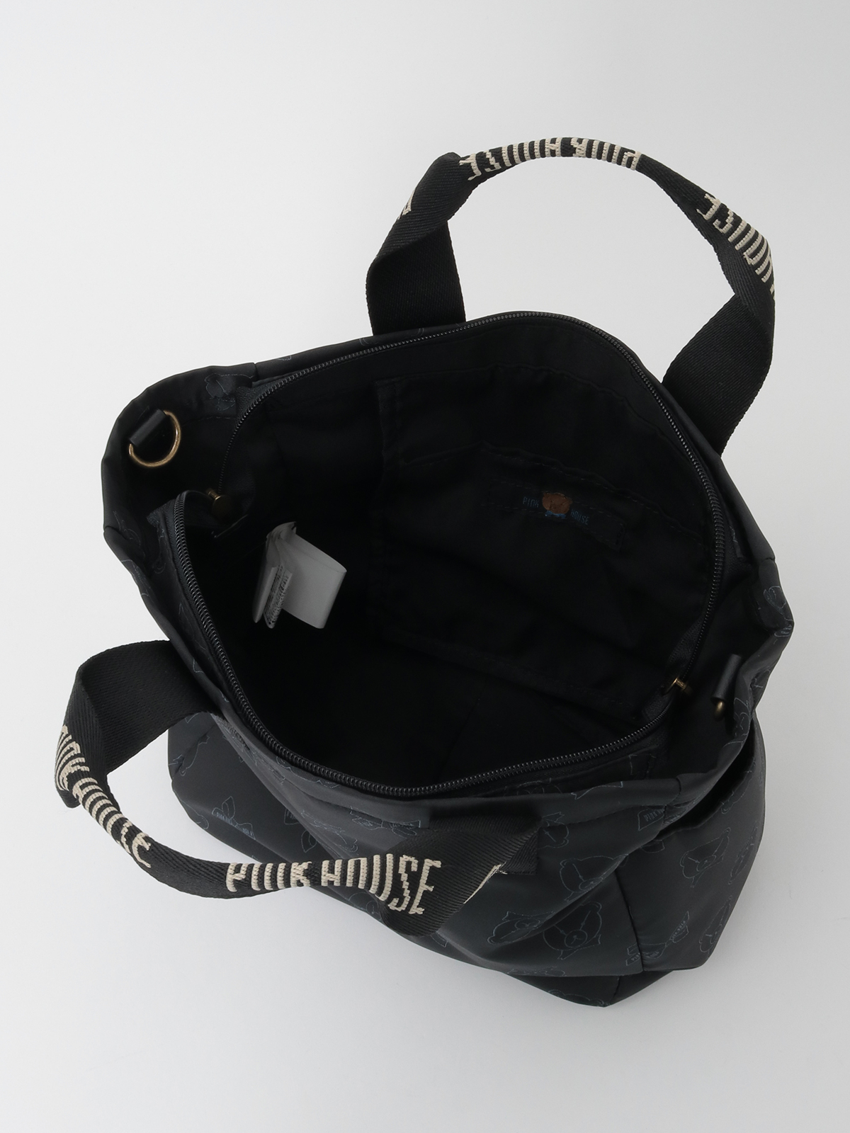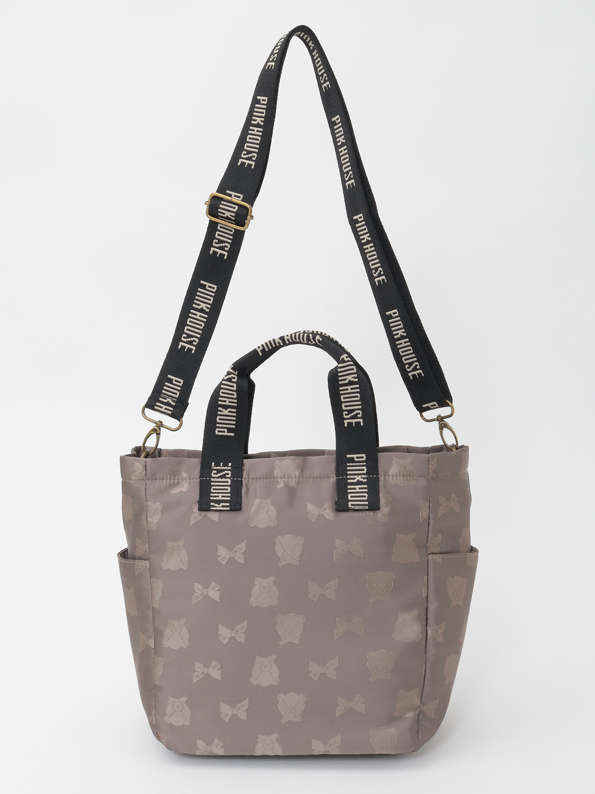 持ち手のところと、ショルダー紐のところにそれぞれPINK HOUSEのロゴが入っているところがポイントに。