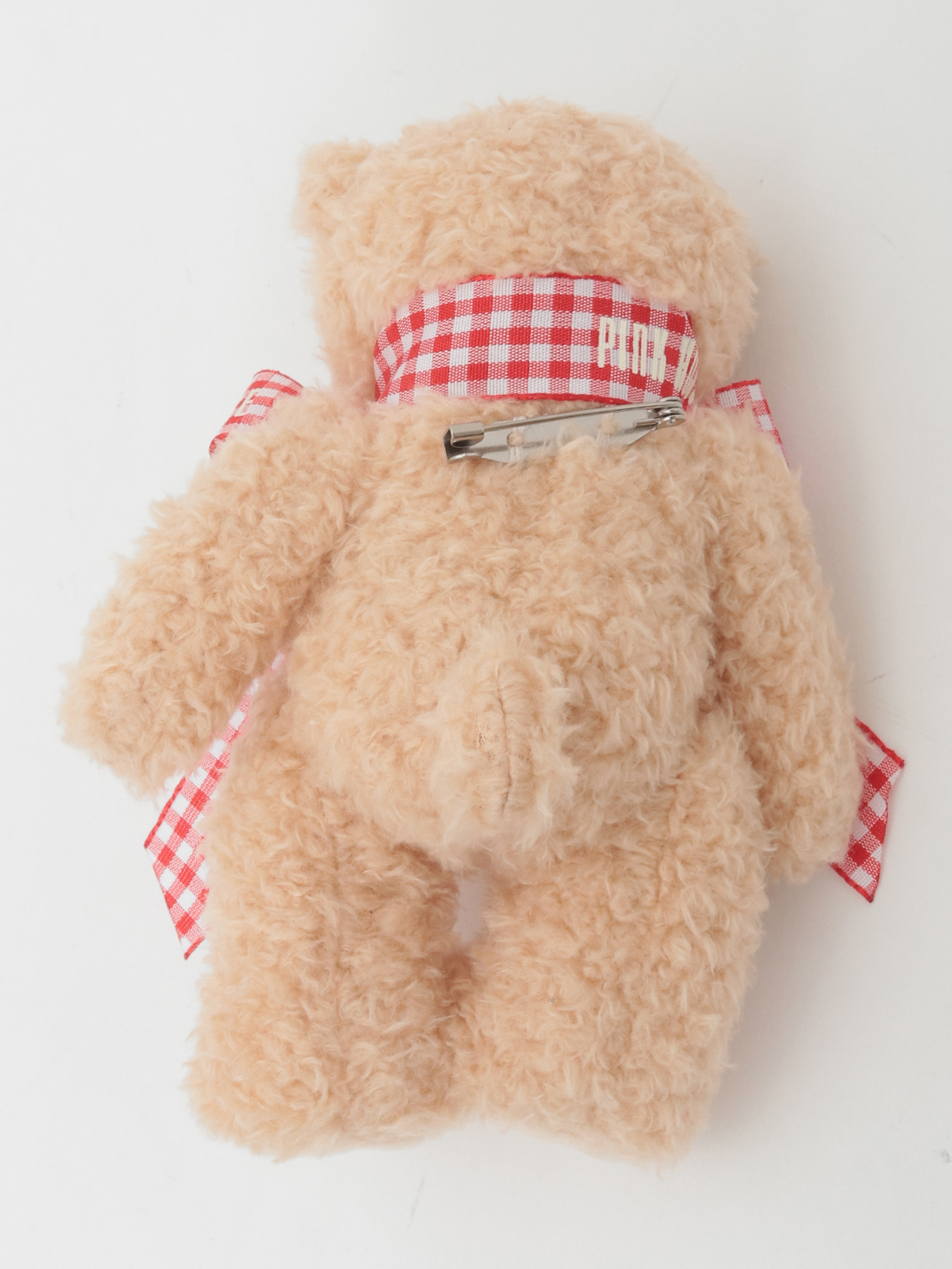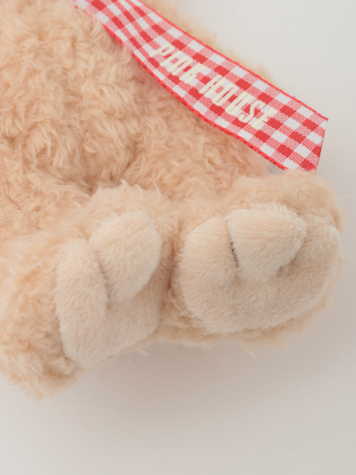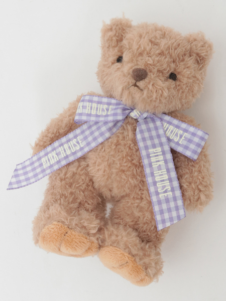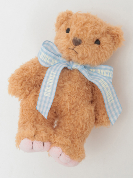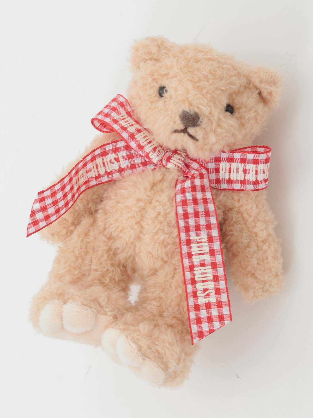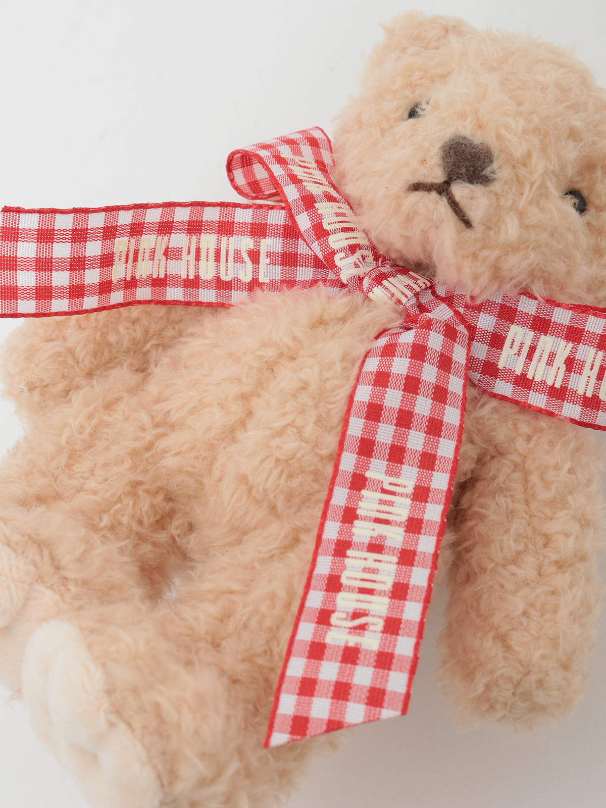 PINK HOUSEのロゴの入ったギンガムチェックリボンを結んで、やわらかな毛並みのテディ。