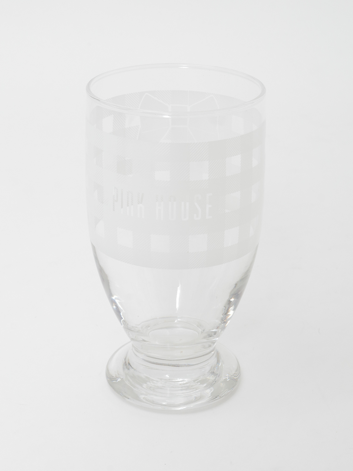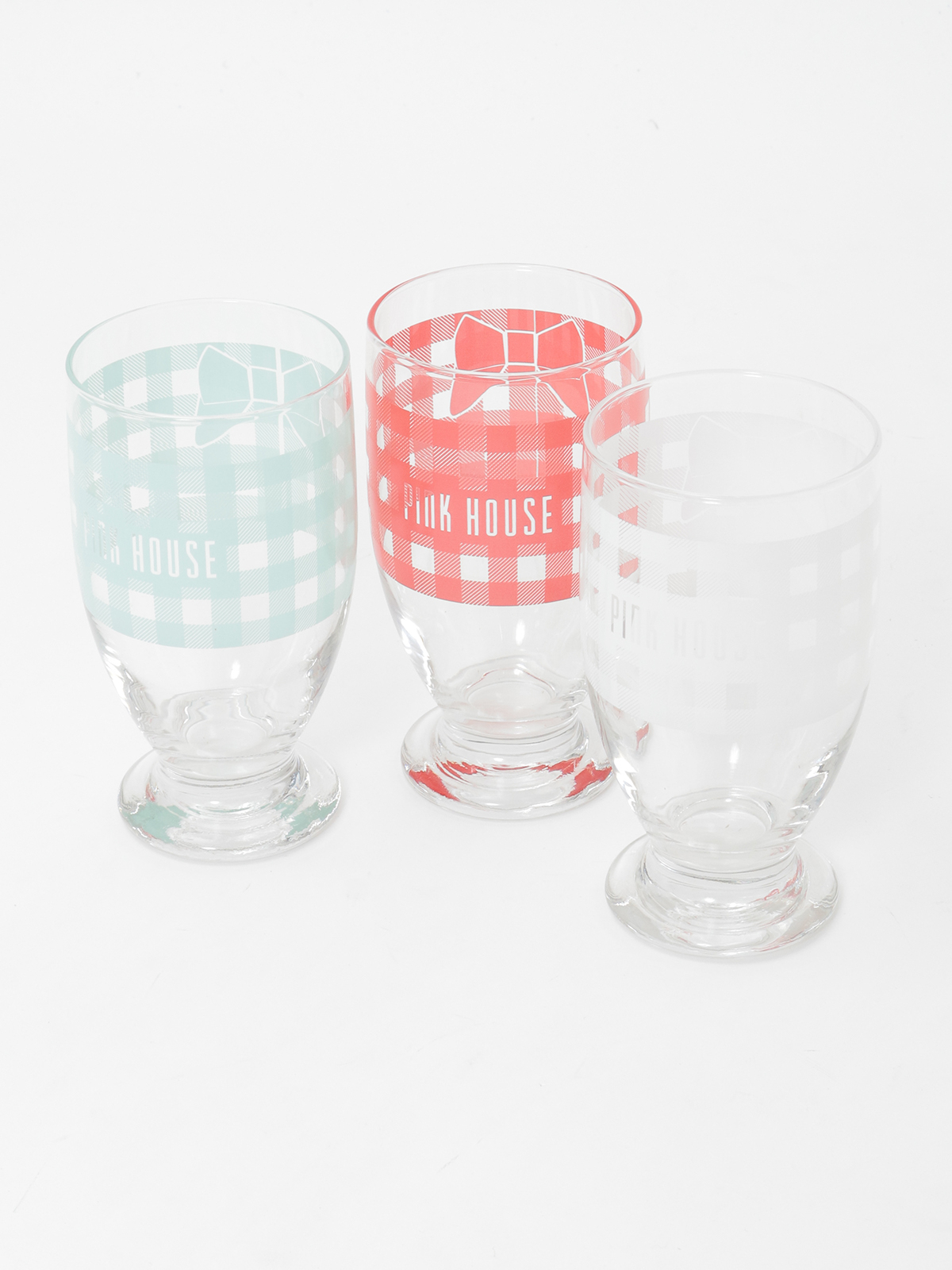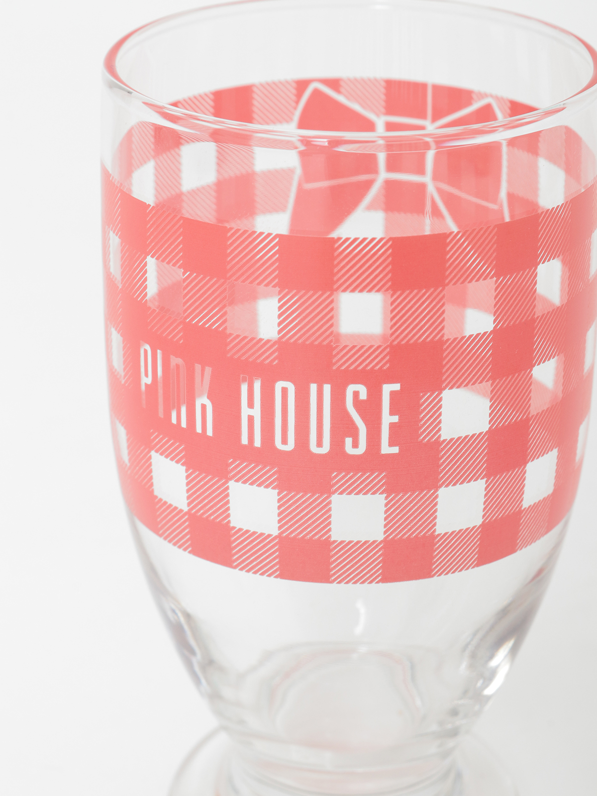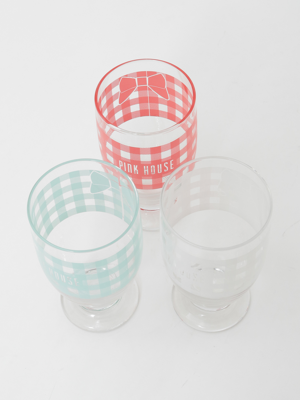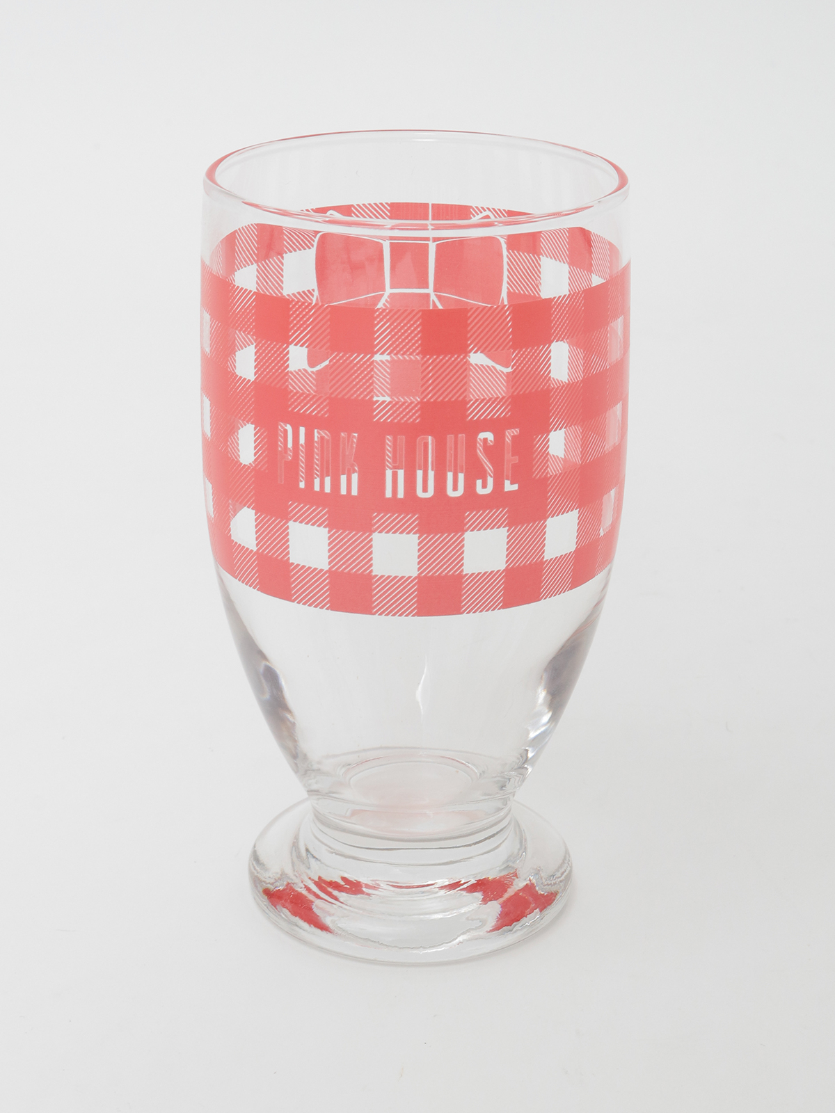 ギンガムプリントにロゴの入ったグラスは、どこか懐かしいレトロ感漂う雰囲気に。