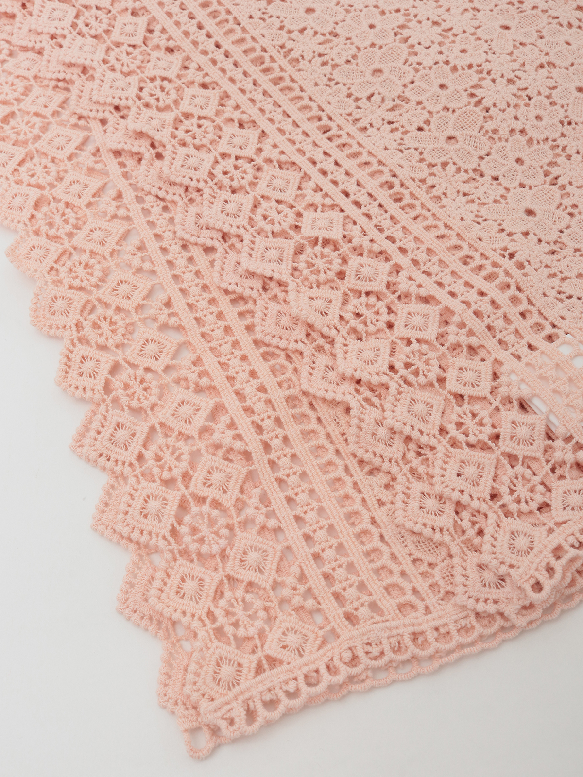 裾まわりには幾何学模様のようなレース編みをあしらって彩りを添えます。